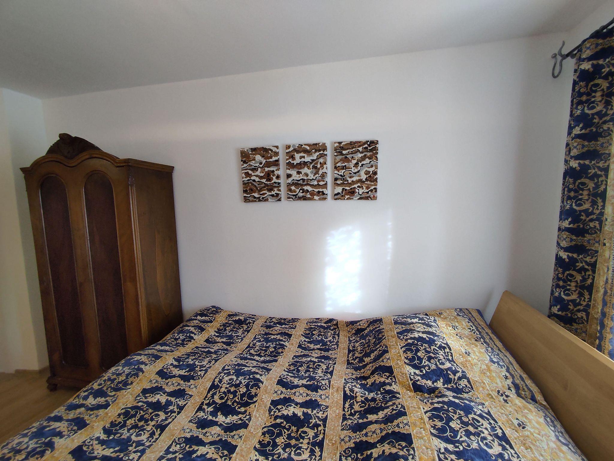 Das kleine freundliche Ferienzimmer Enzian mit Bergblick befindet sich im Obergeschoss und ist für Kurzzeitaufenthalte und Wanderer bestens geeignet. Die große gemeinschaftliche gut ausgestattete Küche und das neue, große aufwendig eingerichtete gemeinschaftliche Bad in einem mittelalterlichen Gewölbe befinden sich im Erdgeschoß.