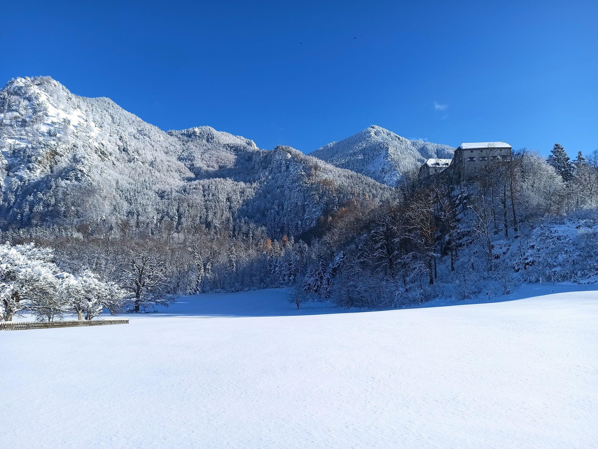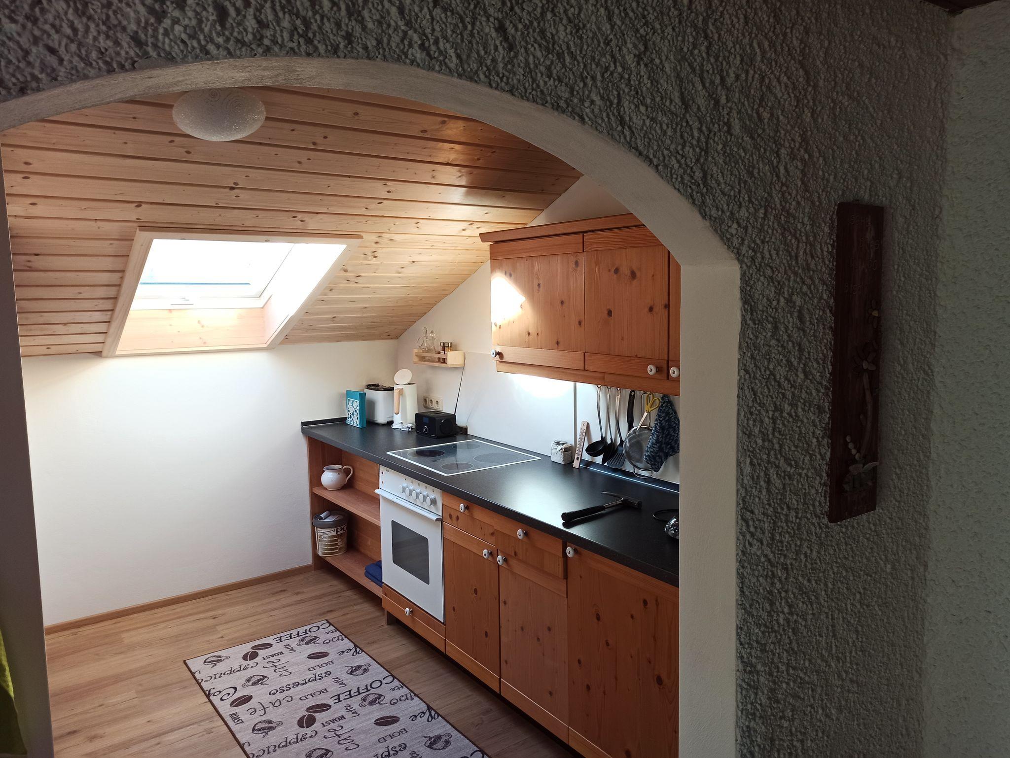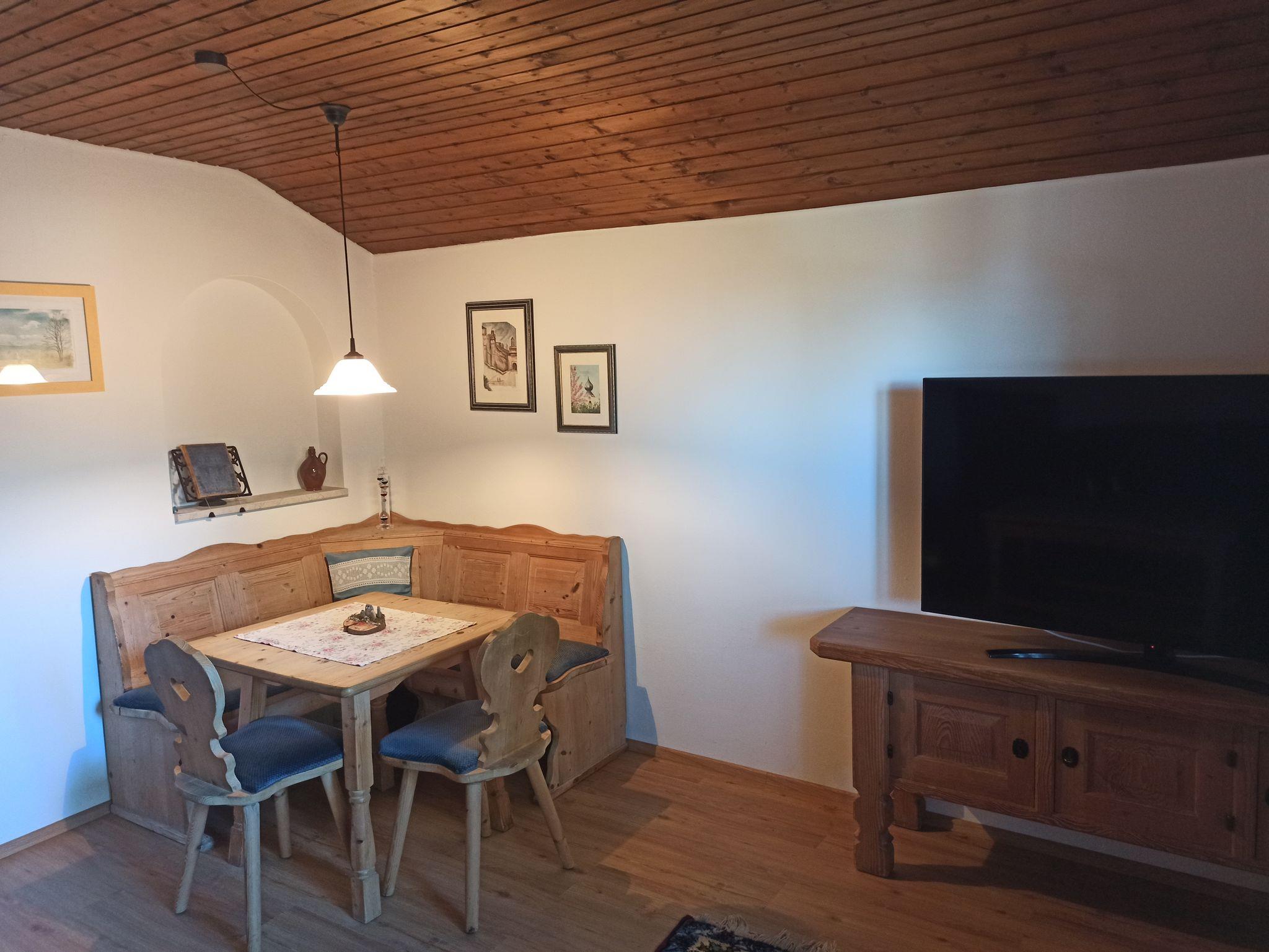 In unserer gemütlichen neu renovierten Nichtraucherwohnung im 1. Stock Mansarde, finden Sie alles um eine schöne Ferienzeit zu verbringen. Wohnzimmer mit großem TV, Essecke, Küche mit E-Herd und Backofen, Kaffeepadmaschine Senseo, Toaster, Kühlschrank, Geschirr und Töpfe. Außerdem erwartet Sie ein neues Schlafzimmer aus Massivholz mit frisch bezogenem Doppelbett und großzügigem Kleiderschrank, auf Wunsch mit Zustellbett für ein Kind bis 6 Jahre. Eine weitere Schlafmöglichkeit befindet sich im Flur mit einer Ausziehcouch 2,00 x 1,40 m. Ein Balkon läd bei schönem Wetter zum Frühstücken ein, mit grandiosem Blick auf den Schnappen, den Hochlerch und die Burg Marquartstein. Das Badezimmer verfügt über Badewanne mit Dusche, WC, Föhn, Waschmaschine, neuen hochwertigen Badmöbeln und Dachfenster. Handtücher werden gestellt. Bei Bedarf finden Sie eine kleine Bücherauswahl, Zeitschriften, Brett- und Kartenspiele sowie Infomaterial für Unternehmungen und Sehenswürdigkeiten. Kostenfreies WLAN und Autostellplatz am Haus. Am Grundstück entlang führt Sie das Glückswegerl in 5 Minuten direkt zur Bäckerei Menter.