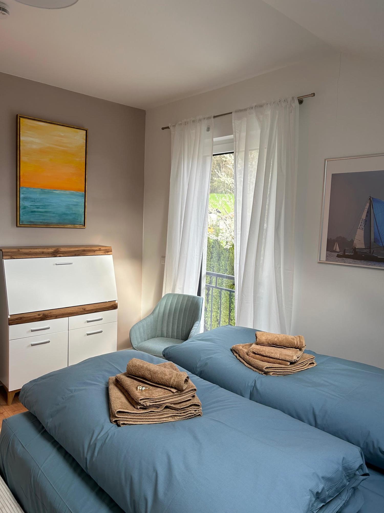 Die drei Schlafzimmer im ersten Stock verfügen über ein bequemes Boxspringbett (im Masterschlafzimmer 200x220cm) und Polsterbetten (160x220cm), damit Sie sich nach einem ereignisreichen Tag bestens erholen können. Das Badezimmer im ersten Stock punktet mit einer ebenerdigen Dusche, eine zweite Dusche ist im Wellnessbereich vorhanden, während die offene Küche mit ihrer großzügigen Ausstattung keine Wünsche offen lässt.