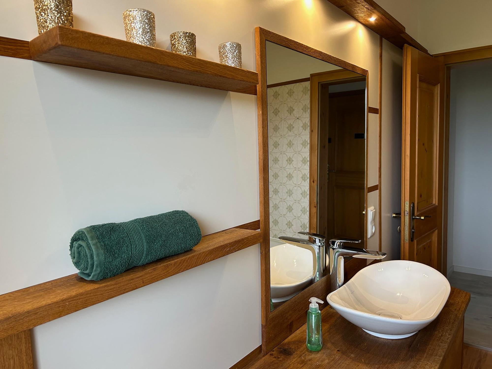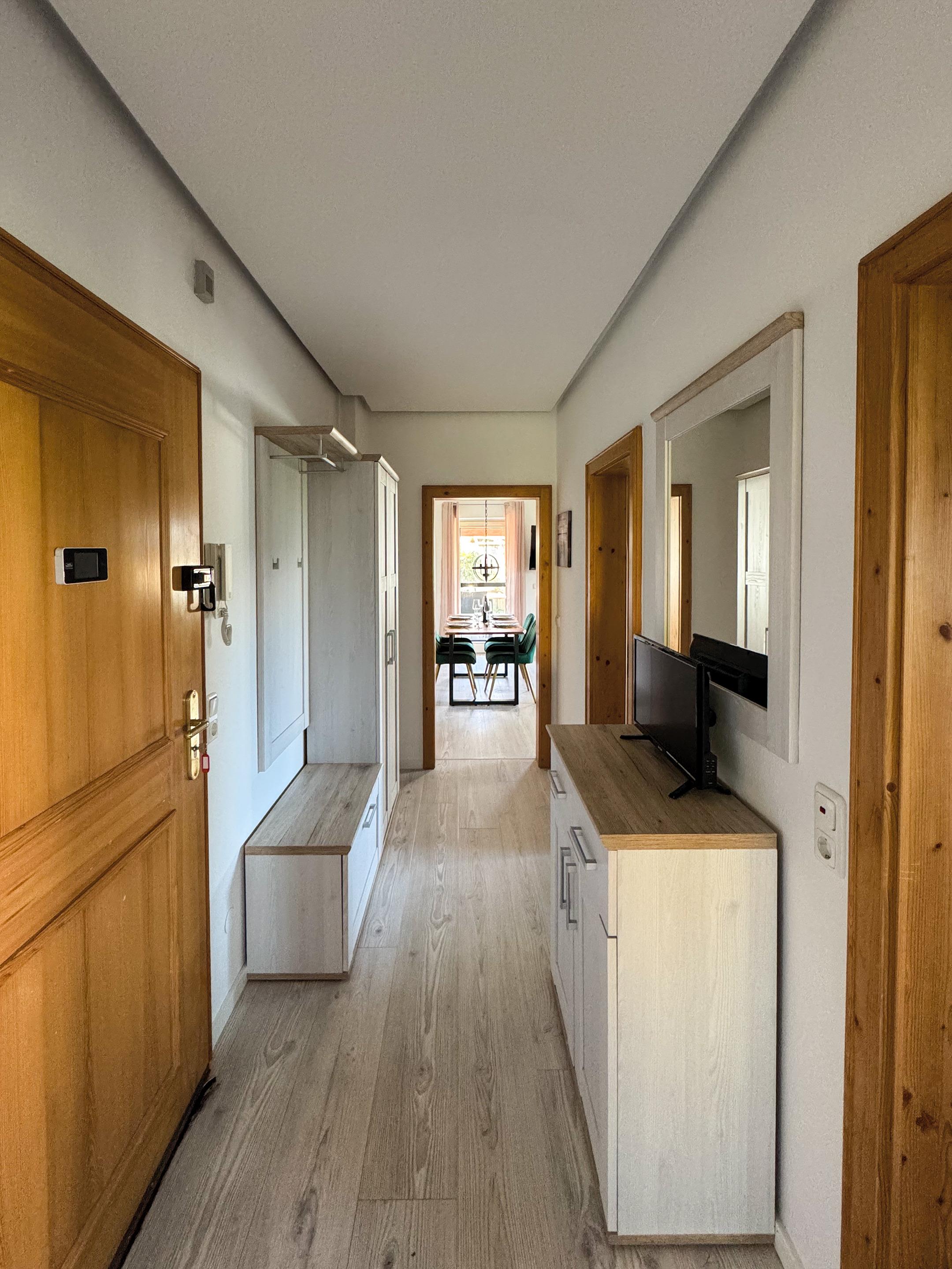 Es erwartet Sie ein Schlafzimmer mit King-Size-Bett (200 x 160), ein großer Wandschrank sowie hochwertige Bettwäsche. Das Badezimmer ist mit Badewanne, Duschwand, Toilette, Fön und Handtüchern ausgestattet. Die voll ausgestattete Küche verfügt über Herd, Ofen, Kühlschrank, Spülmaschine, Filterkaffeemaschine und Wasserkocher – ideal für alle, die gerne selbst kochen. Zusätzlich steht ein Parkplatz, ein abschließbares Gartenhaus für Ski und Fahrräder sowie Waschmaschine und Wäscheständer im Keller zur Verfügung.
