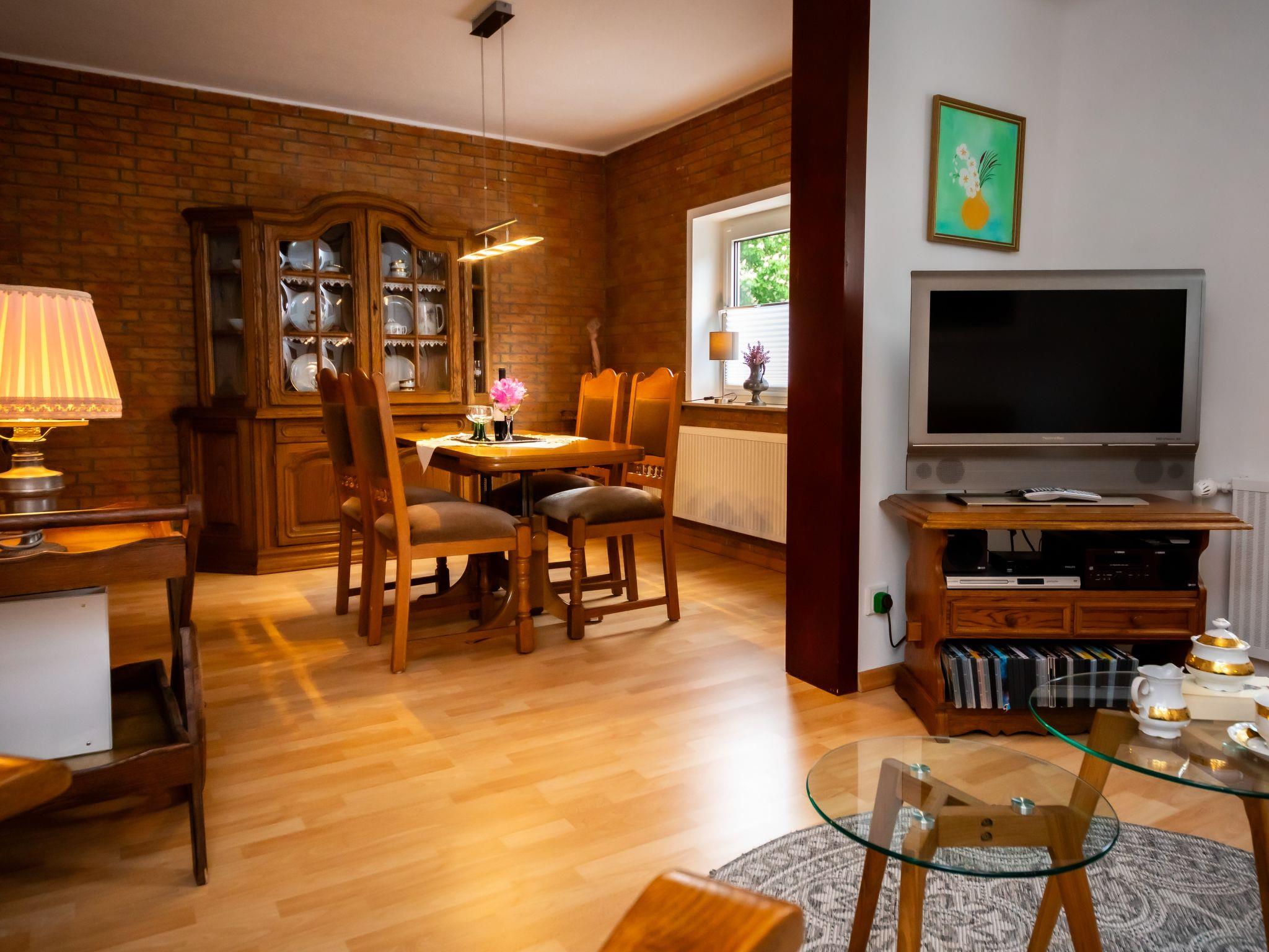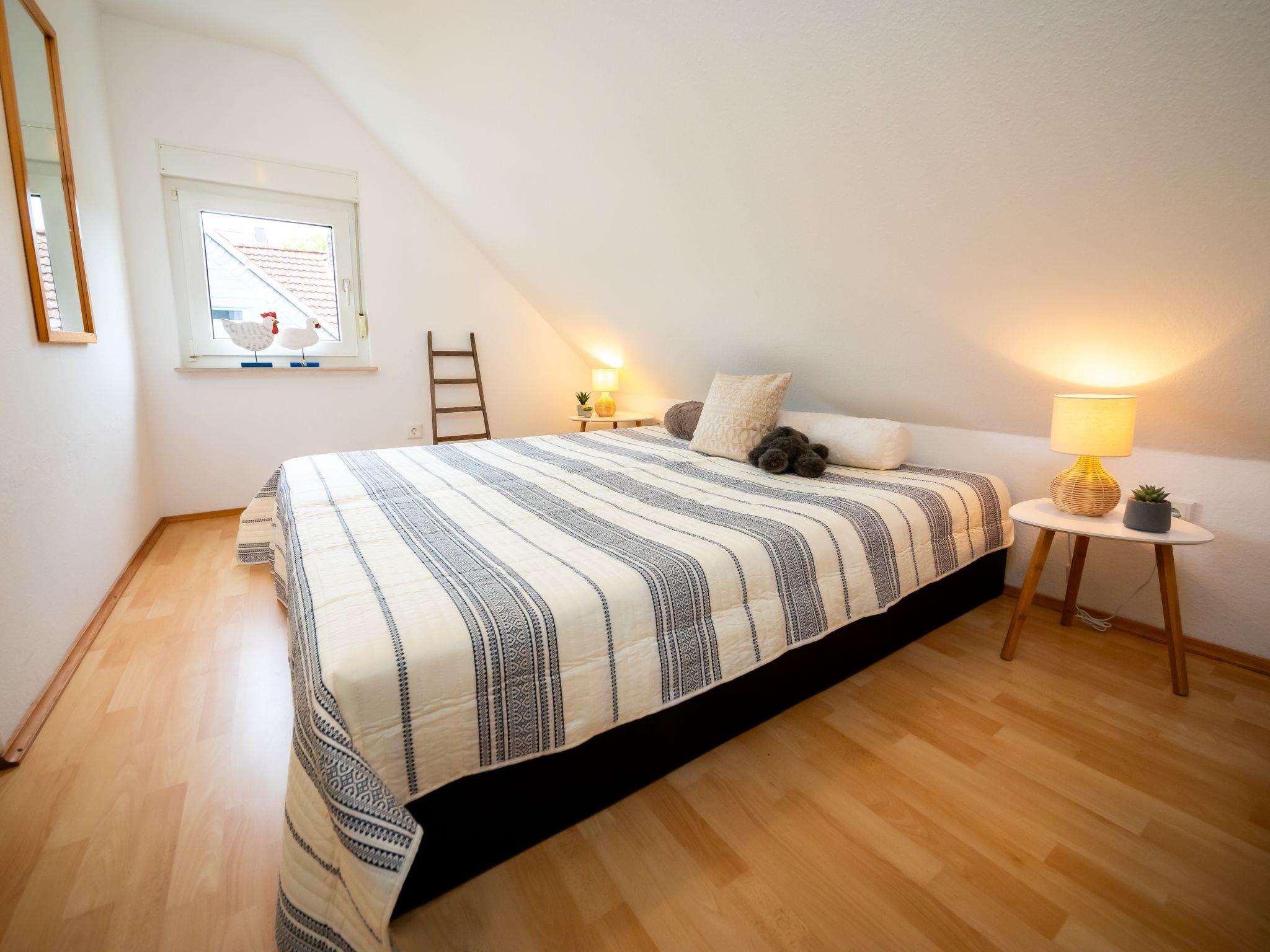 3-room house 80 m2 on 2 levels. Cosy furnishings: upper floor: living/dining room with satellite TV and flat screen. Kitchen (4 hot plates, oven, dishwasher, toaster, kettle, microwave, freezer) with dining table. Shower/WC. Top floor: with sloping ceilings, 2 rooms, each room with 2 beds. Gallery with sloping ceilings with satellite TV (flat screen). Oil heating. Terrace 30 m2. Terrace furniture, barbecue, deck chairs (2). Facilities: Internet (WiFi, free). Please note: non-smokers only. Maximum 1 pet/ dog allowed. Smoke alarm. no company bookings allowed. Bookings accepted for holiday purposes only.