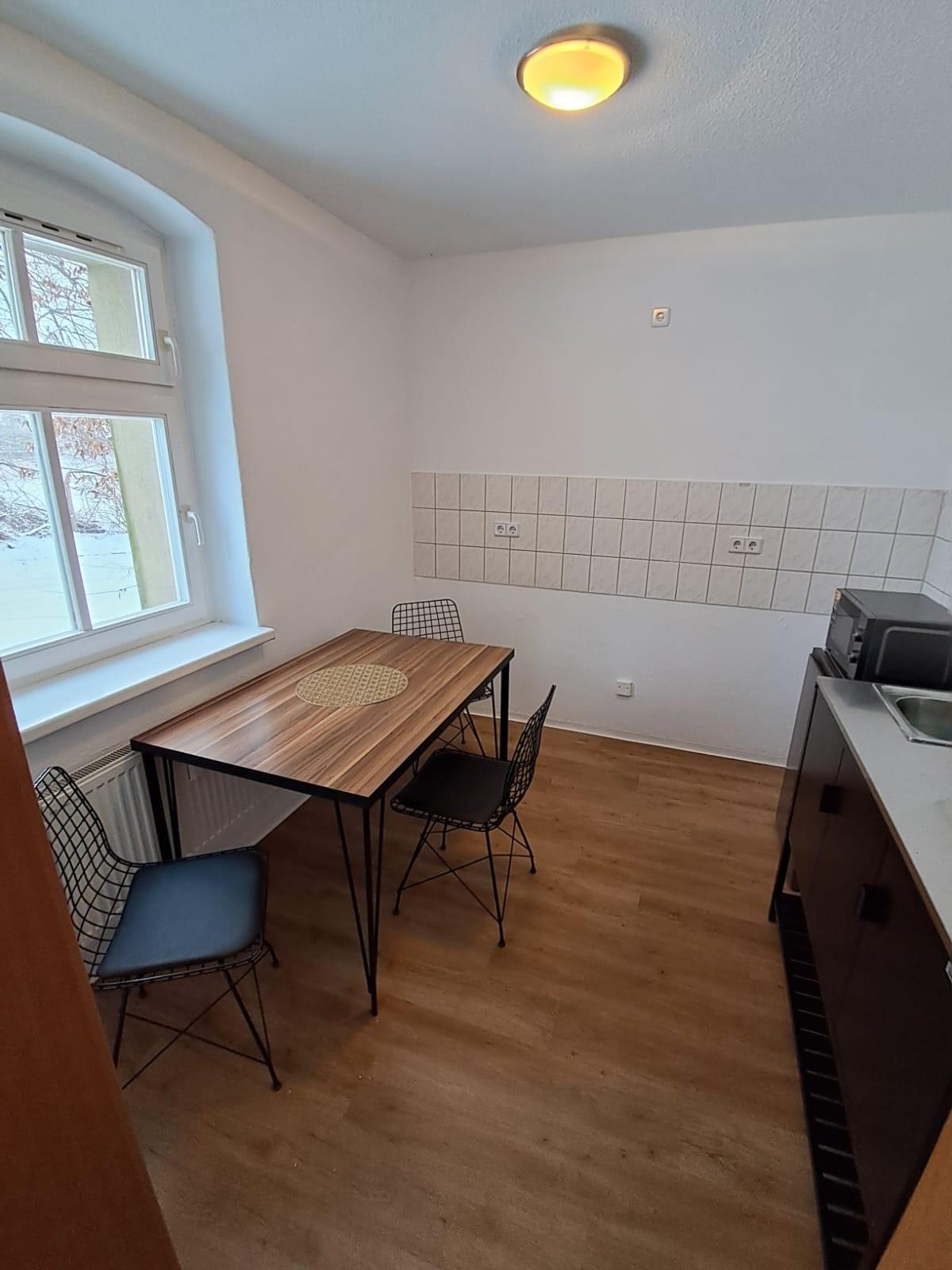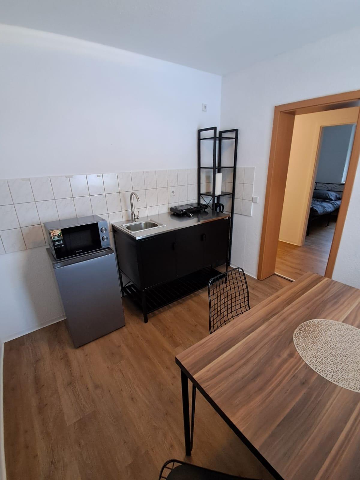 In einem 5-Parteien-Haus befindet sich im EG rechts eine kleine Ferienwohnung / Monteurzimmer mit einfacher und moderner Ausstattung. Die Böden sind mit Vinylboden ausgestattet bzw. Fliesen.