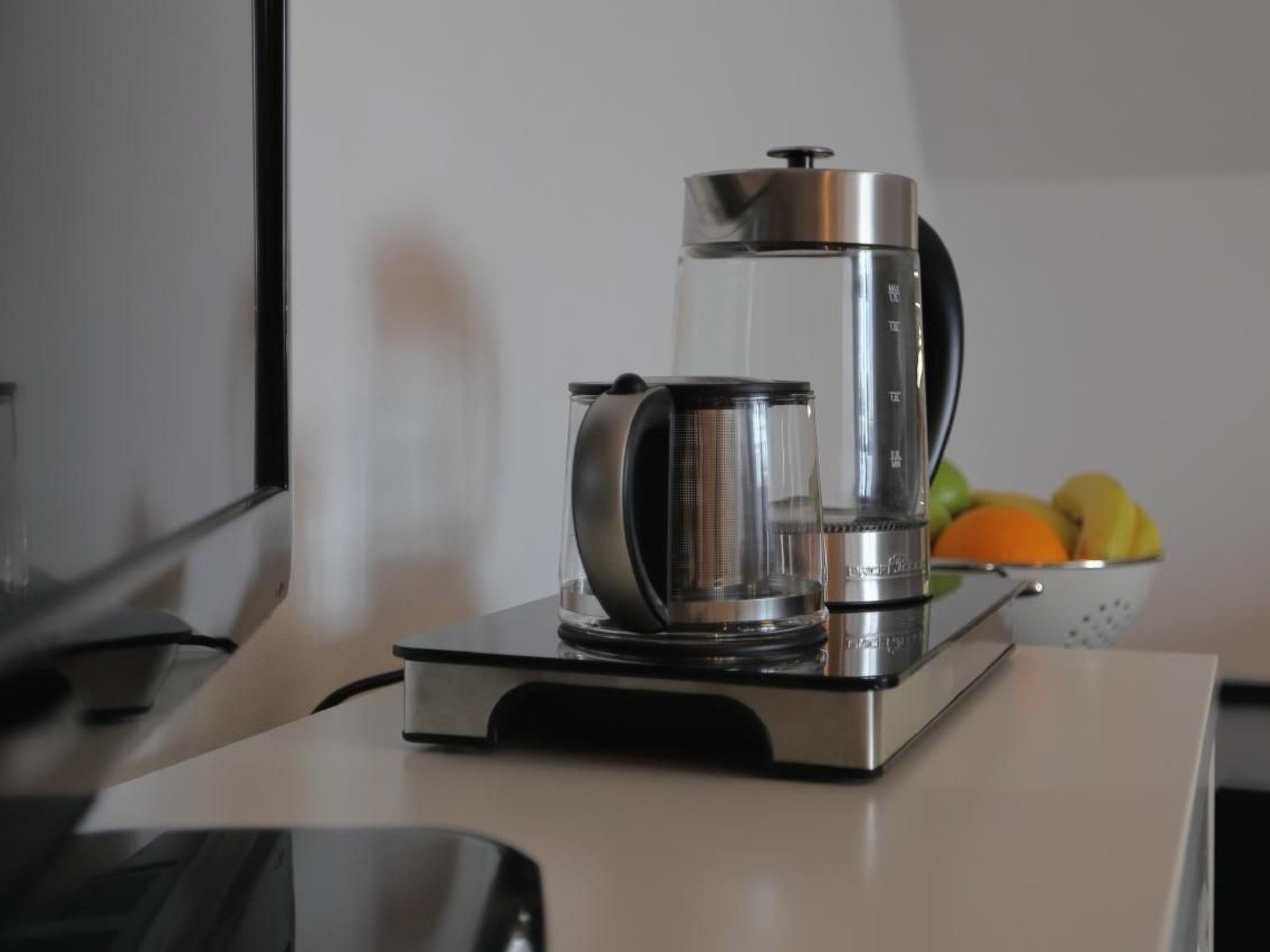 You can also make yourself a coffee or tea in the morning with the tea and kettle.