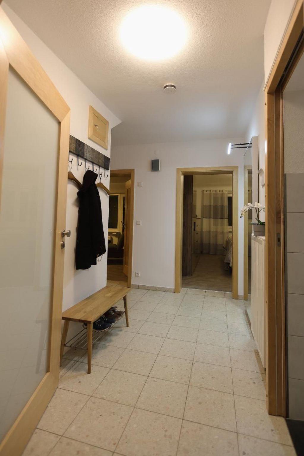 The bathroom is equipped for the disabled, with plenty of grab rails to make using the bathroom easier. The barrier-free access to the shower, the wide sliding door in the entrance area of the bathroom and the electric shutters are designed to make it easier to use. We provide a hairdryer and towels for you and your guests. You will also find soap from the Sagrotan soap dispenser and Sagrotan hand sanitiser gel for your hands in the bathroom. If there is anything we can do to further improve the facilities for people with disabilities, please let us know.