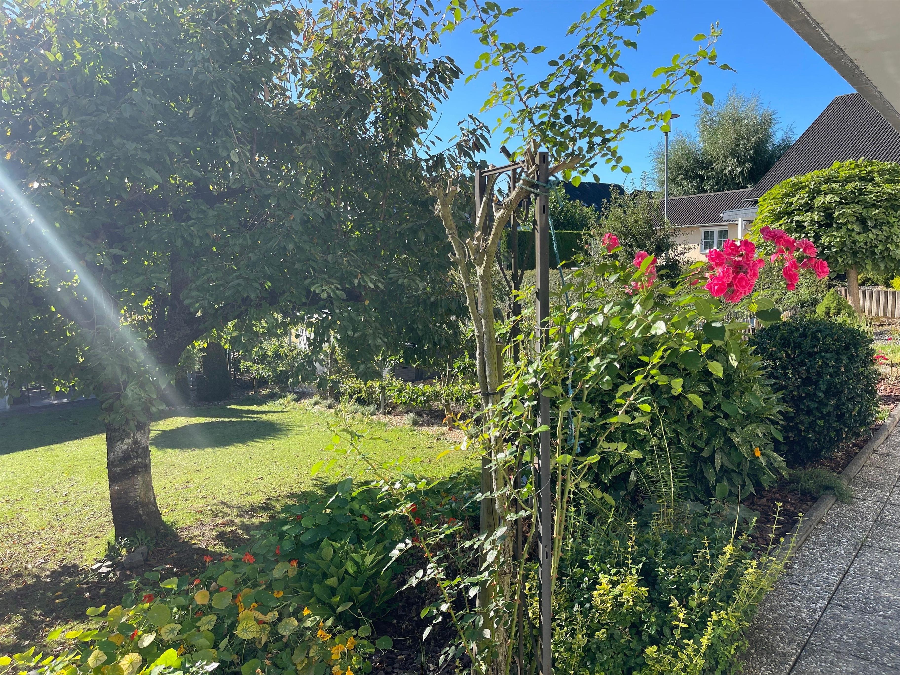 Ihr wohnt direkt am / im Garten. Sogar Ferienhaushühner sind in euer Nachbarschaft.