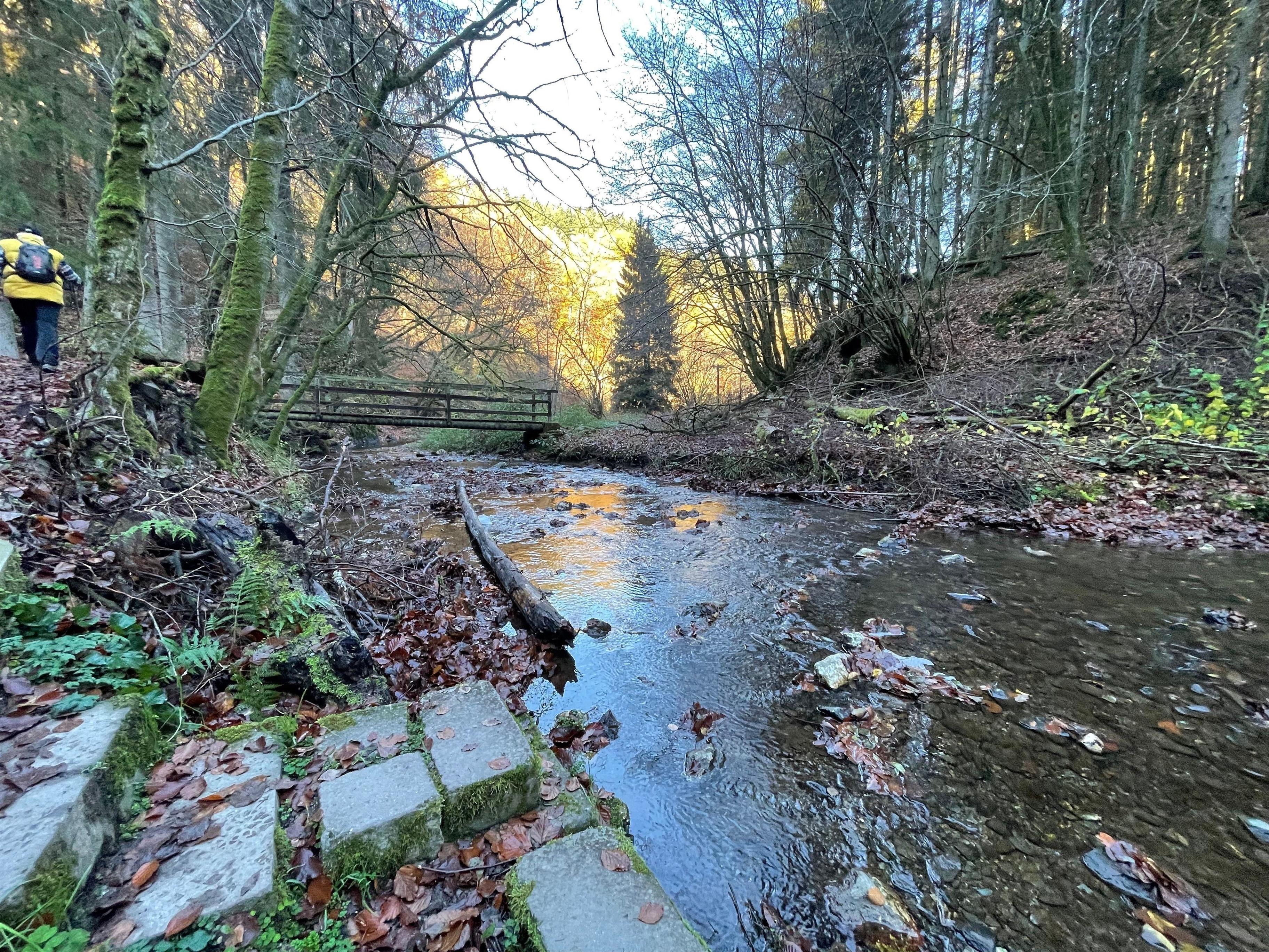 Über die Traumschleife "Masdascher Burgherrenweg" führt uns diese Variante bis zur längsten Hängeseilbrücke Deutschlands, die sich über eine Länge von 360 m und 100 m über Grund spektakulär bei der "Geierlay" über das Tal des Mörsdorfer Baches spannt. Hunsrück: Beliebter Rundwanderweg Mitten in der reizvollen Hunsrücklandschaft wartet mit dem "Masdascher Burgherrenweg" eine traumhafte Rundtour durch verwunschene Täler mit murmelnden Bächen, sanften Höhen mit herrlichen Fernsichten, uralten Gemäuern aus Kelten, Römer und Ritterzeiten darauf entdeckt zu werden. Der Weg ist top gepflegt, wartet mit reichlichen Rastplätzen - u. a. einer trutzigen Burgruine, Einkehrmöglichkeit zum Kaffee, einer empfehlenswerten Gaststätte zum Tagesabschluss und als krönender Höhepunkt - pures Adrenalinfeeling beim überqueren Deutschlands längster Hängeseilbrücke "Geierlay"
