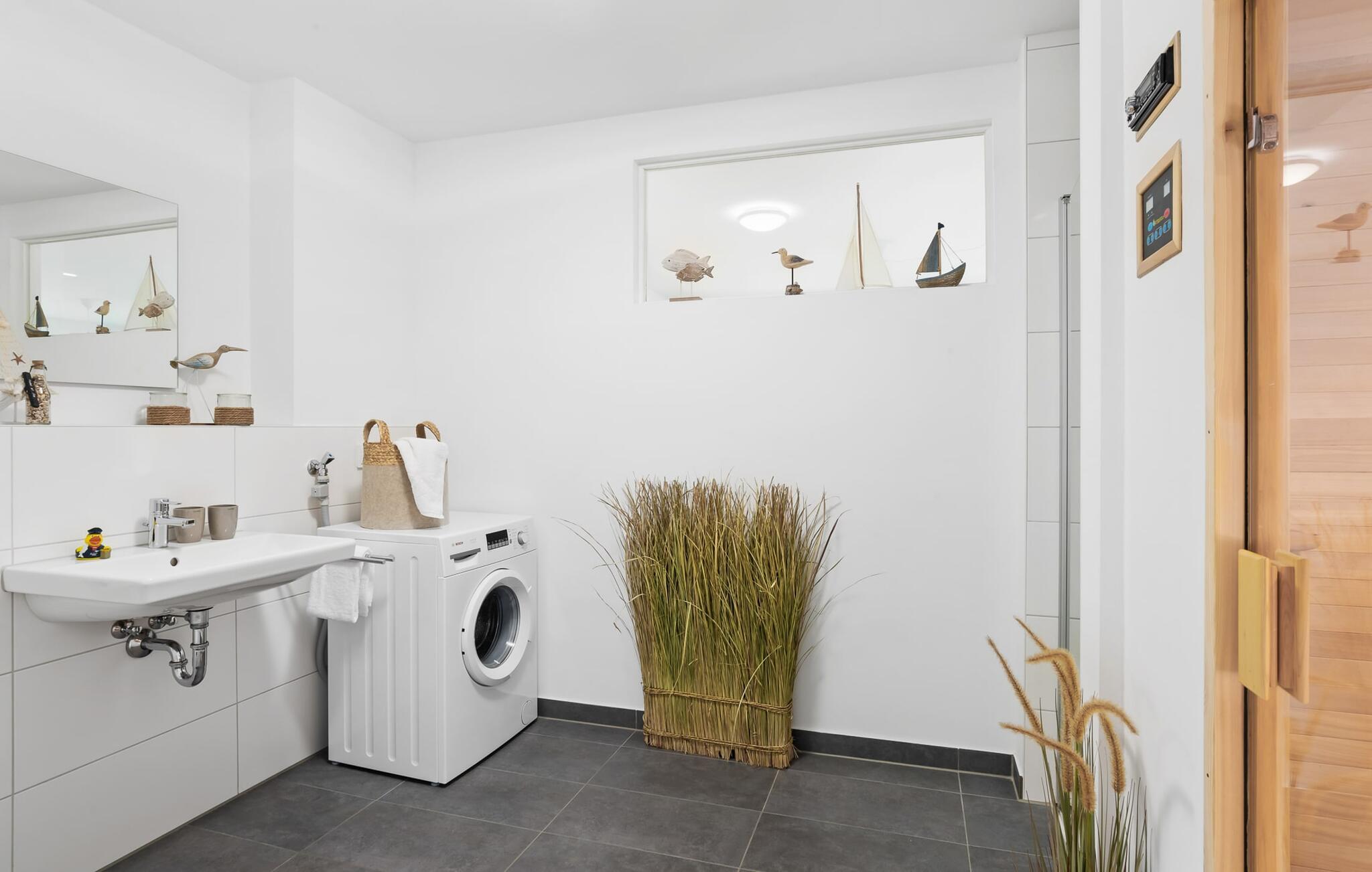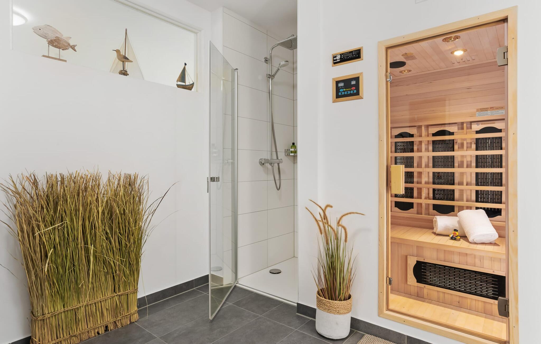 Bruserummet med brusebad i gulvniveau og infrarød sauna sikrer uforglemmelige wellness-øjeblikke, som I kan nyde i lang tid.