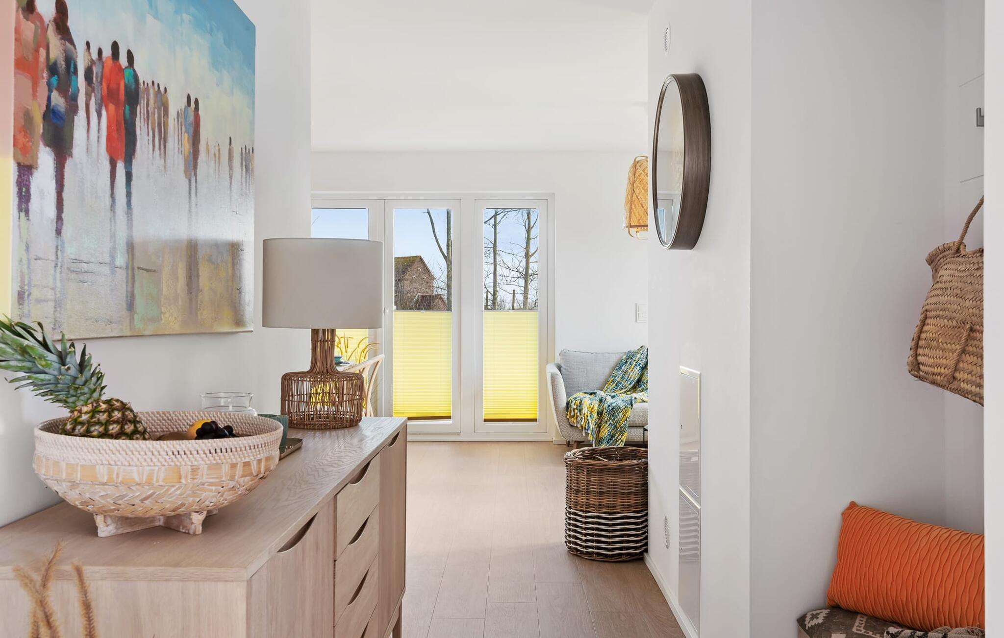 Direkte fra stuen er den store sydvestvendte terrasse. Dette tilbyder afslappende timer væk fra stress og jag i resten af ??feriestedet ved Østersøen. De medfølgende liggestole vender mod bagsiden med udsigt over de naturbevarende strandenge og marker og inviterer jer til at tilbringe en afslappende ferie.