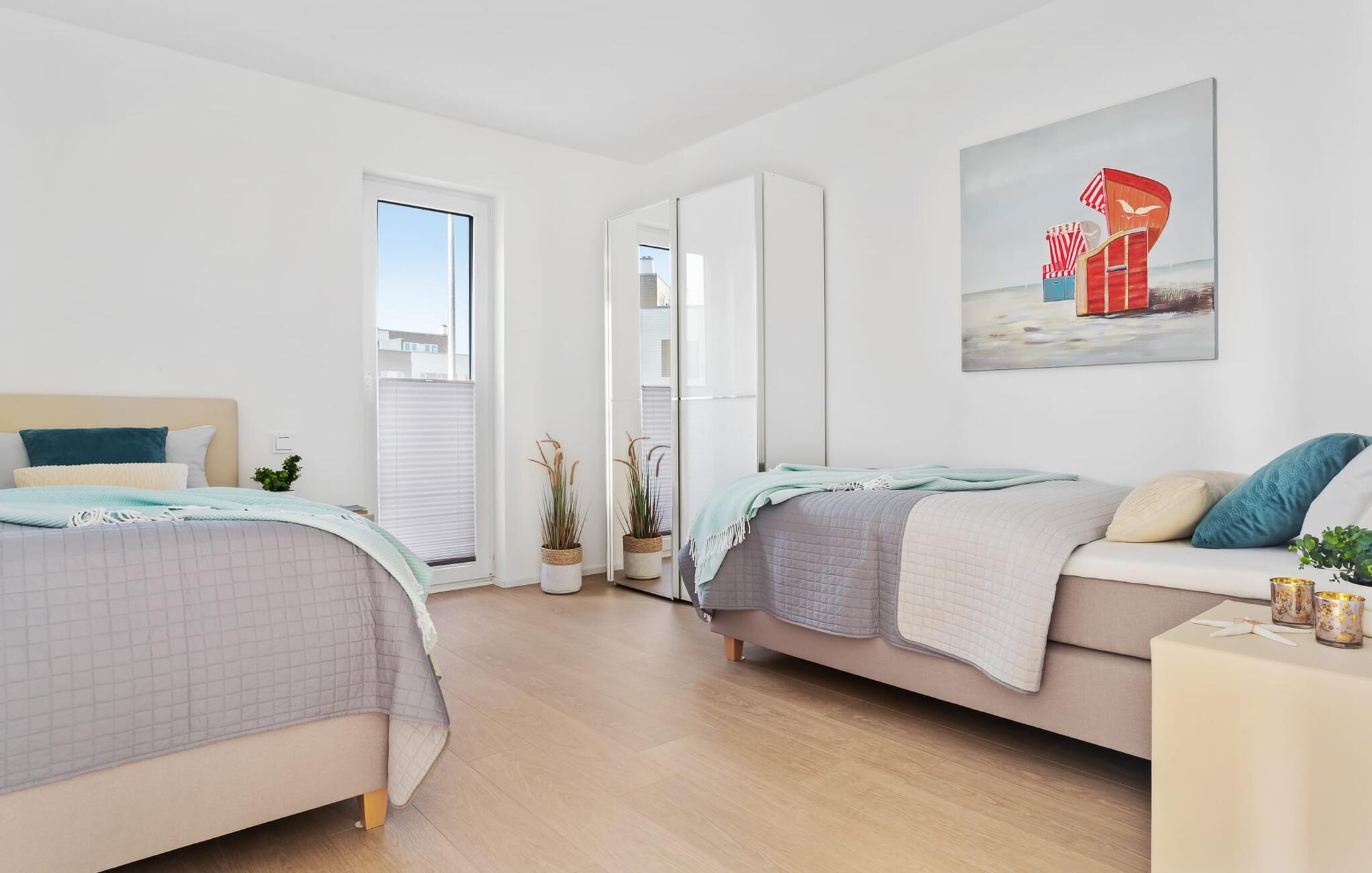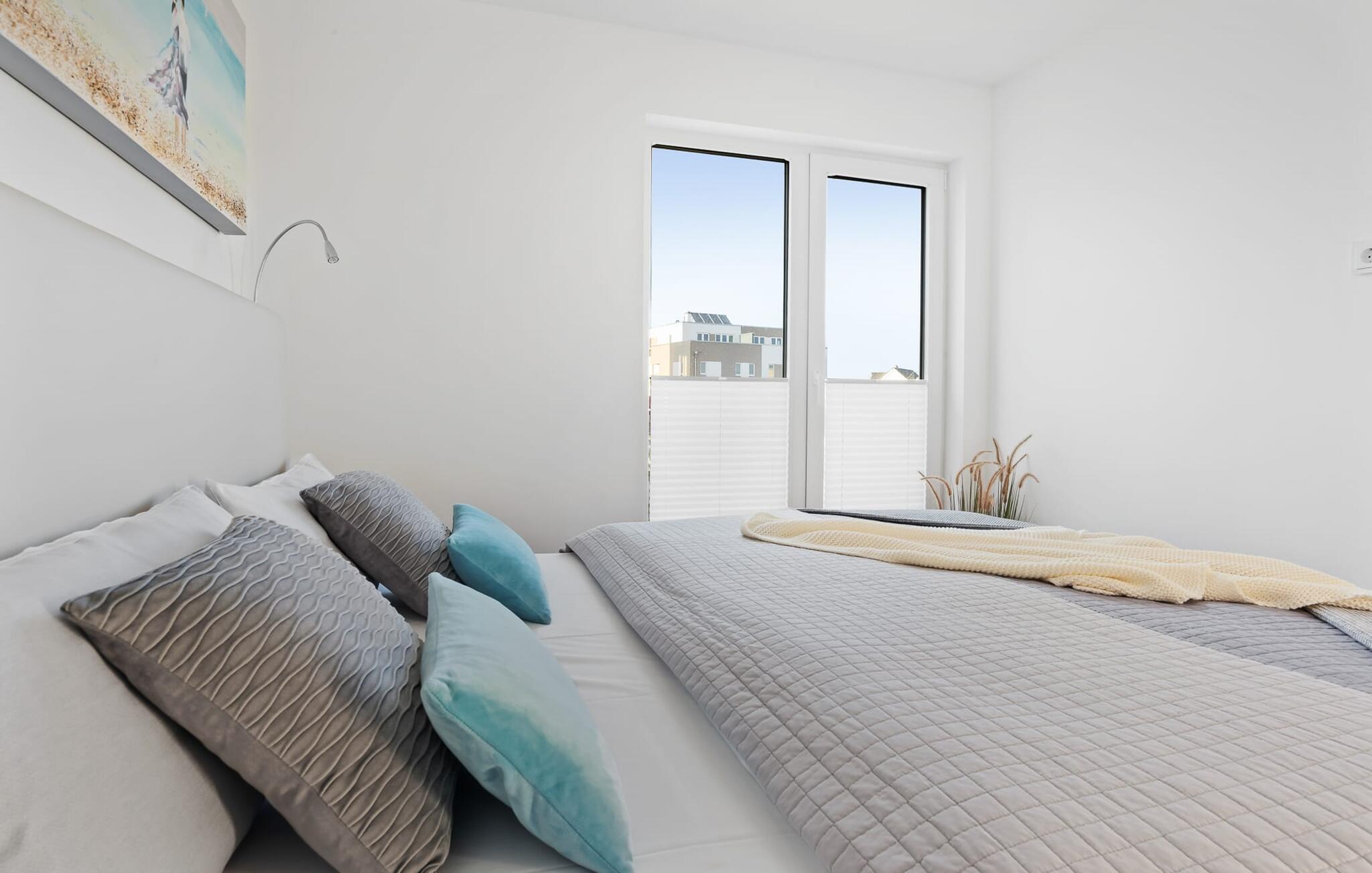 Sandstranden Weidefelder med kiosk, restaurant og strandstole ligger i gåafstand og er et attraktivt rejsemål på alle tider af året. Minigolfbanen med maritimt tema ligger også i umiddelbar nærhed og glæder både store og små.