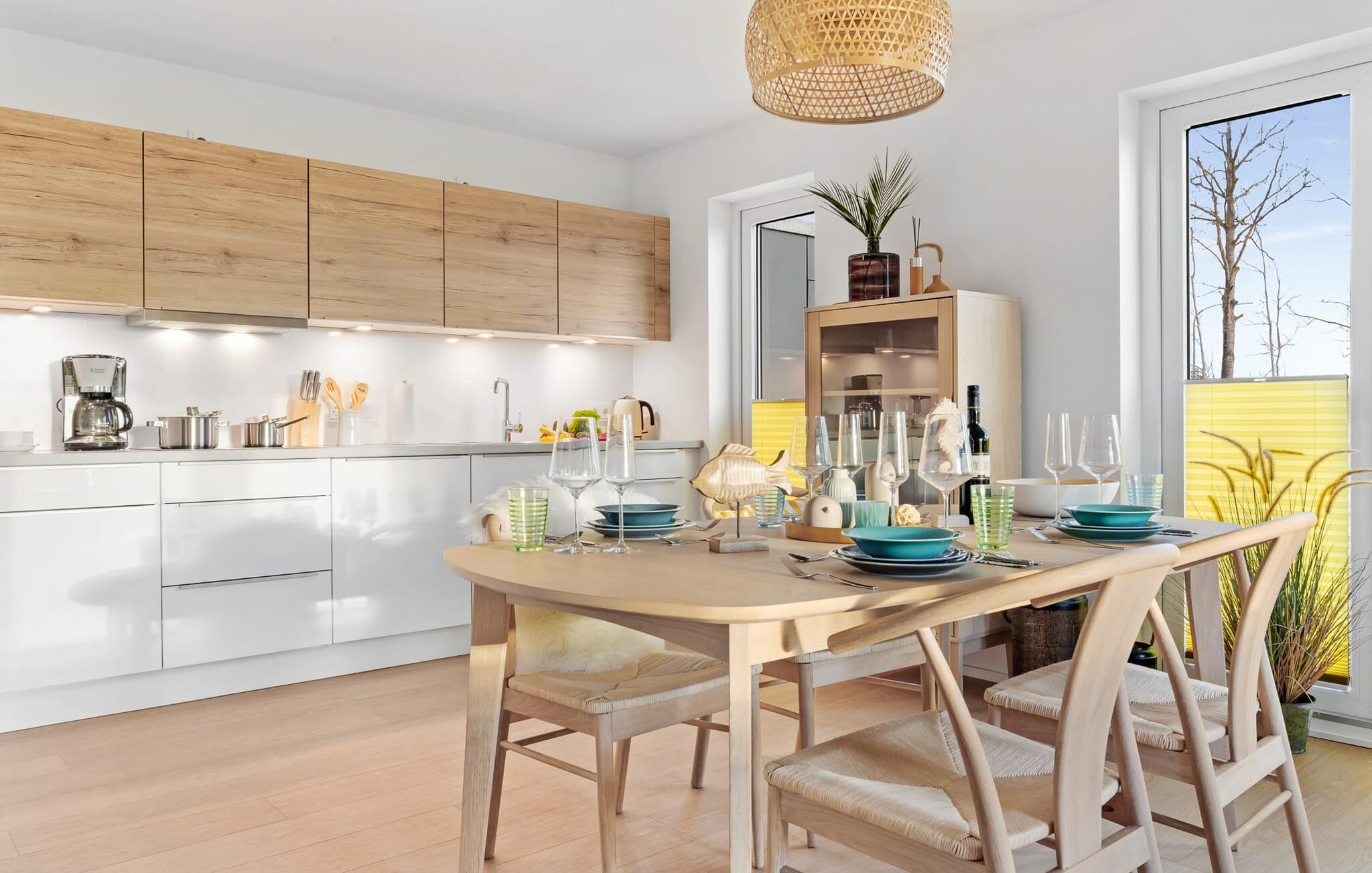 Det integrerede køkken er perfekt udstyret og af høj kvalitet, og det er sjovt at lave mad sammen. Så nyd de færdige lækkerier på terrassen eller start en hyggelig grillaften med grillen - det er ren ferie.
