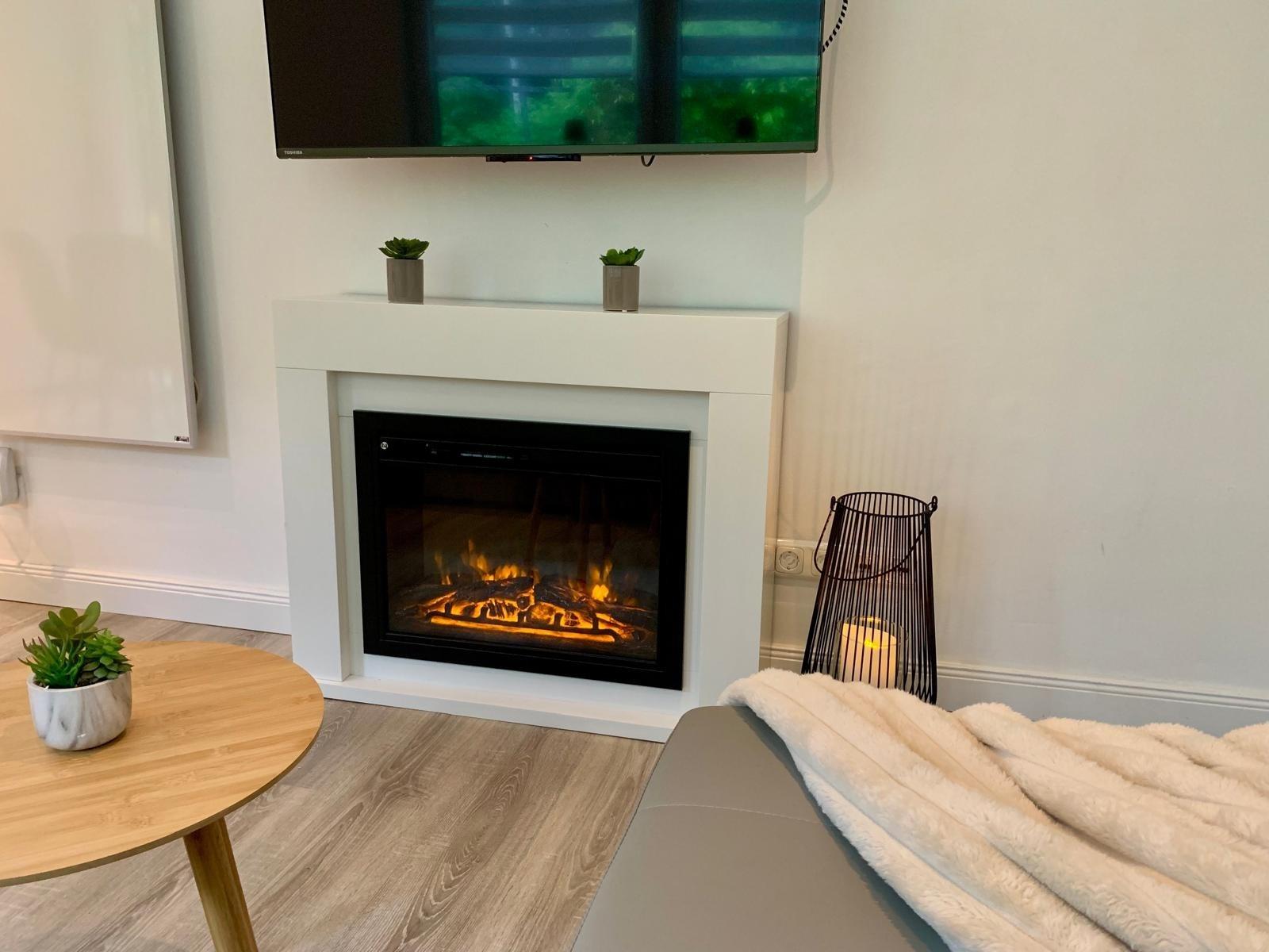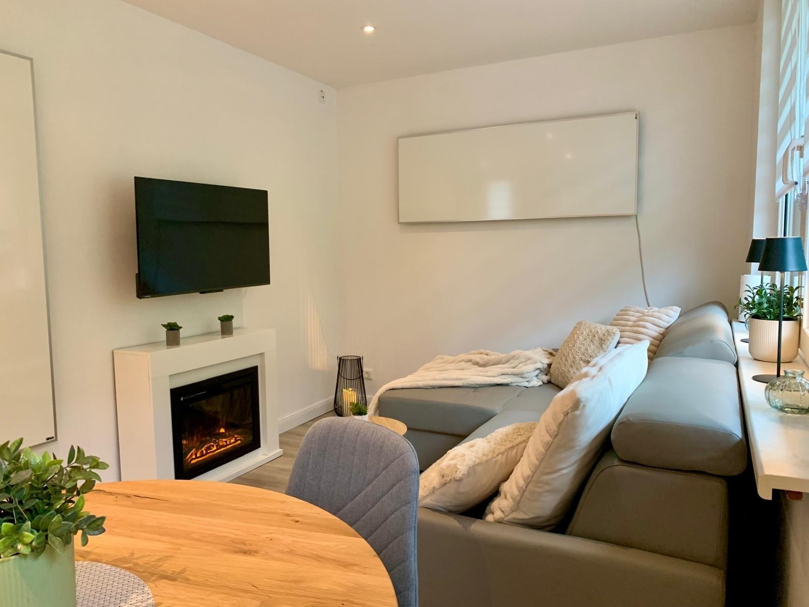 - einen gemütlichen Wohnbereich mit TV & Kamin - perfekt für kuschelige Abende zu zweit