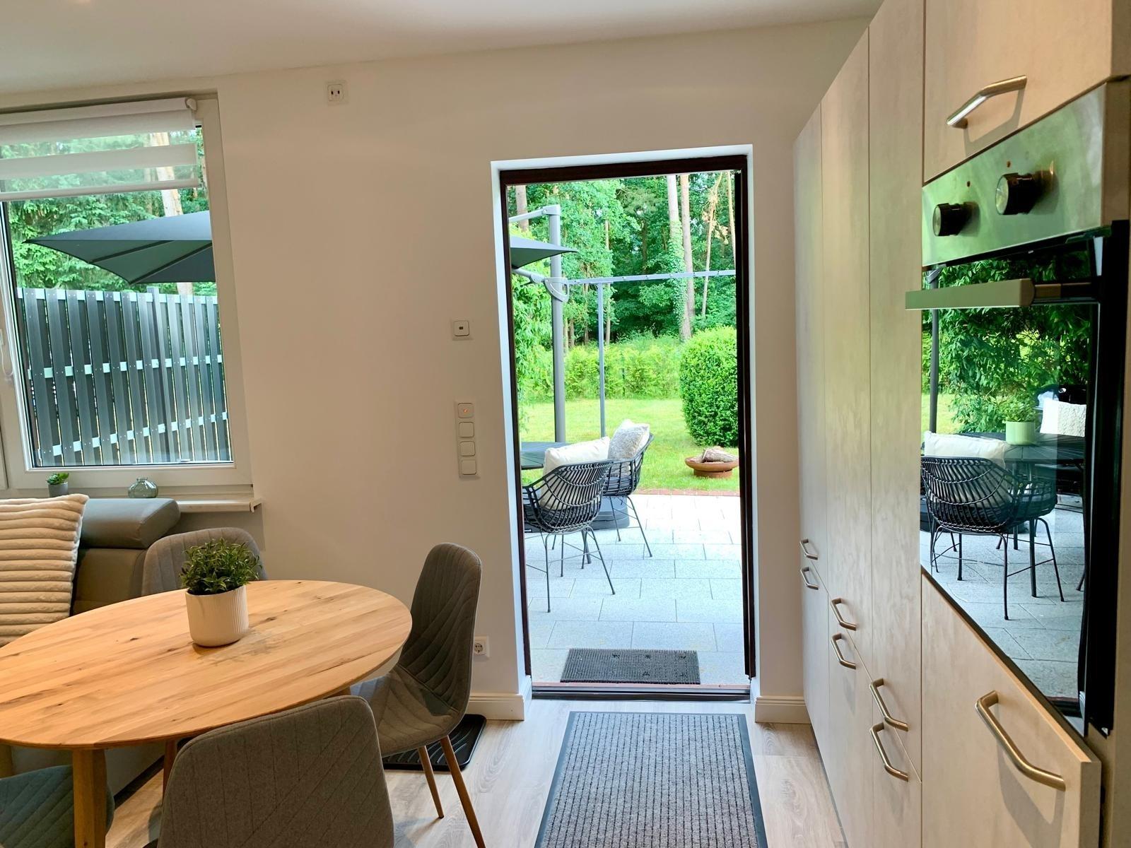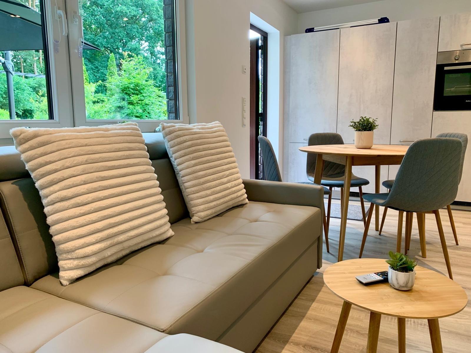 Unser exklusives kleines Ferienhaus wurde 2023 innen komplett modernisiert und bietet euch einen gemütlichen Wohnbereich und einen eigenen, umzäunten Garten am Wald.