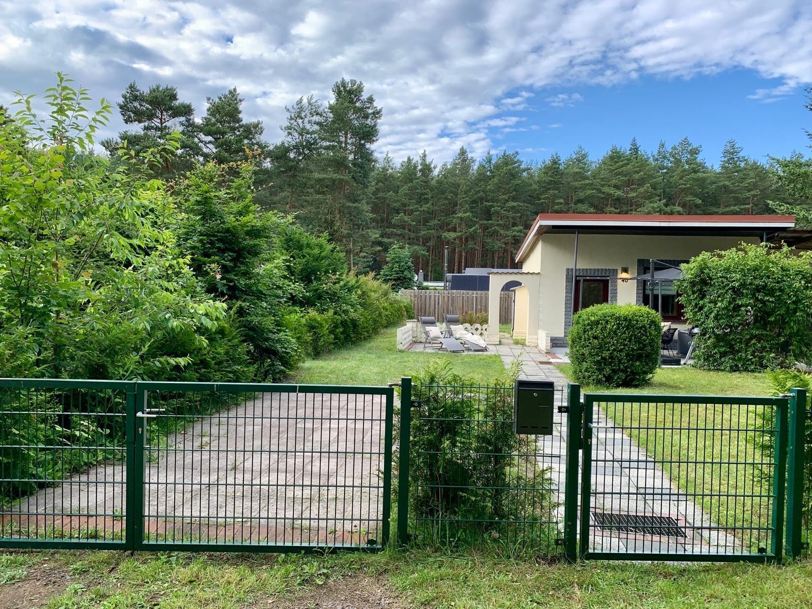 Das Haus befindet sich auf einem eigenen, eingezäunten Erholungsgrundstück in einer ruhigen Wochenendsiedlung.