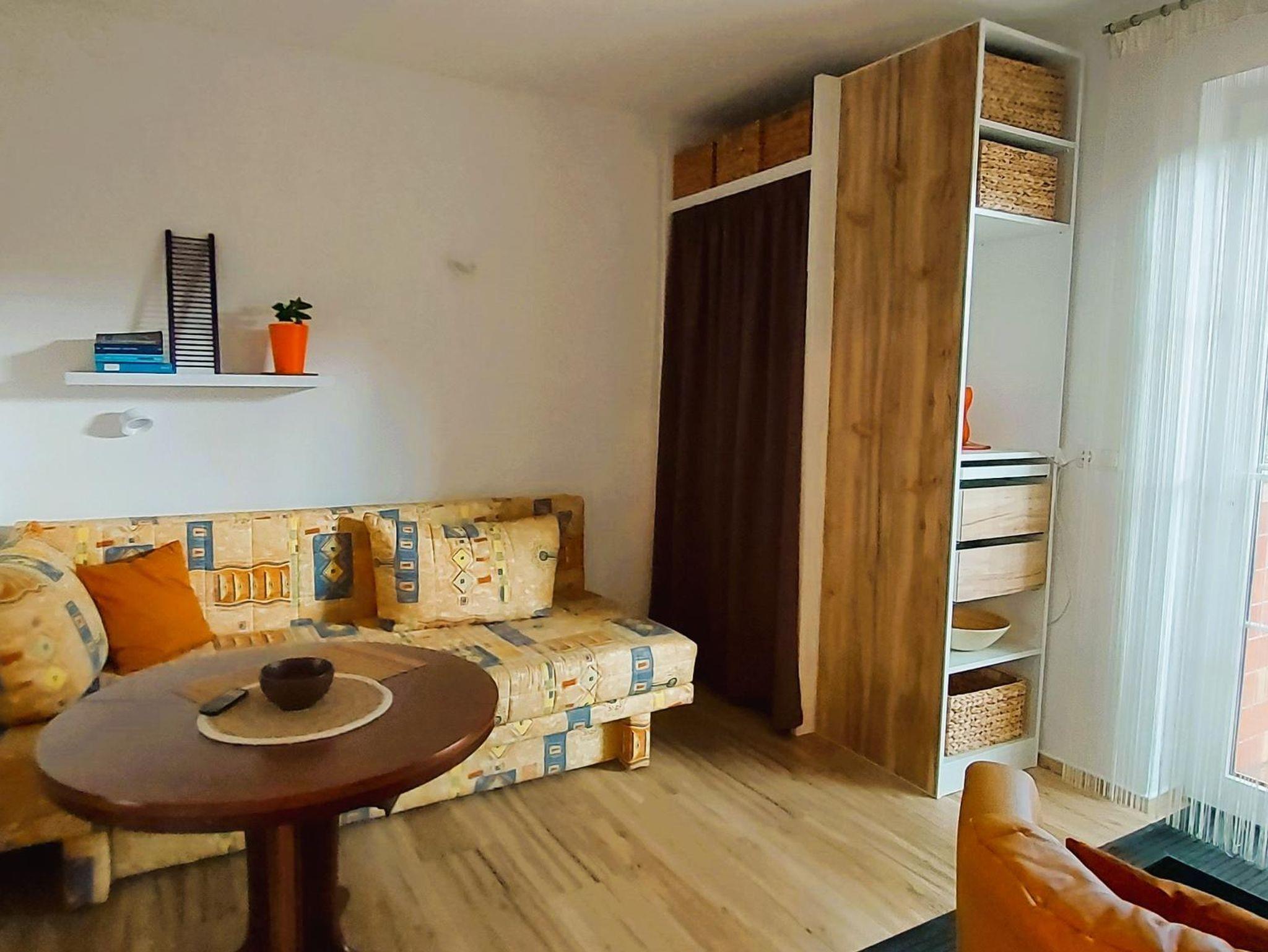 Unsere neue 78 m² große Ferienwohnung verfügt über einen separaten Eingangsbereich ausgestattet mit einer Garderobe und einem 1,60 m breitem Schlafsofa.