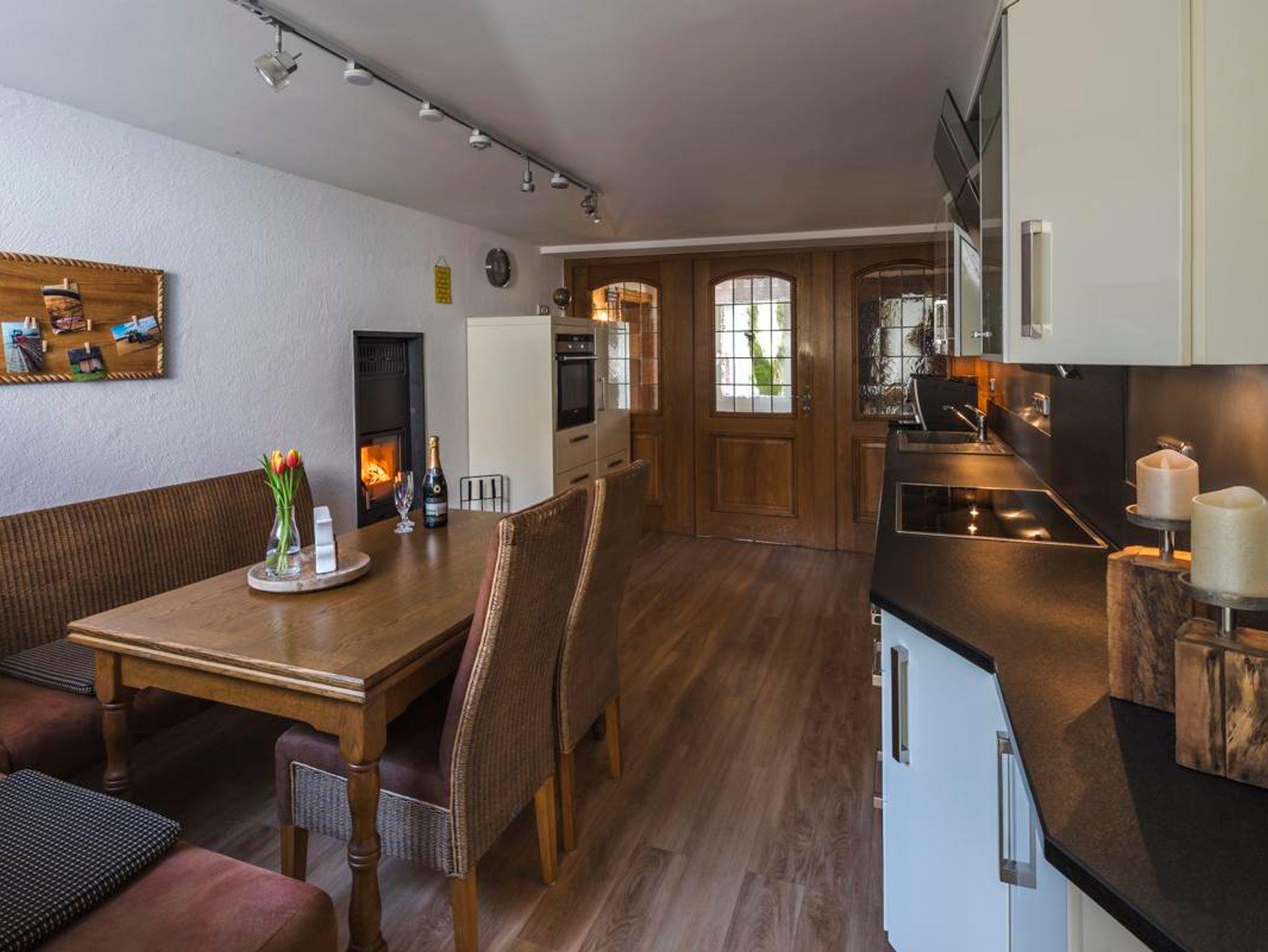 Die hochwertige Küche ist gut ausgestattet. Hier gehören unter anderem ein Ceranfeld, ein Backofen, ein großer Kühlschrank sowie Geschirrspüler, eine Mikrowelle, ein Radio (BOSE), ein Toaster und eine Brotschneidemaschine zur Ausstattung. Ein Kaffeevollautomat (ganze Bohnen) steht zur Verfügung.