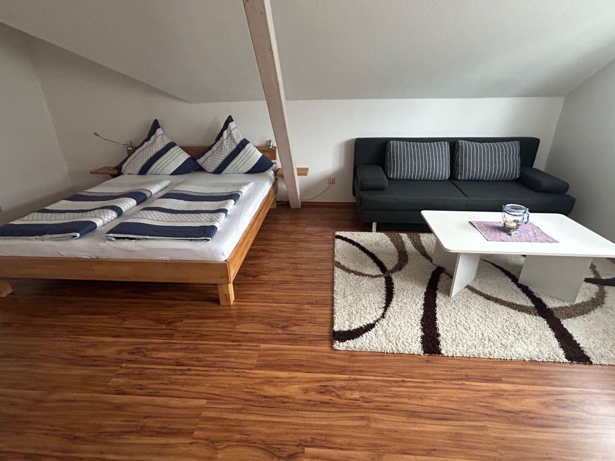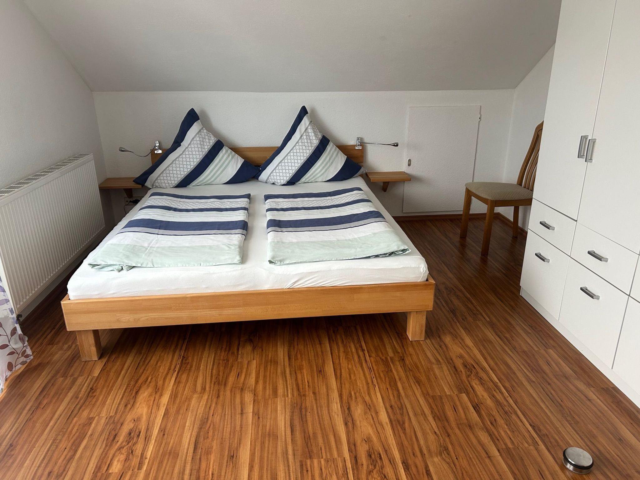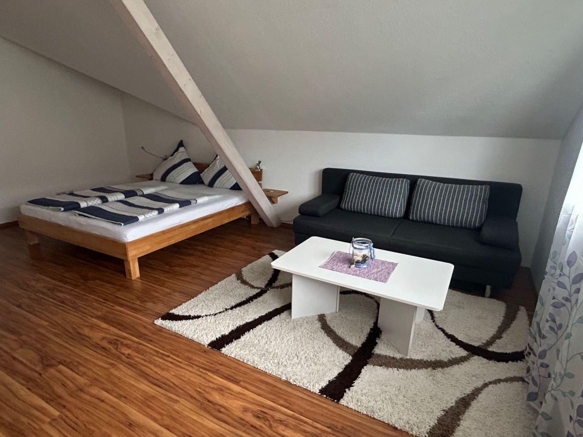 Discover the idyllic tranquillity and charming landscape of the Lake Constance region with a stay in our cosy holiday flat in Brochenzell, a picturesque suburb of Meckenbeuren. Situated between the towns of Ravensburg and Friedrichshafen, our accommodation offers the perfect starting point for exploring the region. On a generous living space of approx. 70sqm, on the upper floor of a well-kept detached house, up to 4 people will find enough space for an unforgettable holiday.