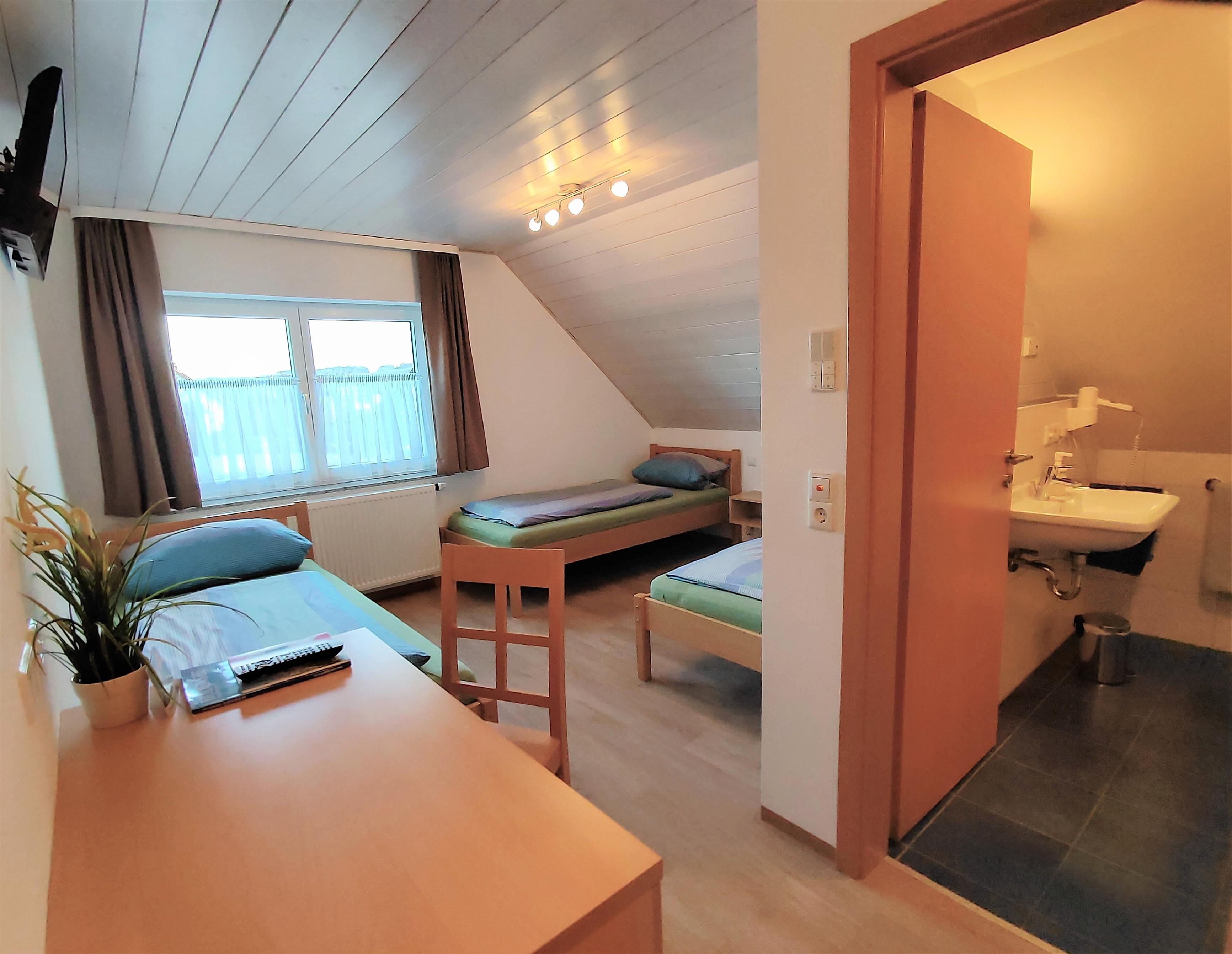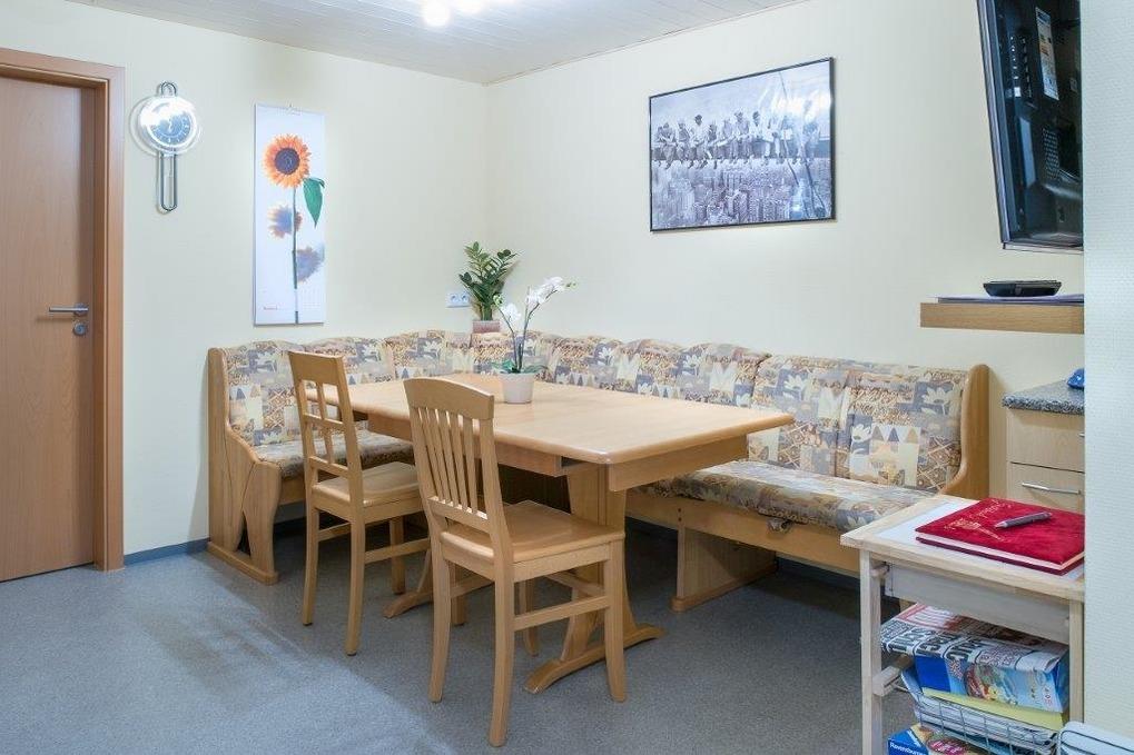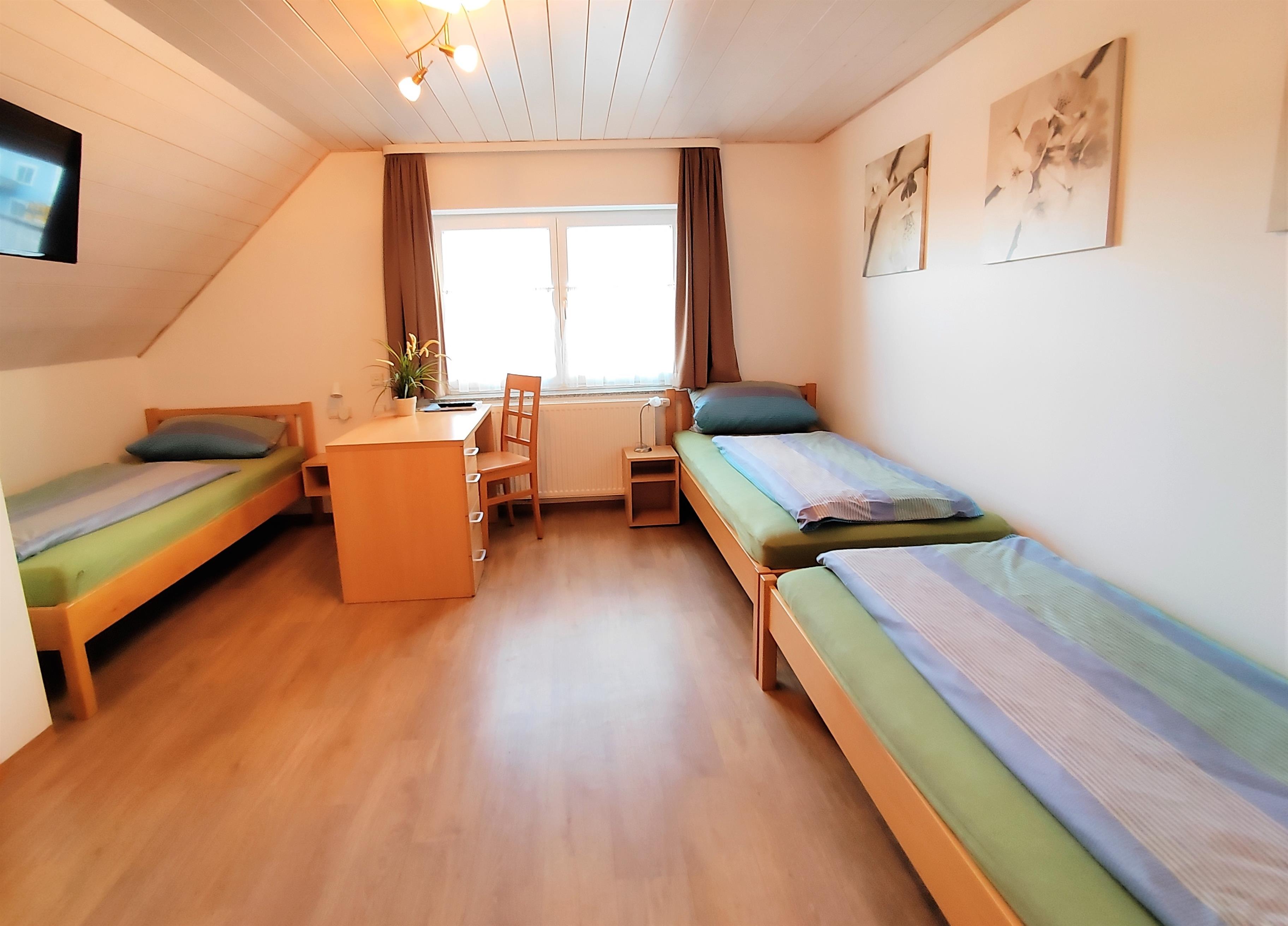 Wir bieten Ihnen ein Einzelzimmer, zwei Doppelzimmer und ein Dreibettzimmer mit Gemeinschaftsküche. Alle Zimmer sind ausgestattet mit DU/WC und TV. Für Ihren Familienurlaub bestens geeignet, wenn jeder sein eigenes Zimmer als Rückzugsort bevorzugt.