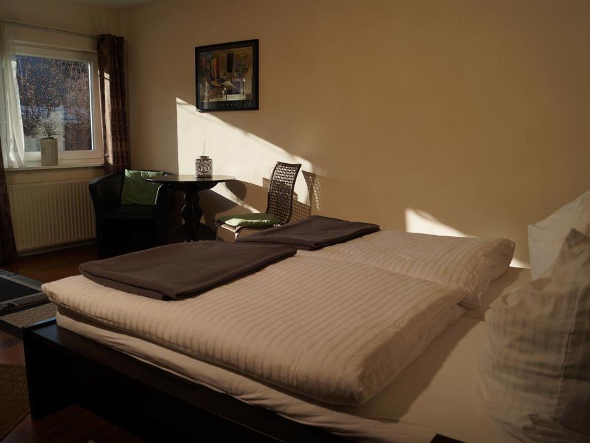 Die Doppelzimmer wurden komplett renoviert im Jahr 2014. Die Zimmer verfügen über ein Doppelbett 1,80/2,00m getrennte Matratzen, zusätzliche Beleuchtung über den Betten, 2 Nachttische, ein Kleiderschrank, Tisch und Stühle, Holzfußboden und Teppiche, Flachbildschirm. Beim Badezimmer handelt es sich um ein Tageslichtbad, ausgestattet mit Dusche mit Echtglaskabine, WC, Waschbecken und einem Bad-Regal.