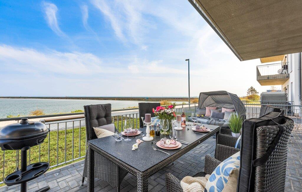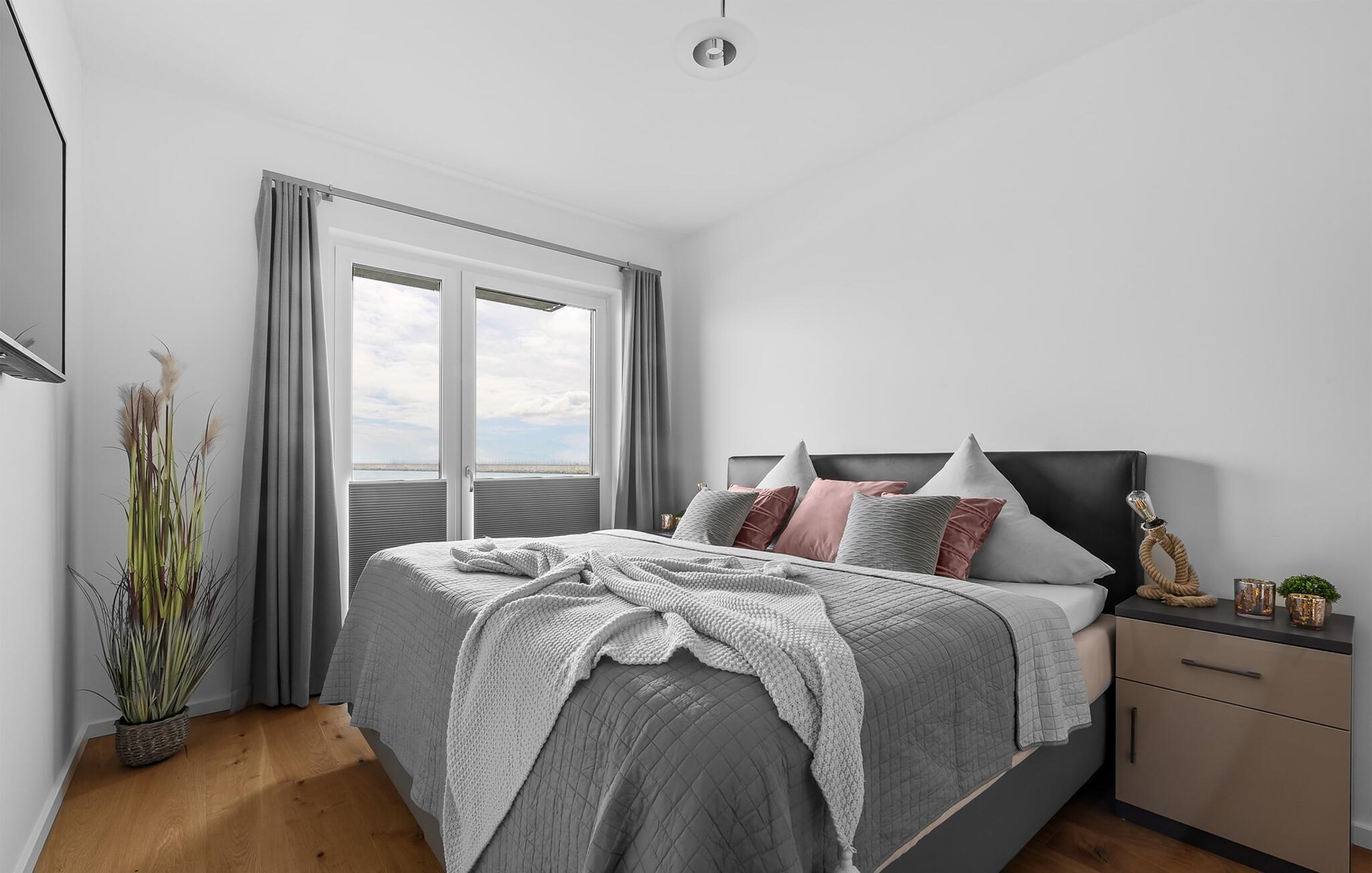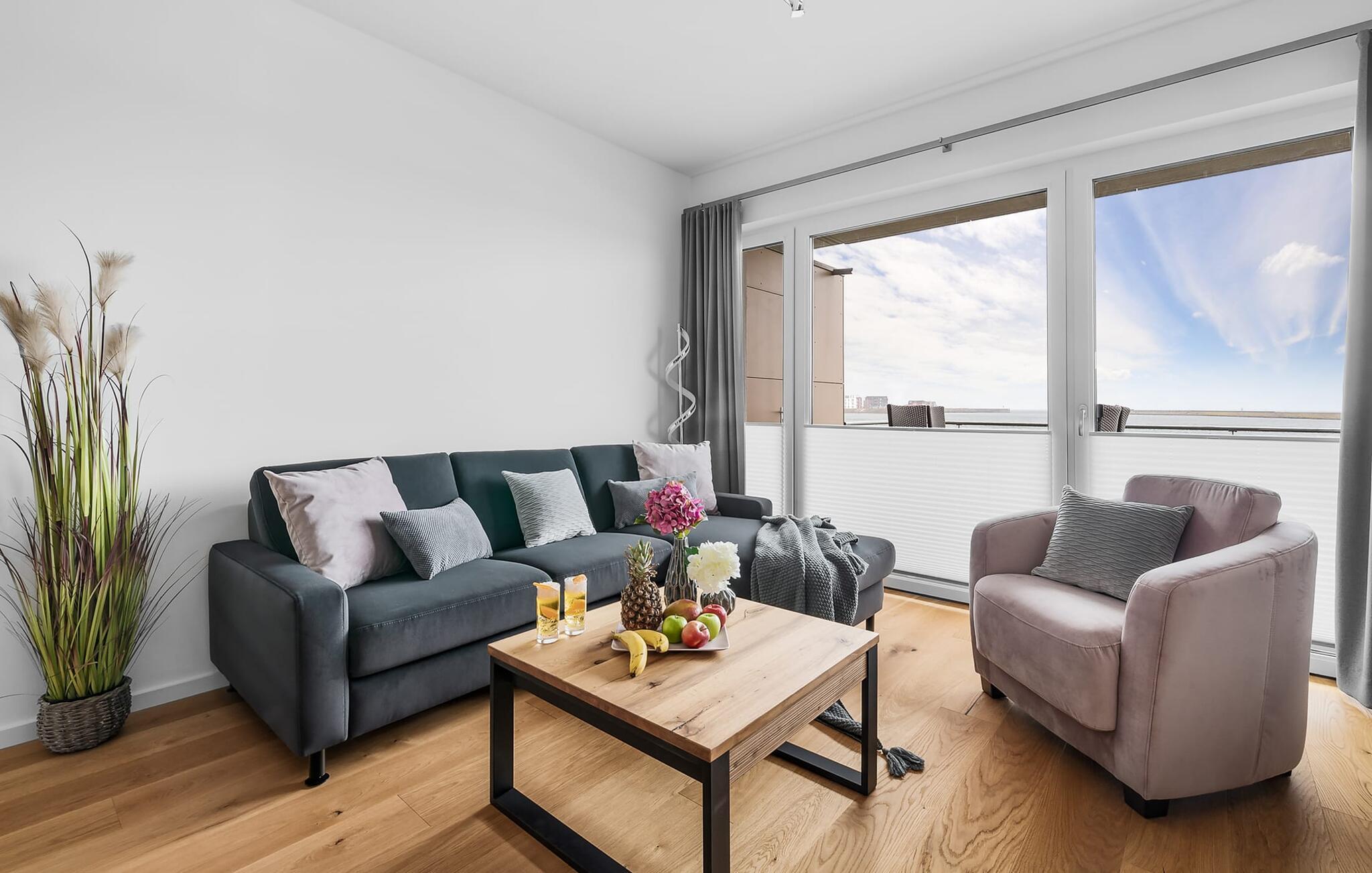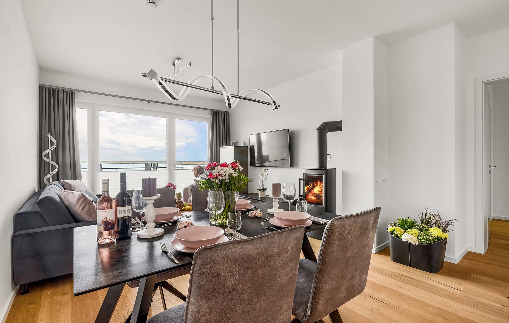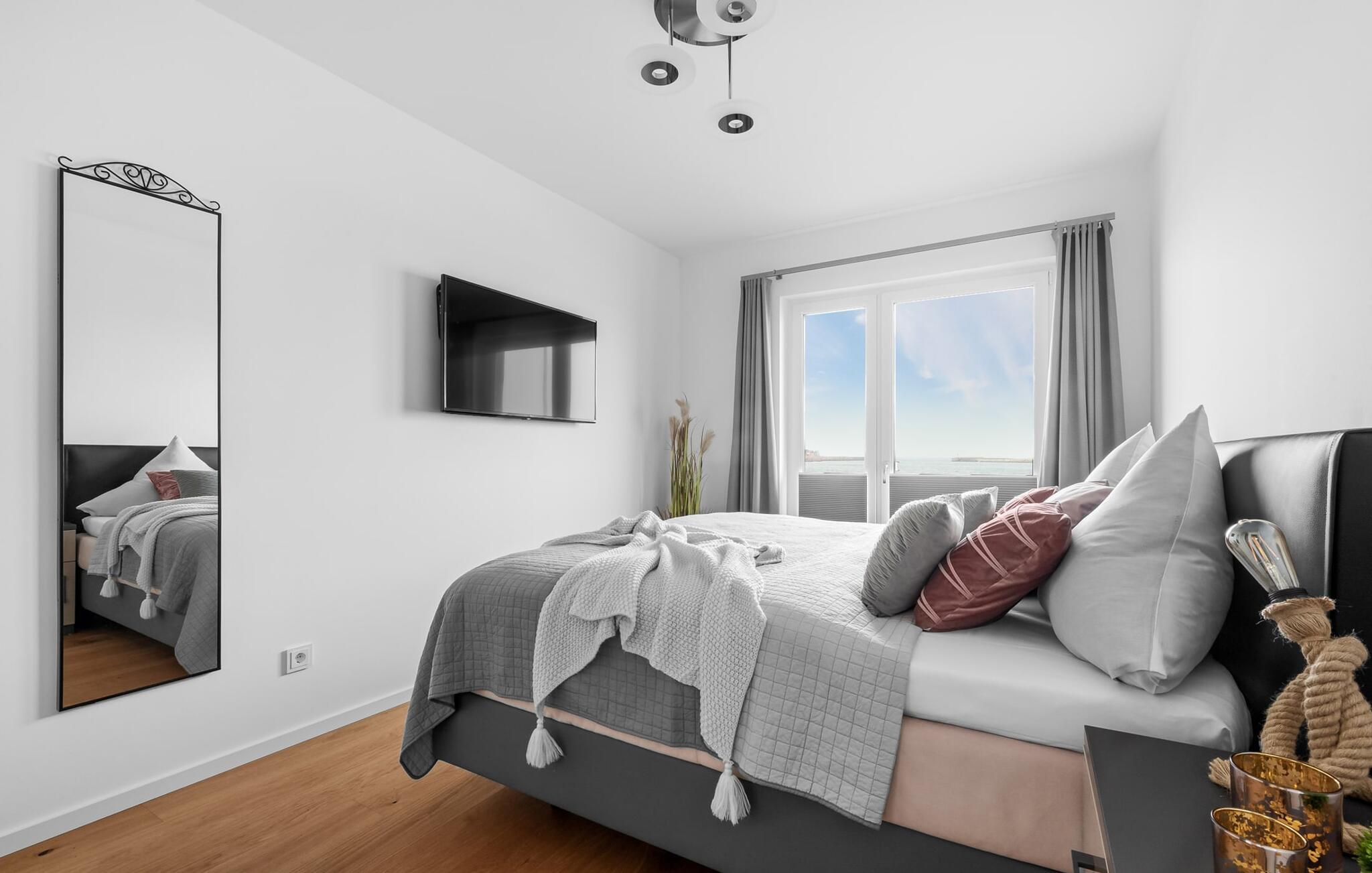 MEERCHENTRAUM fortjener med rette sit navn og inviterer jer til at drømme på ferie ved havet. Weidefelder-stranden er inden for synsvidde og kan nås til fods på få minutter. Her er garanteret skønne dage på, i og på vandet. Den maritime minigolfbane ligger i umiddelbar nærhed og byder på sjov for hele familien. Den åbne og rummelige stue/alrum byder jer velkommen med moderne møbler af høj kvalitet og stor sans for detaljer. Uanset hvordan I vender dig, kan I ikke undslippe udsigten over Østersøen, Slien og lystbådehavnen fra feriestedet Olpenitz ved Østersøen. En endeløs flade i blå nuancer strækker sig ud foran jer og er næsten utroligt. Og når I træder ud på den tilstødende terrasse, bliver I opmærksom på Østersøens urkraft. Oversvømmet med lys er den åbne stue/spisestue med sin store gulv-til-loft vinduesfront med direkte havudsigt en sand HAVDRØM! Den meget rummelige tilstødende terrasse er ligesom lejligheden indrettet med høj standard. Hele terrassen er omkranset af et lukket gelænder. Det veludstyrede tekøkken gør det sjovt at lave mad, ikke mindst på grund af den vidunderlige udsigt over det evigt skiftende hav. I den hyggelige opholdsstue med stort tv og pejs kan I slappe af og slappe af fra hverdagen selv på dårlige nordiske vejrdage. Udsigten over havet er der altid. Soveværelset er udstyret med dobbeltseng. Her finder I et ekstra fjernsyn. Et andet sted at sove er tilgængeligt på den komfortable sovesofa. Det rummelige brusebadeværelse med walk-in og barrierefri bruser er udstyret med alt hvad I behøver for at starte en vellykket feriedag. Den tilhørende parkeringsplads og den rummelige cykelkælder er også meget komfortable. Vores foretrukne sted: at starte dagen med en solid morgenmad på terrassen med udsigt til solen, der står op over havet... Bemærk venligst: OstseeResort Olpenitz er meget populært, og der bygges fortsat i parken. Ikke desto mindre kan I se frem til en 5-stjernet standard og et førsteklasses ophold. Byggeaktiviteterne kommer ikke til at forstyrre jer på ferien, og derfor gives der ikke yderligere afslag i prisen.