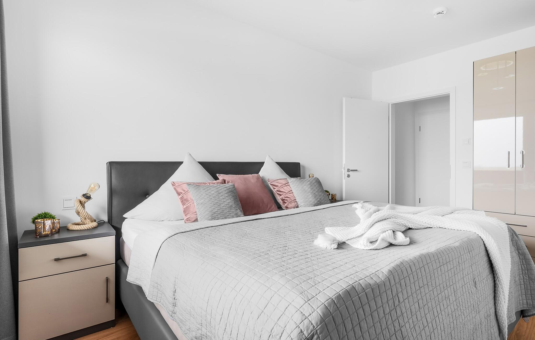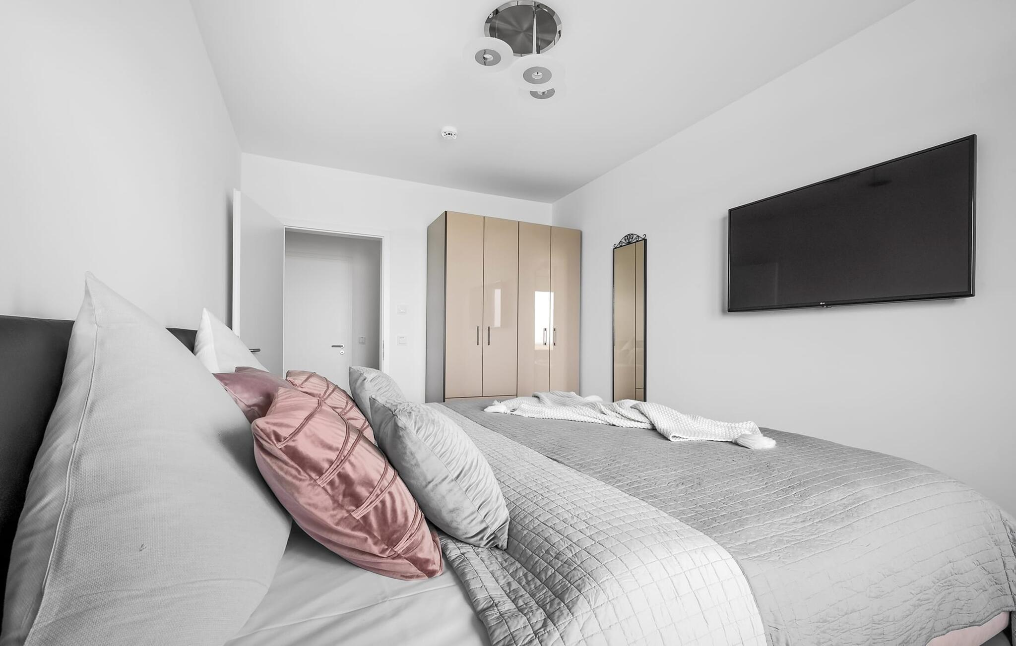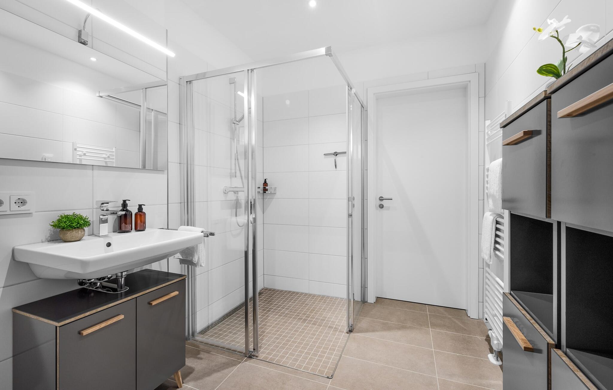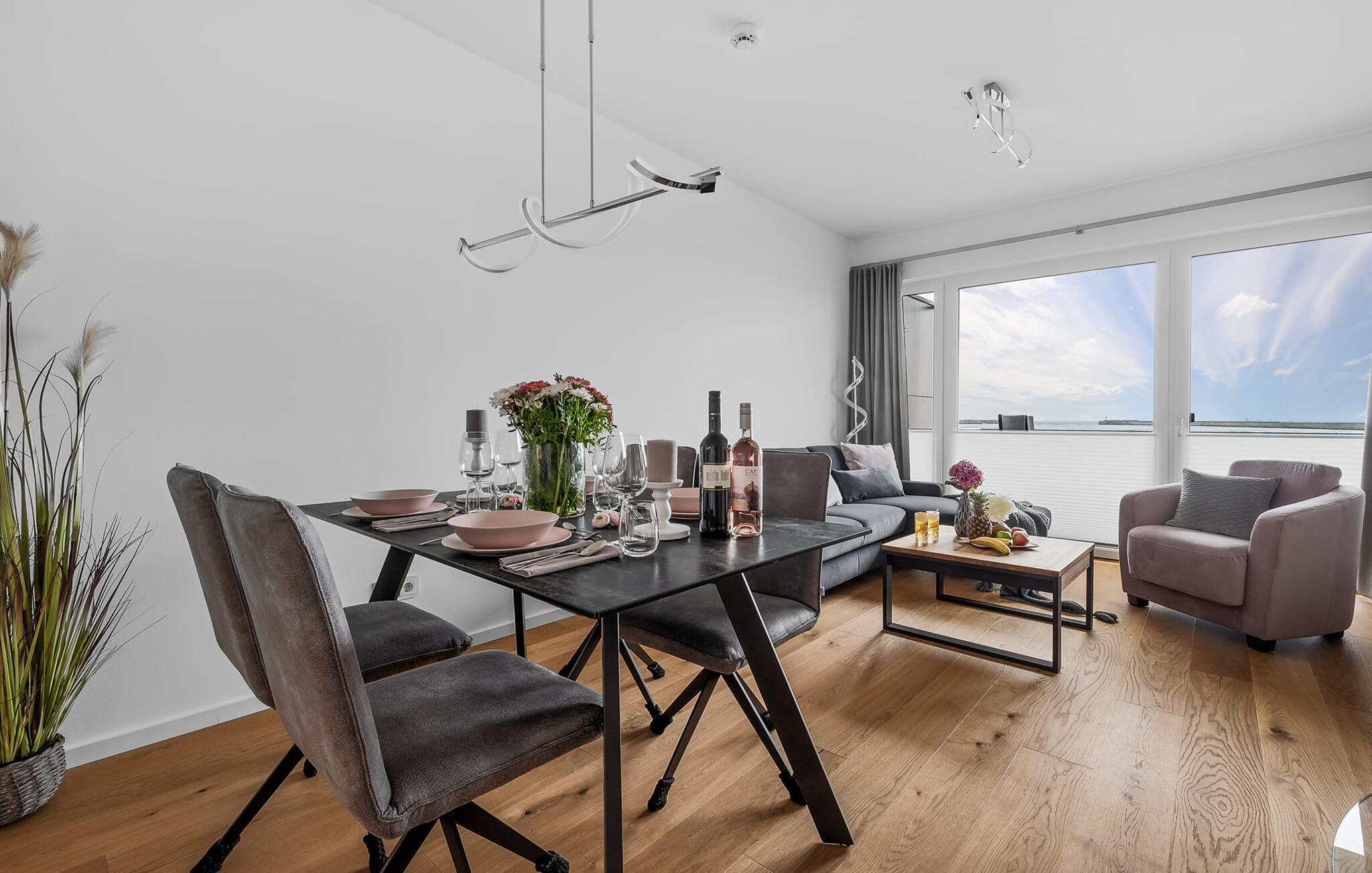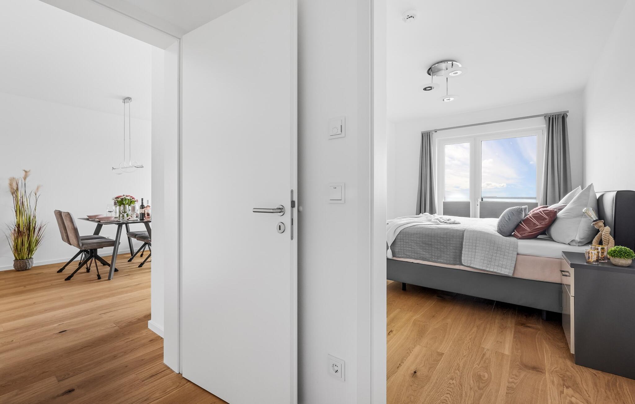 MEERCHENTRAUM fortjener med rette sit navn og inviterer jer til at drømme på ferie ved havet. Weidefelder-stranden er inden for synsvidde og kan nås til fods på få minutter. Her er garanteret skønne dage på, i og på vandet. Den maritime minigolfbane ligger i umiddelbar nærhed og byder på sjov for hele familien. Den åbne og rummelige stue/alrum byder jer velkommen med moderne møbler af høj kvalitet og stor sans for detaljer. Uanset hvordan I vender dig, kan I ikke undslippe udsigten over Østersøen, Slien og lystbådehavnen fra feriestedet Olpenitz ved Østersøen. En endeløs flade i blå nuancer strækker sig ud foran jer og er næsten utroligt. Og når I træder ud på den tilstødende terrasse, bliver I opmærksom på Østersøens urkraft. Oversvømmet med lys er den åbne stue/spisestue med sin store gulv-til-loft vinduesfront med direkte havudsigt en sand HAVDRØM! Den meget rummelige tilstødende terrasse er ligesom lejligheden indrettet med høj standard. Hele terrassen er omkranset af et lukket gelænder. Det veludstyrede tekøkken gør det sjovt at lave mad, ikke mindst på grund af den vidunderlige udsigt over det evigt skiftende hav. I den hyggelige opholdsstue med stort tv og pejs kan I slappe af og slappe af fra hverdagen selv på dårlige nordiske vejrdage. Udsigten over havet er der altid. Soveværelset er udstyret med dobbeltseng. Her finder I et ekstra fjernsyn. Et andet sted at sove er tilgængeligt på den komfortable sovesofa. Det rummelige brusebadeværelse med walk-in og barrierefri bruser er udstyret med alt hvad I behøver for at starte en vellykket feriedag. Den tilhørende parkeringsplads og den rummelige cykelkælder er også meget komfortable. Vores foretrukne sted: at starte dagen med en solid morgenmad på terrassen med udsigt til solen, der står op over havet... Bemærk venligst: OstseeResort Olpenitz er meget populært, og der bygges fortsat i parken. Ikke desto mindre kan I se frem til en 5-stjernet standard og et førsteklasses ophold. Byggeaktiviteterne kommer ikke til at forstyrre jer på ferien, og derfor gives der ikke yderligere afslag i prisen.
