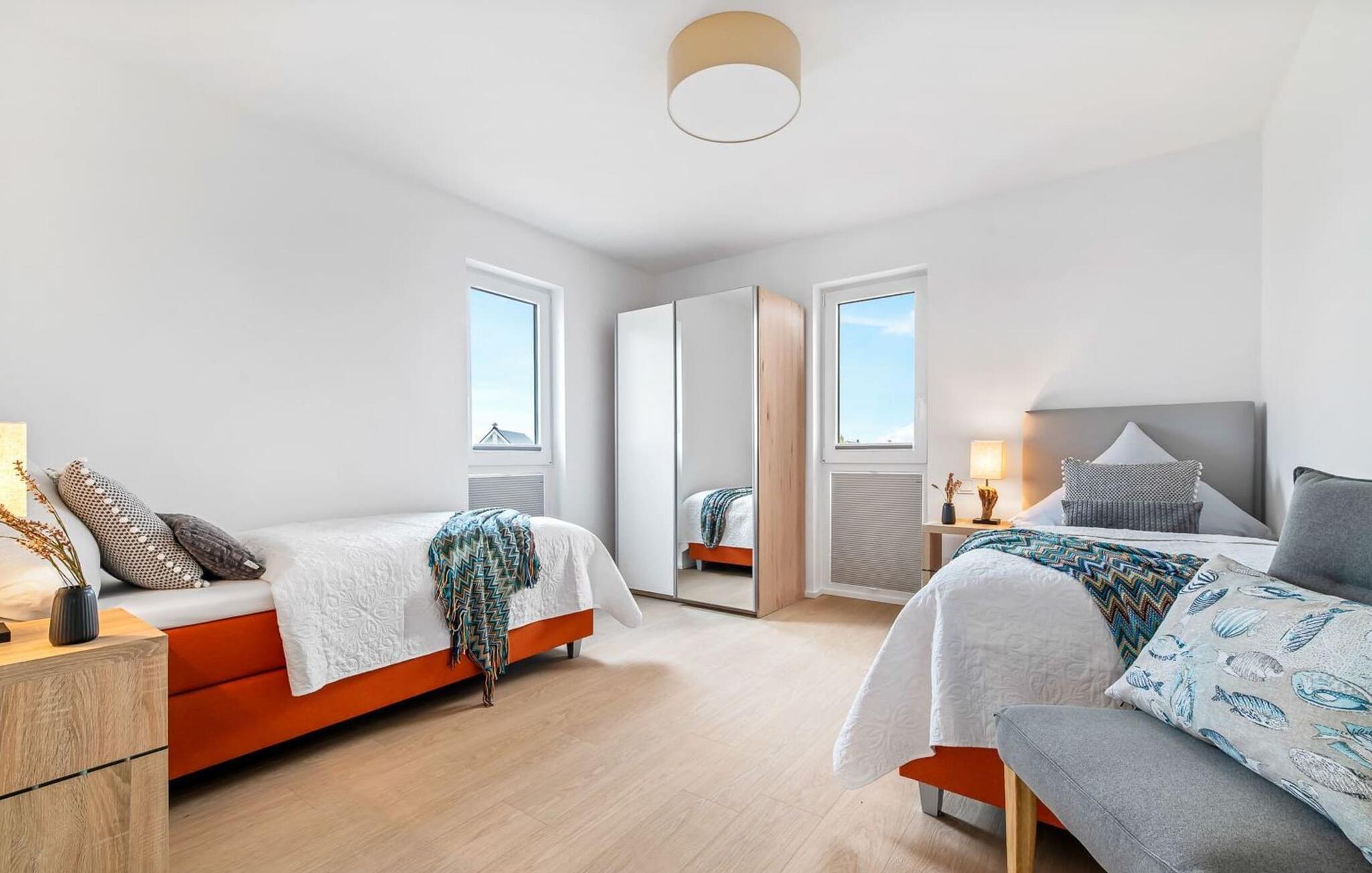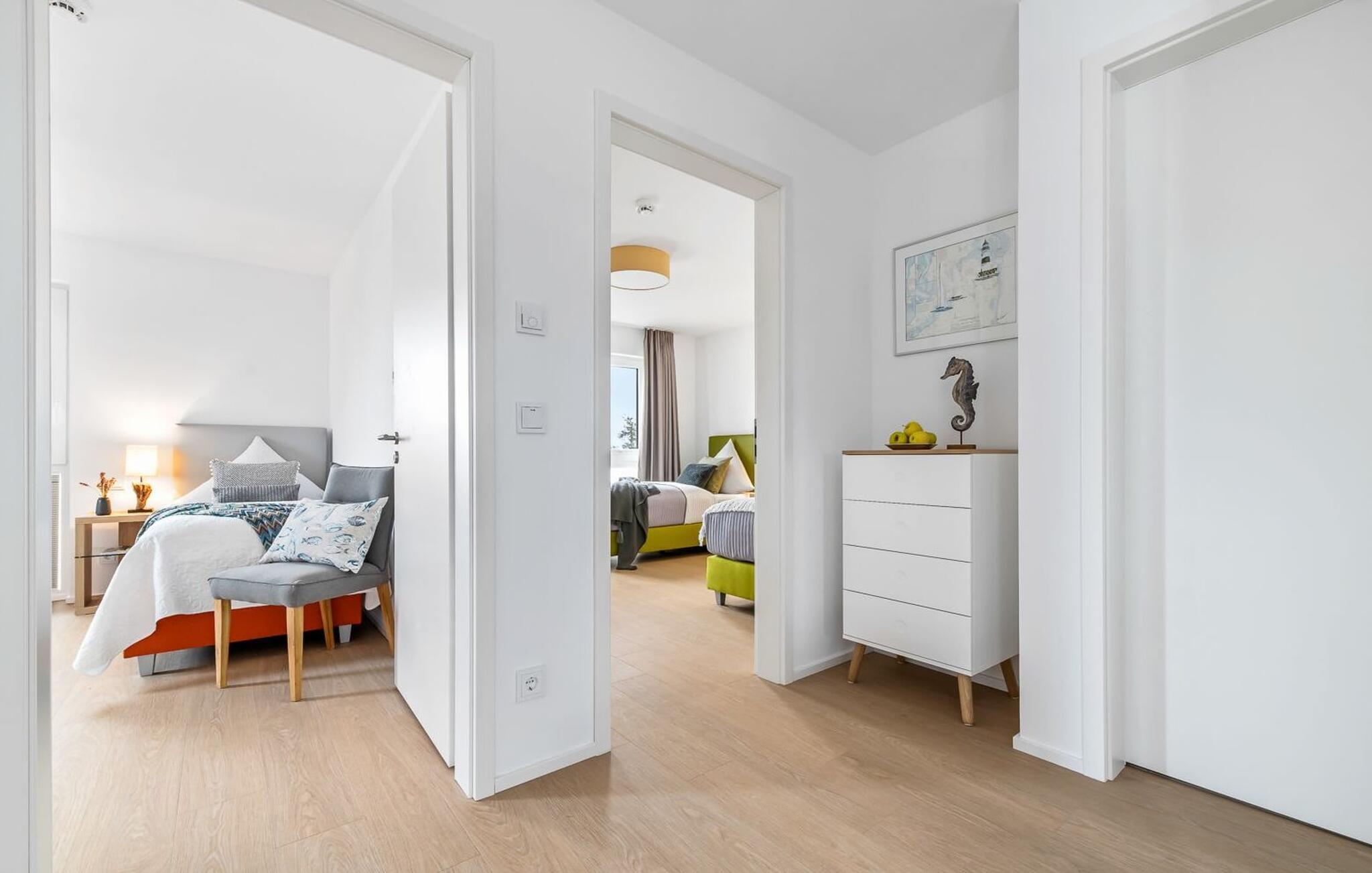Den rummelige maisonette-ferielejlighed Sea Lights til 6 personer i en rolig beliggenhed i udkanten af resortet ligger på første og anden sal og imponerer med sin stilfulde indretning af høj kvalitet. Der blev lagt særlig vægt på kunstfotos og billeder af regionale kunstnere, der afspejler den fortryllende flair i Schlei-regionen. Den smukke Weidefelder sandstrand med kiosk, restaurant og strandstole kan nås til fods på kun 10 minutter og er en attraktiv destination på alle tider af året. I den varme årstid kan I svømme, grave og plaske rundt her. Alle former for vandsport er mulige her. Den maritime eventyr-minigolfbane ligger også i umiddelbar nærhed og glæder både store og små. Når I træder ind i ferielejligheden på øverste etage, begynder opbremsningen fra første øjeblik. I er direkte i lejlighedens afslapningsområde. Der er plads til op til 6 personer i tre soveværelser med komfortable senge. To af soveværelserne er også udstyret med fjernsyn. Uanset hvilket soveværelse I vælger, kan I være sikker på en afslappende søvn. Også på denne etage er jeres helt egen oase af velvære med en regnbruser på gulvniveau og infrarød sauna. Når I ankommer til anden sal, venter den eksklusivt møblerede opholdsstue med maritim flair og gulv til loft vinduer på jer. At slappe af i den hyggelige opholdsstue, nyde den knitrende ild i pejsen eller se tv er ren afslapning og afslapning! Direkte fra stuen kommer man ind på den store østvendte terrasse. Her kan I nyde solopgange og afslappet morgenmad i Østersøens sol og udsigt over havet og engene i det direkte tilstødende naturreservat med Canada og vilde gæs og til sportshavnen på den anden side. Det moderne, åbne køkken med en hyggelig spiseplads er fuldt udstyret og vil få amatørkokkenes hjerter til at slå hurtigere. Her er der plads til kulinariske udflugter. Et andet komplet badeværelse med bruser og badekar afrunder ideelt set hele pakken til en afslappende ferie. Foran ferielejligheden finder I to private parkeringspladser med ladestation til elbiler og cykelskur. Vores foretrukne sted: at nyde den betagende solopgang over ORO tidligt om morgenen... Bemærk venligst: OstseeResort Olpenitz er meget populært, og der bygges fortsat i parken. Ikke desto mindre kan I se frem til en 5-stjernet standard og et førsteklasses ophold. Byggeaktiviteterne kommer ikke til at forstyrre jer på ferien, og derfor gives der ikke yderligere afslag i prisen.