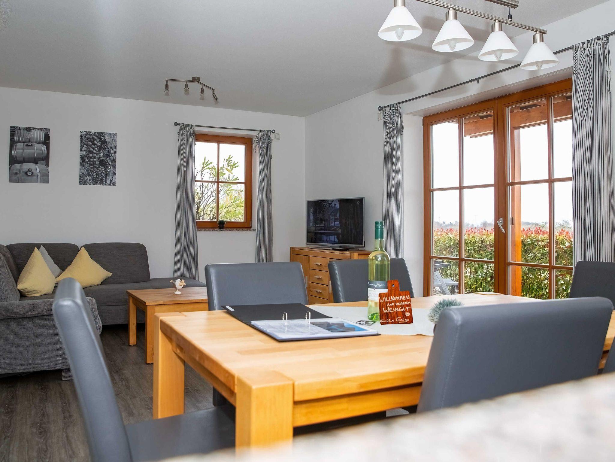 Unsere großzügige Anlage verfügt über einen Spielplatz, einen Grillplatz und über eine Liegewiese. Die Ferienwohnungen auf unserem Weingut sind teils im gemütlichen Landhausstil, teils sehr modern eingerichtet und eigenen sich je nach Größe für 2 bis 5 Personen.