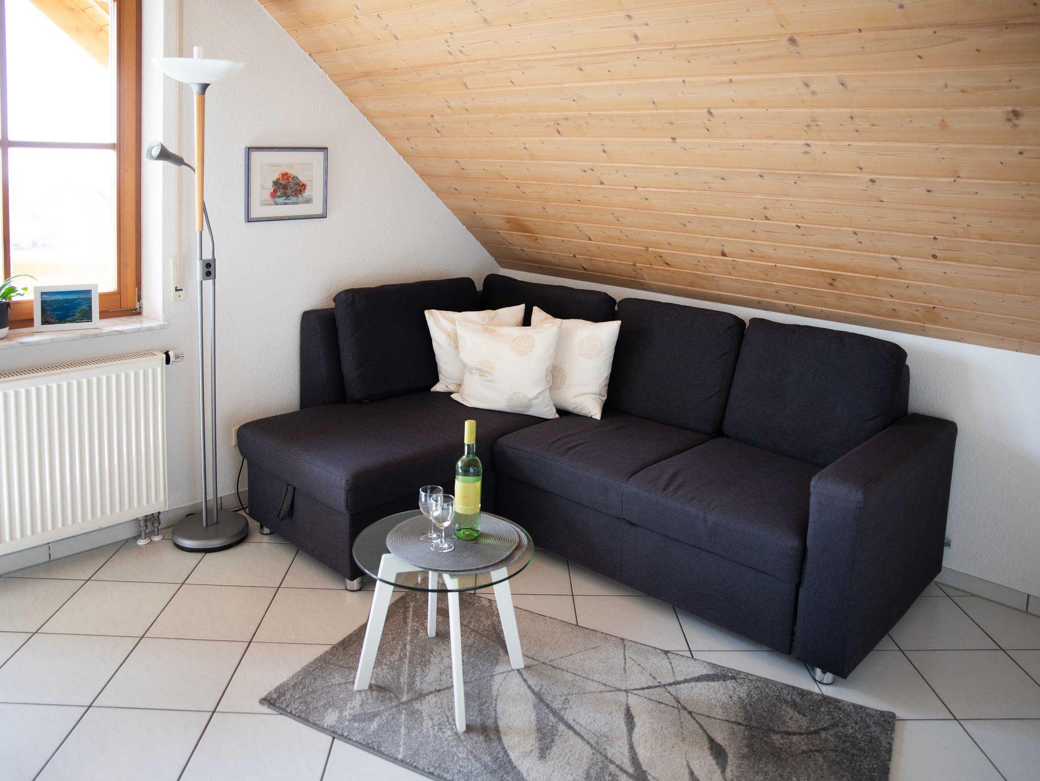 Unsere Ferienwohnung Grauburgunder ist liebevoll ausgestattet und verfügt über einen Wohn- und Essbereich mit komplett ausgestatteter Küche, ein Badezimmer mit Dusche/WC, ein separates Schlafzimmer mit Doppelbett sowie einem Balkon mit direkter See- und Alpensicht.