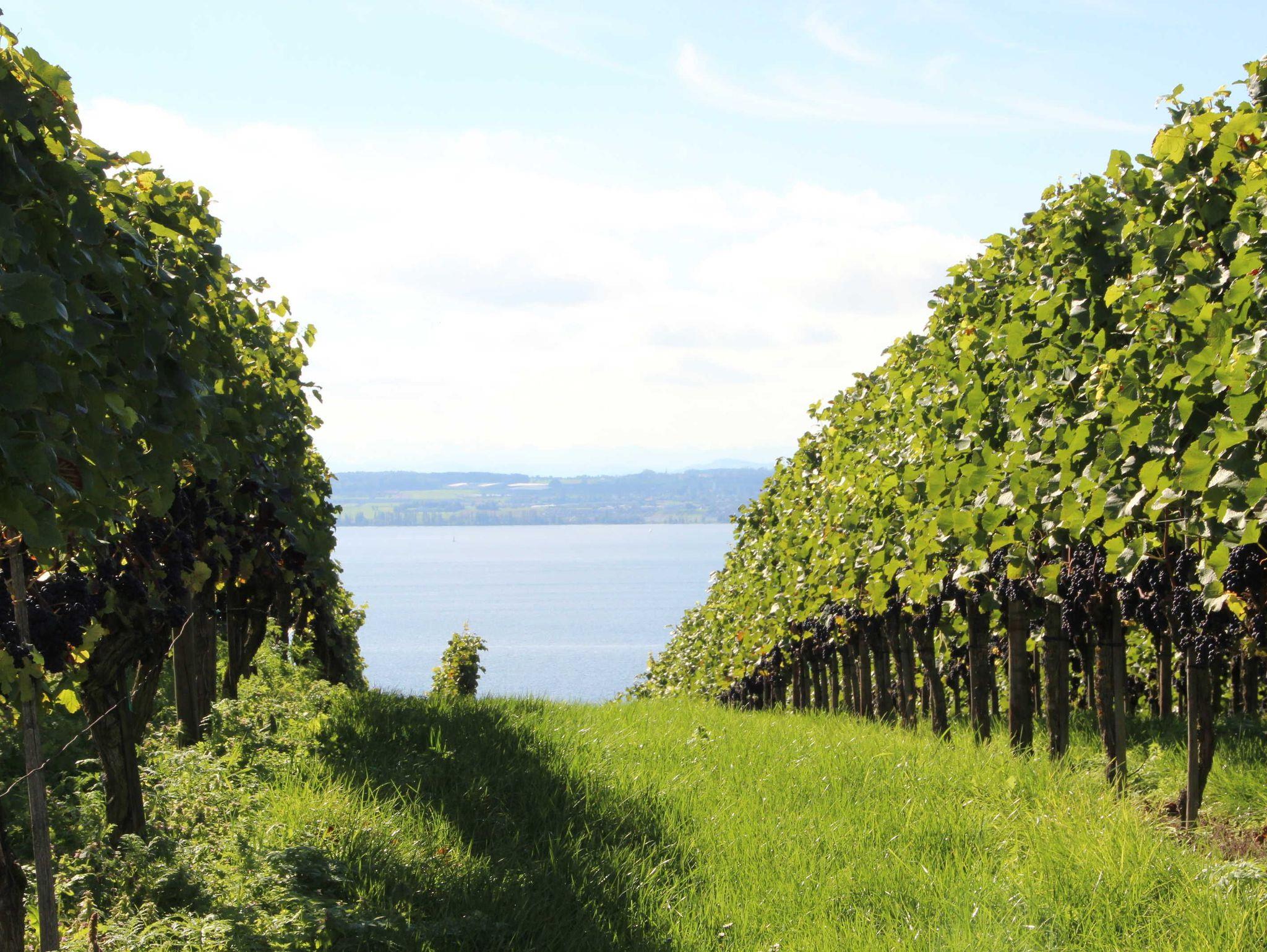 Hier in Riedetsweiler, einem ländlich ruhigen Ortsteil oberhalb von Meersburg, mit traumhaftem Alpenpanorama und perfekter Seesicht, liegt unser Ferien- und Winzerhof mit eigenen Reben, Obstbäumen und einer eigenen Brennerei.