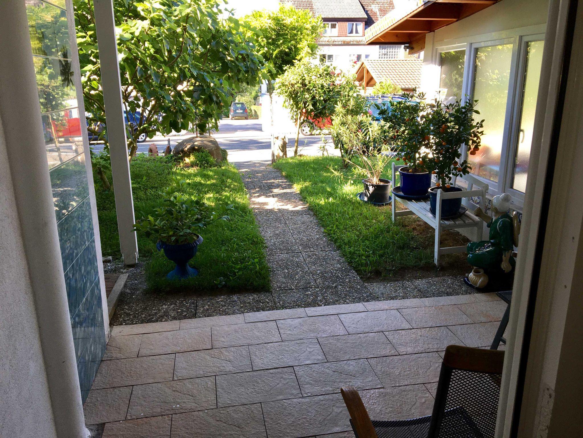 Das Zimmer liegt im Parterre, Süd Lage, große überdachte Terrasse im Garten. Das Zimmer ist ca 19 Quadratmeter groß, Fliesenboden, Kühlschrank, Geschirrschrank, Kaffeemaschine, Wasserkocher, eigenes Bad mit Du/WC.