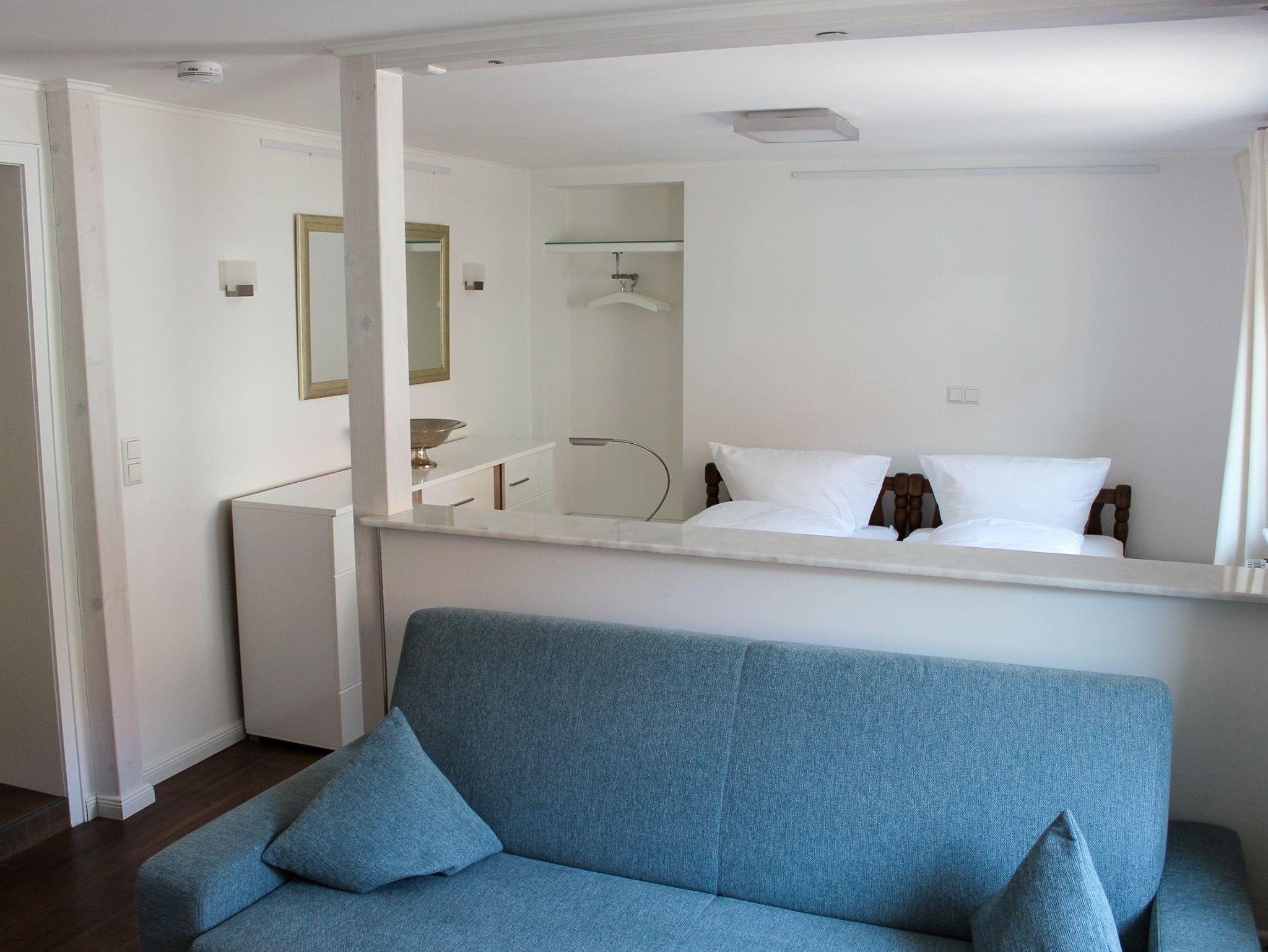 Unser Zimmer 4 verfügt über ein Doppelbett. Aus dem 2. OG haben Sie einen Blick zur Meersburg. Das Zimmer verfügt über eine gemütliche Couch, einen Flachbild-TV, sowie ein Bad mit Dusche und WC.