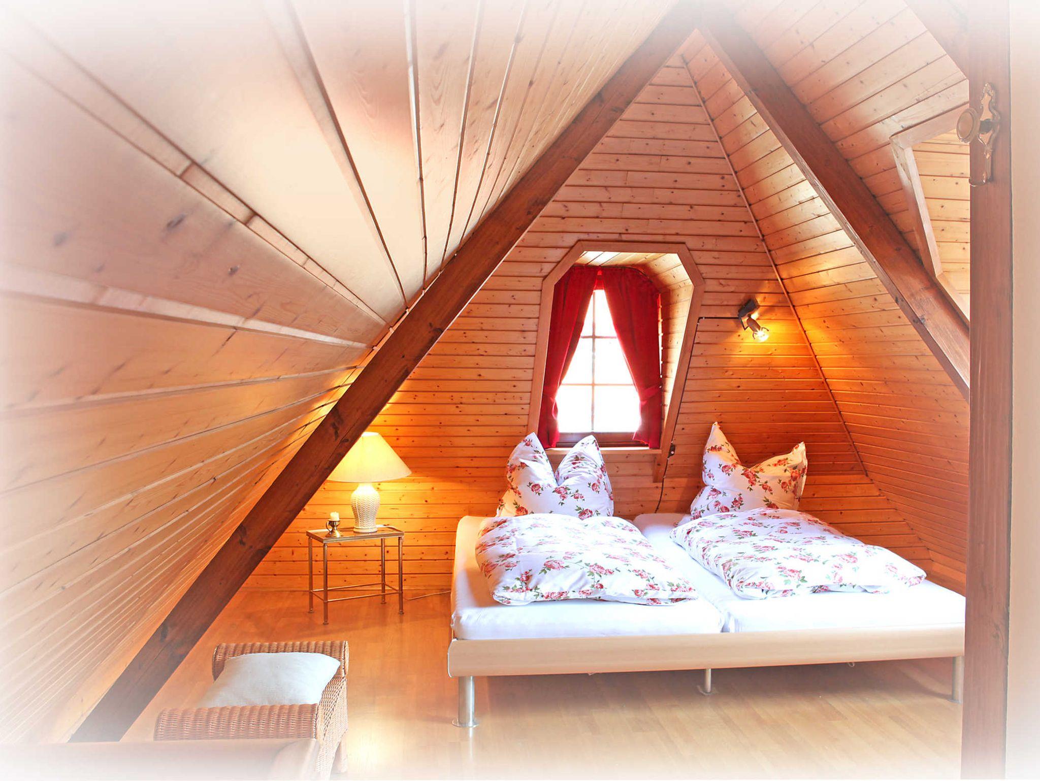 Die Wohnung B erstreckt sich über das 2. Obergeschoss sowie das Dachgeschoss des Hauses. Sie besteht aus Wohnzimmer mit angeschlossenem großzügigen Küchenbereich, Schlafzimmer, Bad und getrenntem WC. Ein weiterer geräumiger Wohnraum mit eigenem Schlafgemach befindet sich im Dachgeschoss des Hauses. Dort ist auch der Fernseh-Bereich mit Sofa und Doppelbettcouch angesiedelt.