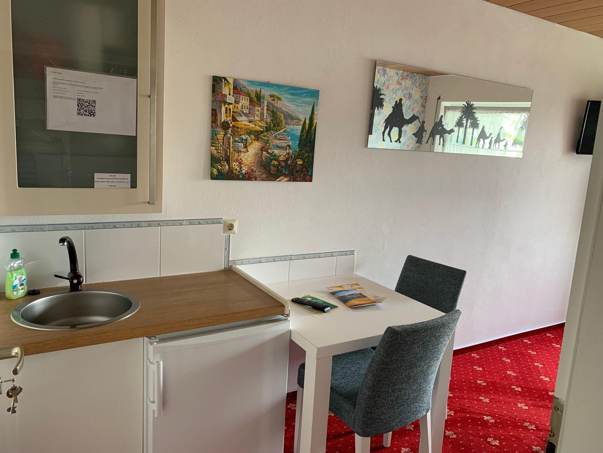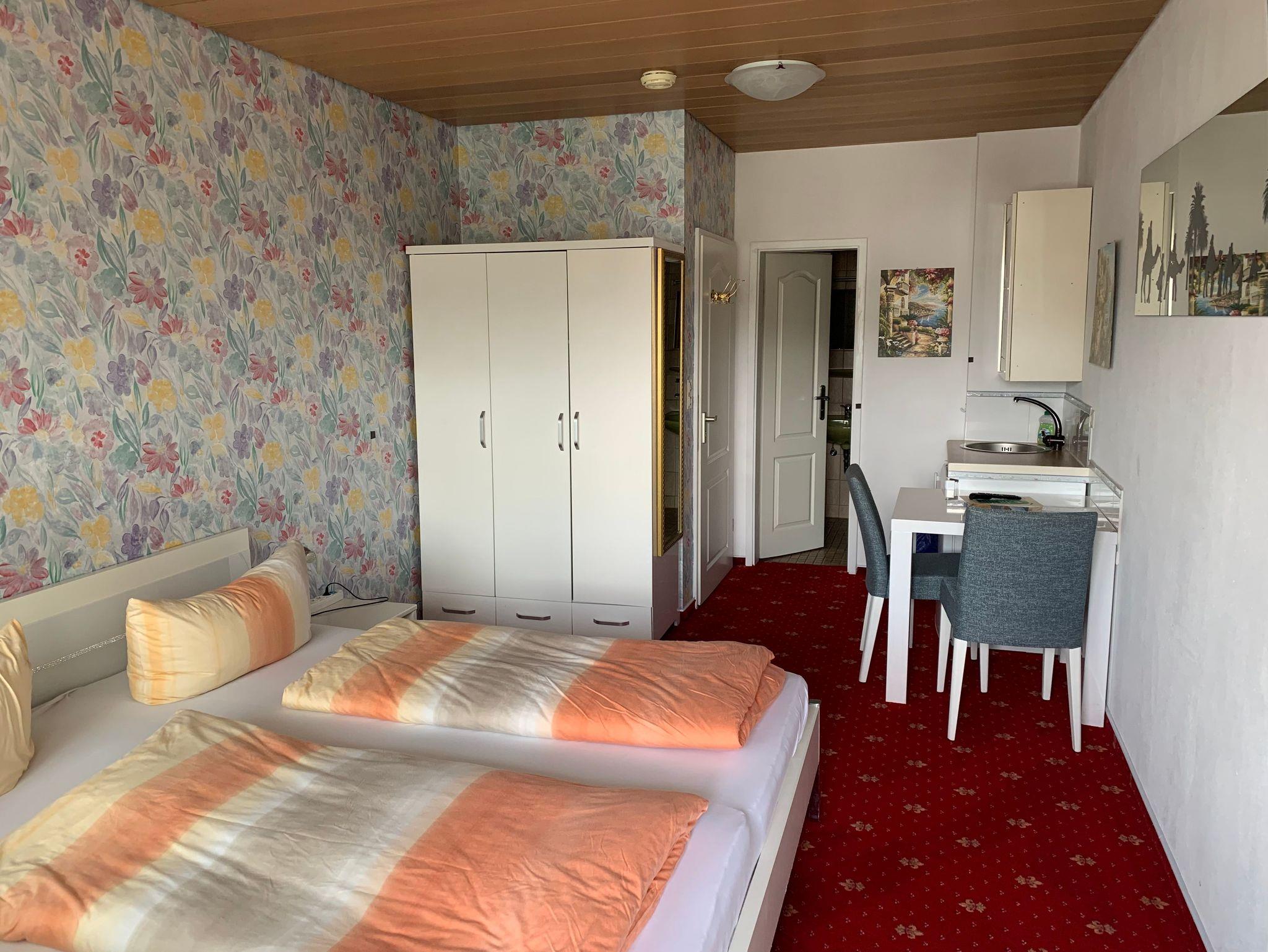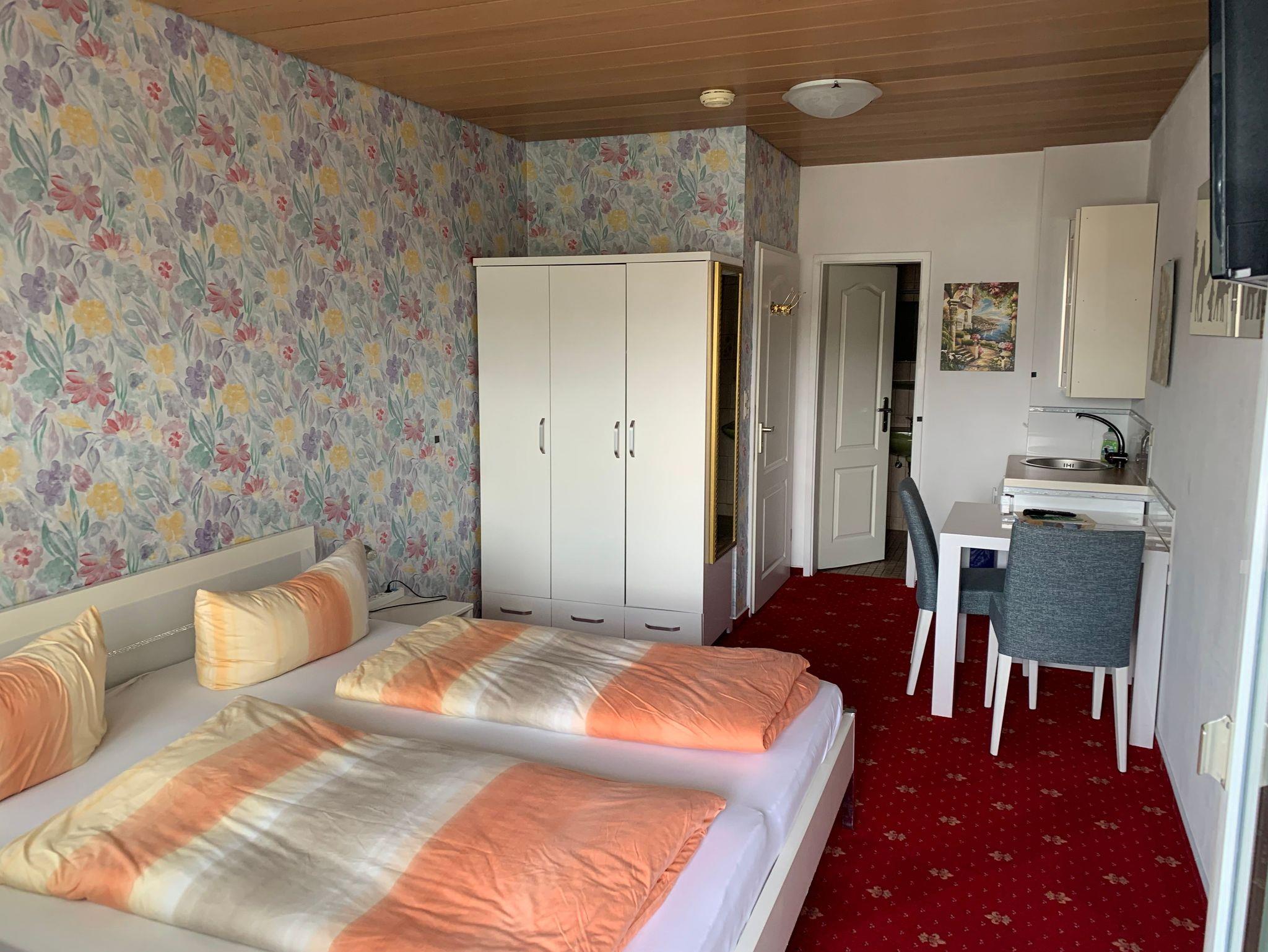 Ruhige Pension in sonniger Lage. In Gartenanlage ohne Verkehrslärm. Vier Gehminuten zur Altstadt, kostenlose Parkplätze und abschließbare Fahrradgarage direkt am Haus, Doppelzimmer mit Kühlschrank, Geschirrschrank, DU/WC, TV, Tresor, Wlan und zum größten Teil mit Balkon oder Terrasse. Zimmer ohne Frühstück, Frühstücksmöglichkeiten in der nahen Altstadt.