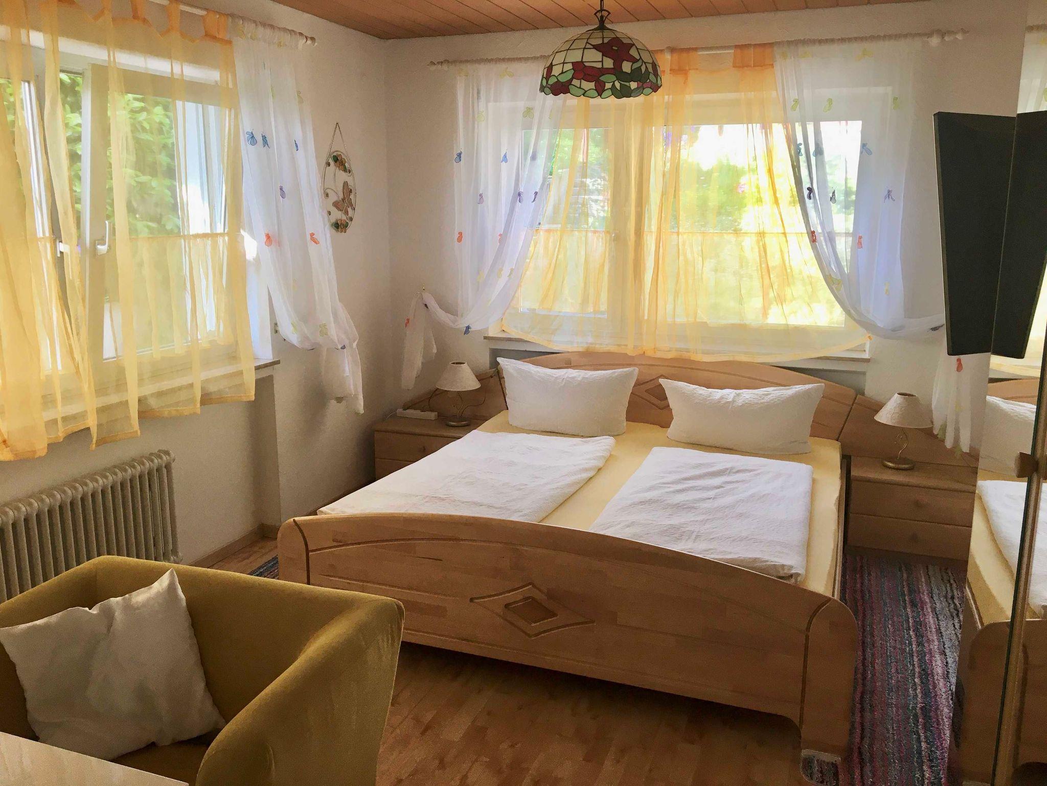 Ruhige Pension in sonniger Lage. In Gartenanlage ohne Verkehrslärm. Vier Gehminuten zur Altstadt, kostenlose Parkplätze und abschließbare Fahrradgarage direkt am Haus, Doppelzimmer mit Kühlschrank, Geschirrschrank, DU/WC, TV, Tresor, Wlan und zum größten Teil mit Balkon oder Terrasse. Zimmer ohne Frühstück, Frühstücksmöglichkeiten in der nahen Altstadt.