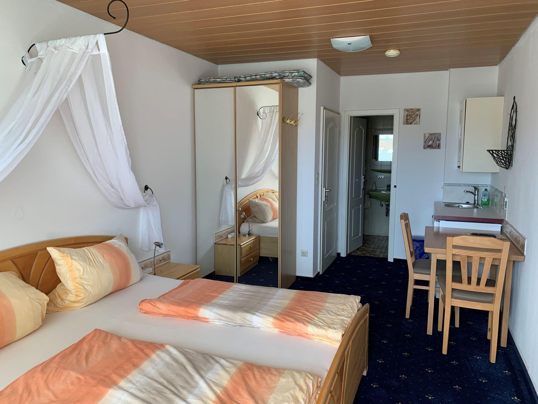 Ruhige Pension in sonniger Lage. In Gartenanlage ohne Verkehrslärm. Vier Gehminuten zur Altstadt, kostenlose Parkplätze und abschließbare Fahrradgarage direkt am Haus, Doppelzimmer mit Kühlschrank, Geschirrschrank, DU/WC, TV, Tresor, Wlan und zum größten Teil mit Balkon oder Terrasse. Zimmer ohne Frühstück, Frühstücksmöglichkeiten in der nahen Altstadt.
