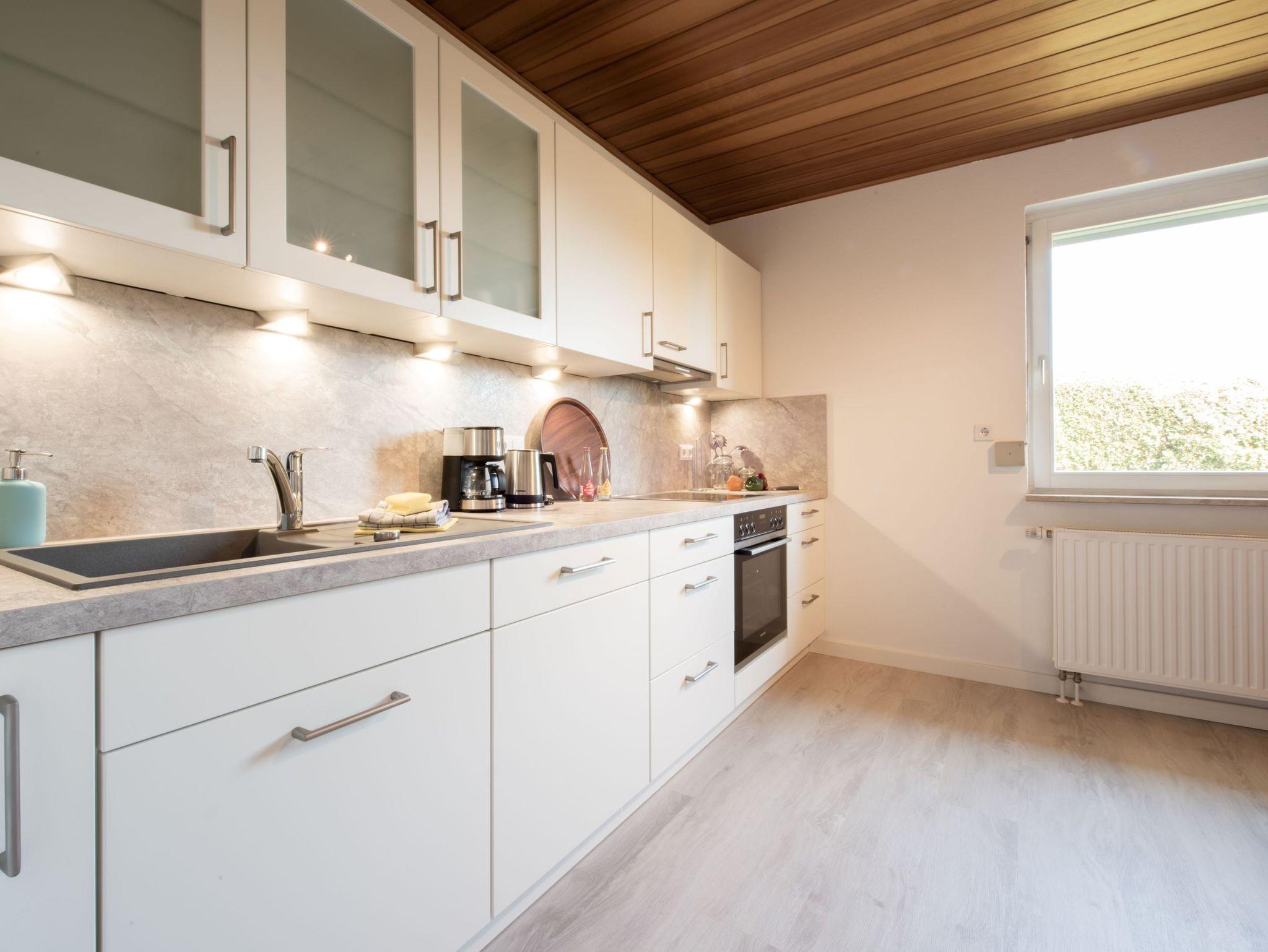 So betreten Sie einen hell geräumig großen Flur, ausgestattet mit Garderobe, großem Garderobenspiegel und Sitzgelegenheit. Auf der rechten Seite des Flures befindet sich das südlich ausgerichtete Schlafzimmer. Dieses bietet einen wunderschönen Ausblick auf den Bodensee und die Alpen. Das Schlafzimmer ist ausgestattet mit einem Doppelbett (180x200 cm) und einem Kleiderschrank. Das Doppelbett kann getrennt werden, so dass zwei Einzelbetten mit einer Größe von 90x200 cm entstehen. Gegenüber dem Eingang treten Sie in das hell und dezent eingerichtete Wohnzimmer. Es befindet sich auf der Südseite, so dass sich hier die Abende mit See- und Alpenblick erholsam ausklingen lassen. Es ist ausgestattet mit Fernseher, Radio, zwei Sofabetten (90x200 cm), einem Beistelltisch und einer gemütlichen Leseecke. Links von dem Wohnzimmer erwartet Sie eine neue, vollausgestattete und modern eingerichtete Küche. Diese beinhaltet eine Sitzgruppe, große Kühl-Gefrierkombination, Spülmaschine, Ceran-Herd, Backofen sowie Filterkaffeemaschine, Toaster und Wasserkocher. Das zweite Schlafzimmer befindet sich auf der Nordseite des Hauses. Dieses großzügige Zimmer bietet viel Stauraum und ist mit zwei Betten (90x200) und einem Kleiderschrank ausgestattet. Gegenüber dem Schlafzimmer befindet sich das WC mit kleinem Fenster, Sichtschutz und separatem Waschbecken. Gleich nebenan folgt das original gehaltene Badezimmer, ausgestattet mit großem Milchglasfenster, Dusche, Badewanne, Waschbecken, Spiegelschrank und Haartrockner. Im Außenbereich auf der Nordwestseite des Hauses erwartet Sie eine mediterran und liebevoll gestaltete Steinterrasse, umgeben von Blumen und Bäumen. Genießen Sie hier die Sonne und den Blick auf den Bodensee. Eine zweite kleine Sitzgelegenheit befindet sich auf der Südseite des Hauses.