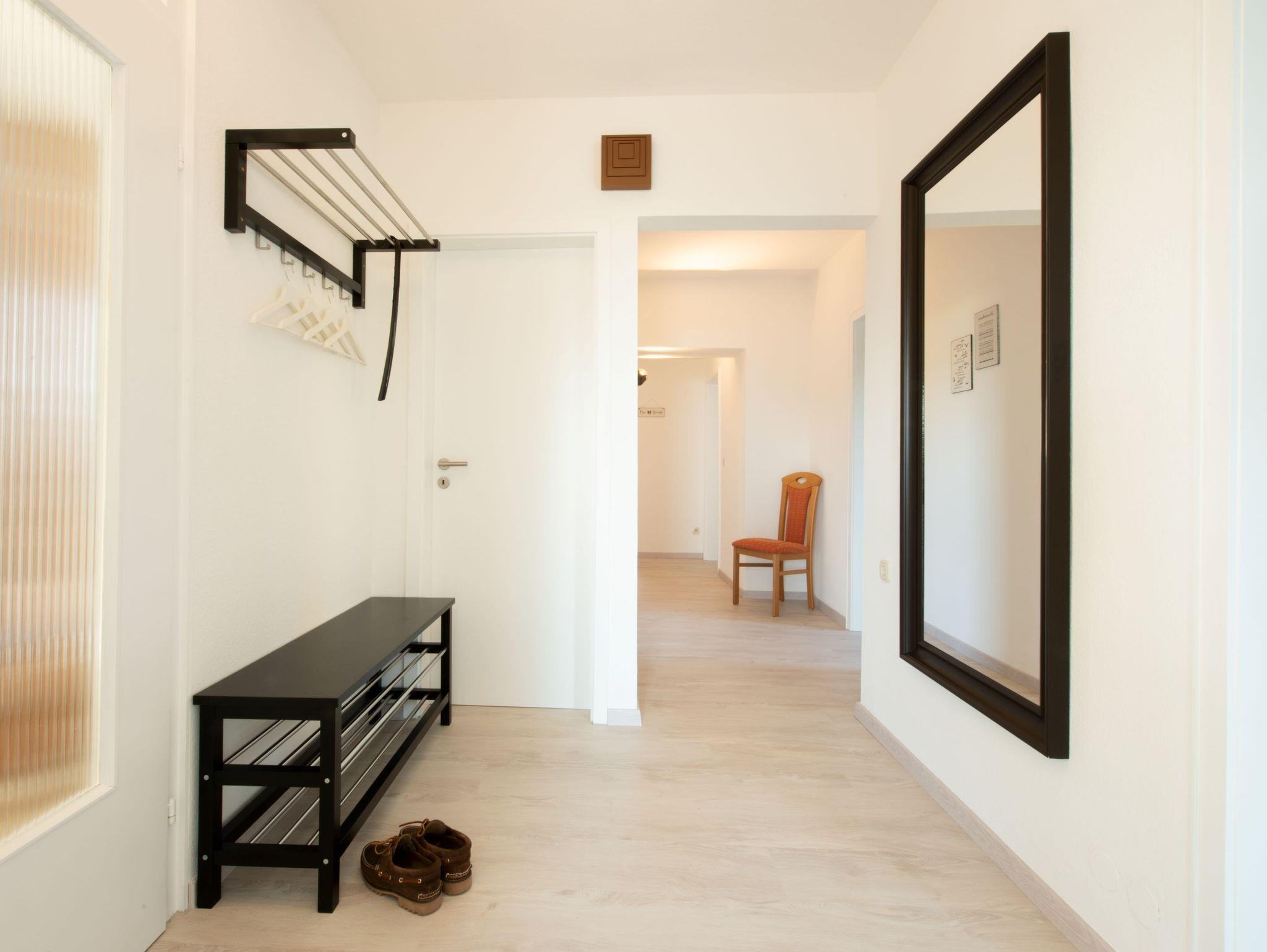 Von Ihrem privaten Stellplatz aus gehen Sie durch den liebevoll angelegten Garten vorbei am Gartenhäuschen auf das Einfamilienhaus zu, in der sich direkt im Erdgeschoss Ihre Ferienwohnung befindet. Die Ferienwohnung besticht durch ihre neu eingerichteten und großräumigen Zimmer. Farbakzente geben der Wohnung ihre Gemütlichkeit. Alle Zimmer sind mit Rollläden und neuwertigen Schallschutzfenstern ausgestattet. Die Hanglage bietet eine perfekte Sicht über die Bäume, Straße und das Wohngebiet hinweg. Für die Fahrräder steht ein Abstellplatz im Gartenhäuschen zur Verfügung.
