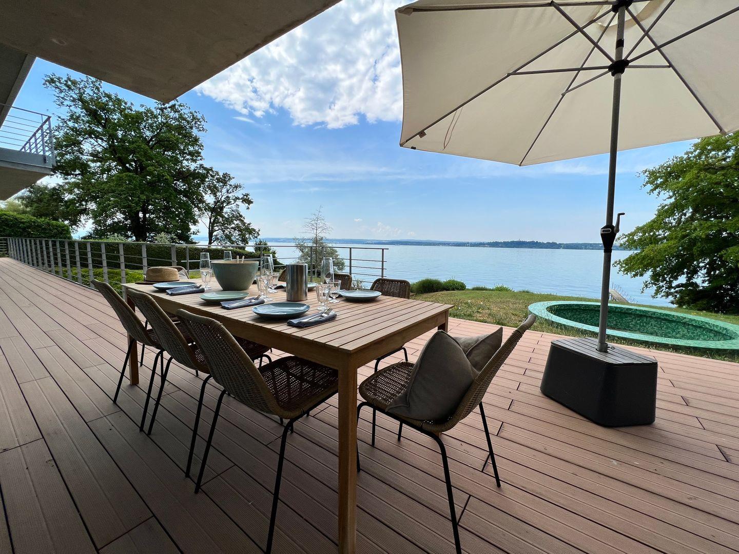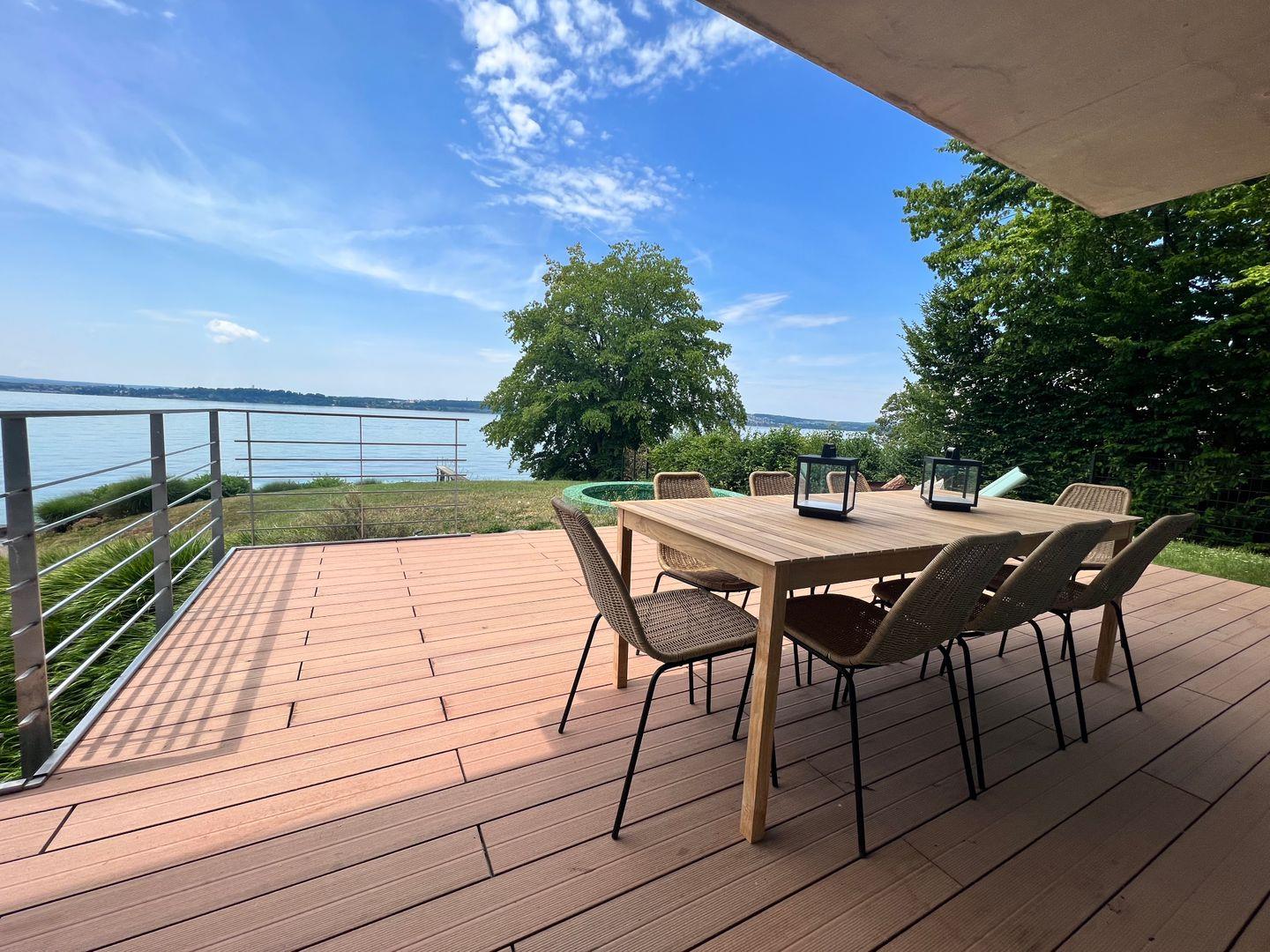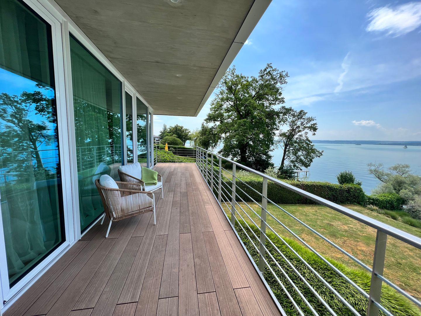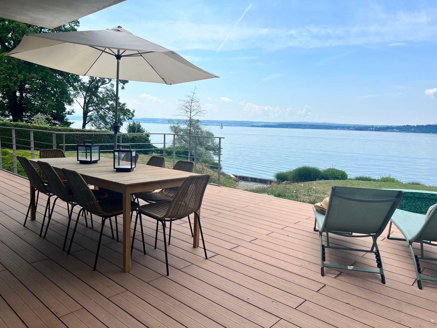 Ein familienfreundliches Luxus-Hideaway am Bodensee mit privatem Badesteg und Seezugang: Verbringen Sie eine traumhafte Auszeit in besonderem Ambiente und genießen Sie ein Urlaubserlebnis der Extraklasse. Die Villa am See befindet sich auf einem großzügigen Grundstück in Alleinlage direkt am Bodenseeufer und verfügt über Schlafplätze für bis zu 12 Personen. Das Luxusferienhaus bietet mit über 300 qm Wohnfläche und mehreren Terrassen rund um das Haus einen atemberaubenden Rundblick auf die harmonische Bodenseelandschaft.