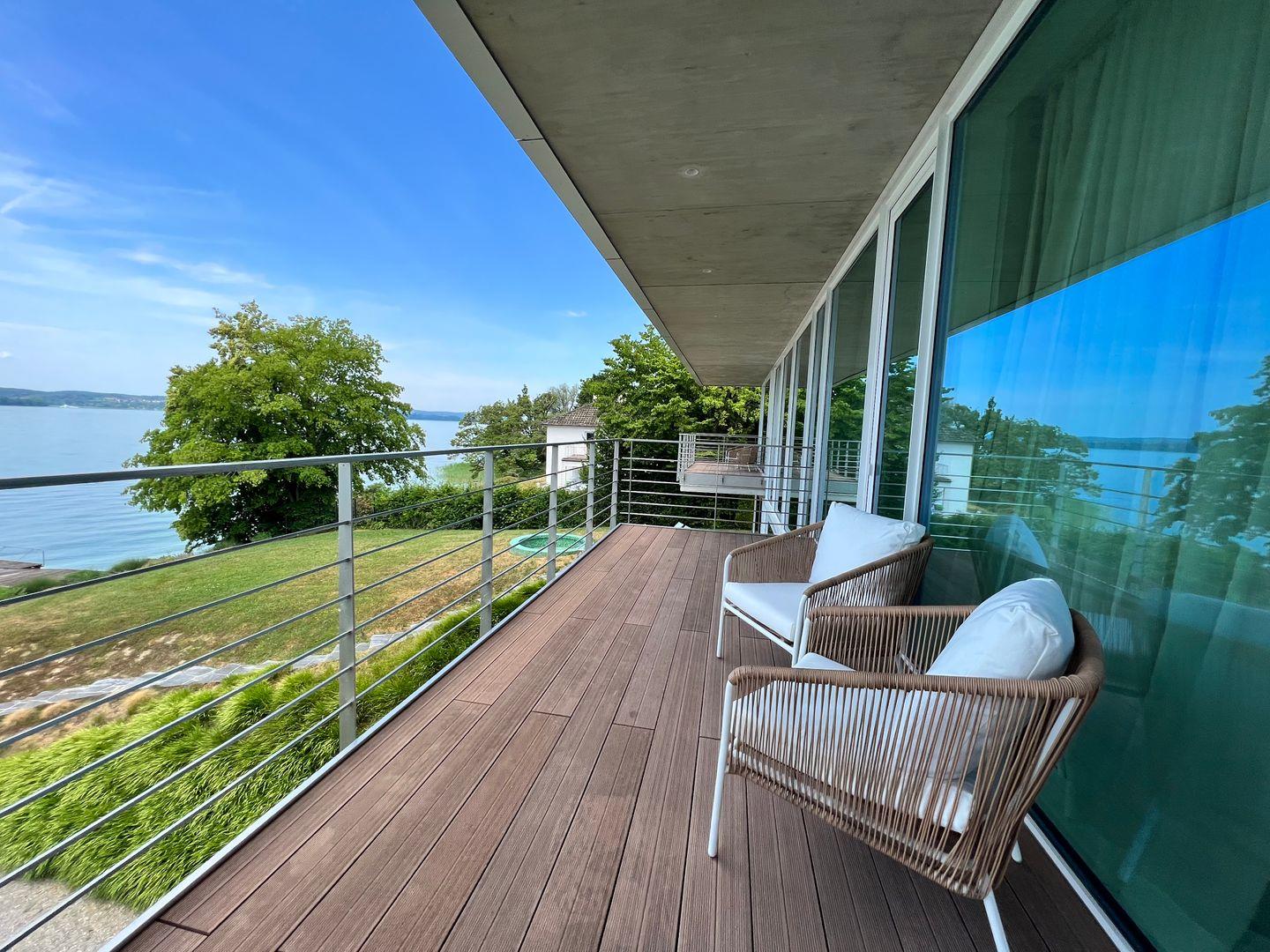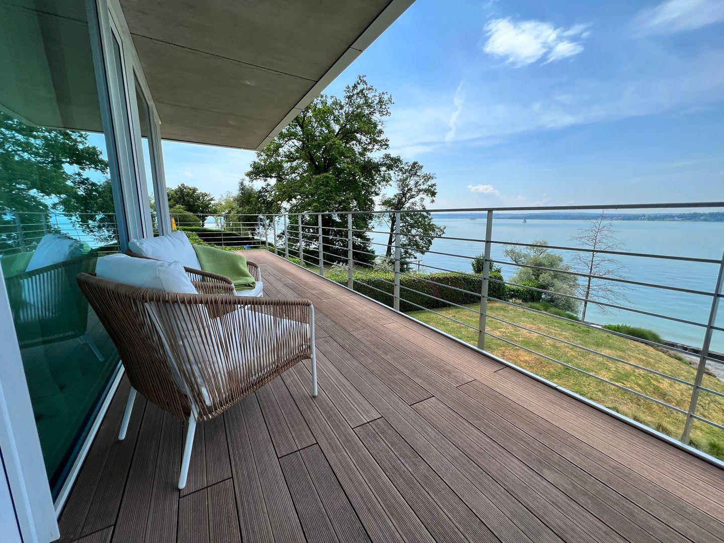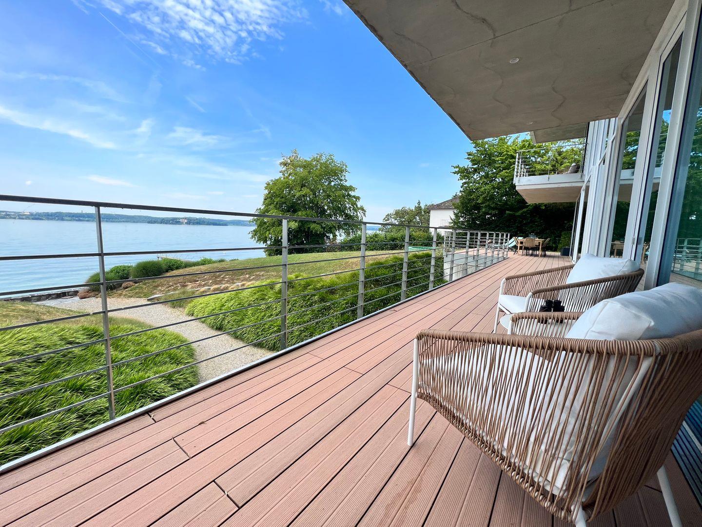 Ein familienfreundliches Luxus-Hideaway am Bodensee mit privatem Badesteg und Seezugang: Verbringen Sie eine traumhafte Auszeit in besonderem Ambiente und genießen Sie ein Urlaubserlebnis der Extraklasse. Die Villa am See befindet sich auf einem großzügigen Grundstück in Alleinlage direkt am Bodenseeufer und verfügt über Schlafplätze für bis zu 12 Personen. Das Luxusferienhaus bietet mit über 300 qm Wohnfläche und mehreren Terrassen rund um das Haus einen atemberaubenden Rundblick auf die harmonische Bodenseelandschaft.