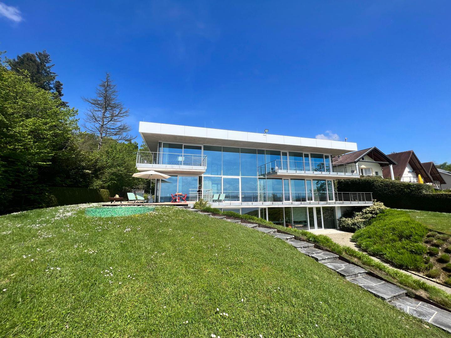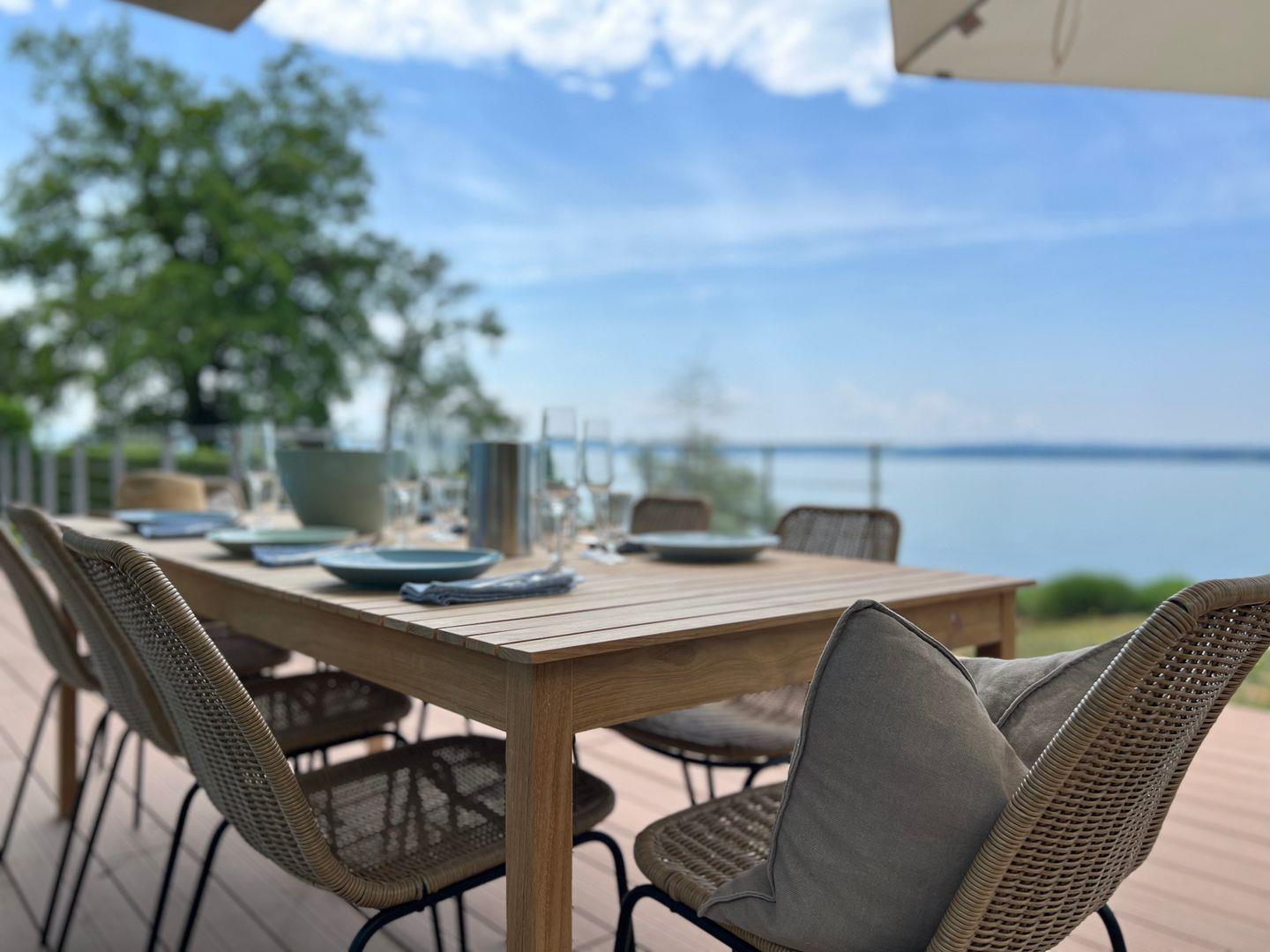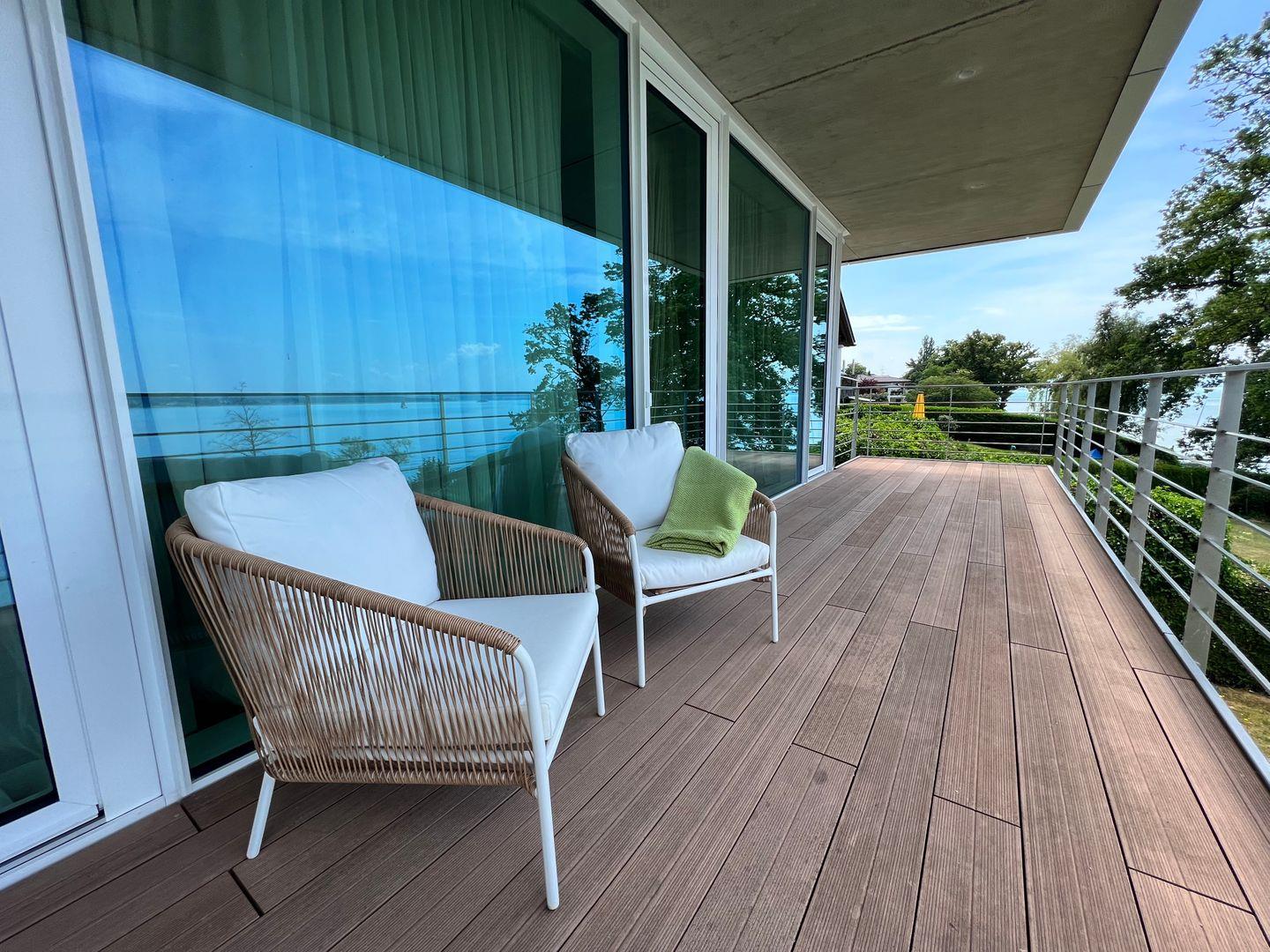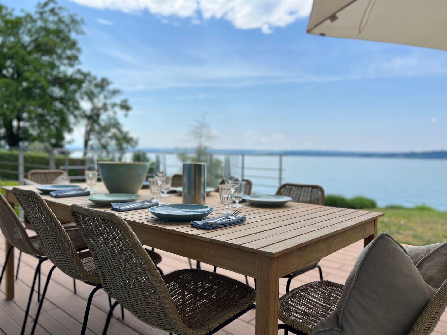 Ein familienfreundliches Luxus-Hideaway am Bodensee mit privatem Badesteg und Seezugang: Verbringen Sie eine traumhafte Auszeit in besonderem Ambiente und genießen Sie ein Urlaubserlebnis der Extraklasse. Die Villa am See befindet sich auf einem großzügigen Grundstück in Alleinlage direkt am Bodenseeufer und verfügt über Schlafplätze für bis zu 12 Personen. Das Luxusferienhaus bietet mit über 300 qm Wohnfläche und mehreren Terrassen rund um das Haus einen atemberaubenden Rundblick auf die harmonische Bodenseelandschaft.