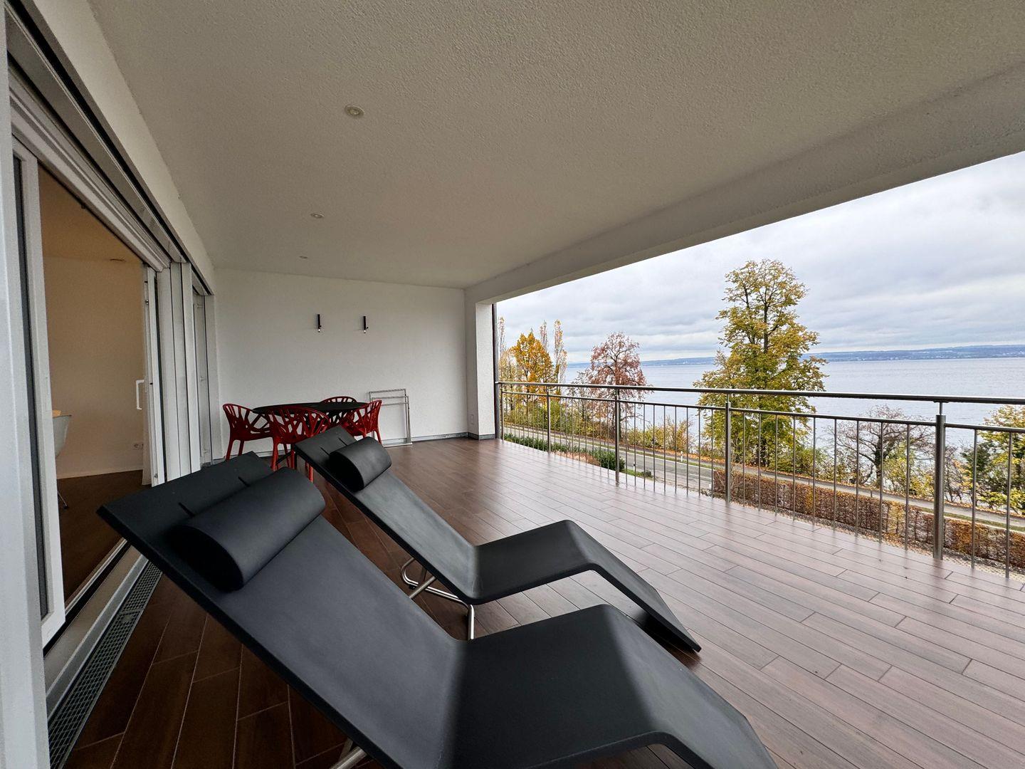 Das Stella Regia Apartment 3 bietet Ihnen auf 65 m² Wohnfläche ein modernes und komfortables Ambiente in der reizvollen Region Meersburg. Die Ferienwohnung liegt im 1. Stock eines freistehenden Hauses aus dem Baujahr 2016 und ist bequem per Aufzug erreichbar. Sie befindet sich in ländlicher Umgebung, innerhalb eines Dorfes, am See und bietet einen eindrucksvollen, außergewöhnlich guten Seeblick. Die Nähe zum Bodensee – an den der Seezugang in nur etwa 30 Metern Entfernung erinnert – sowie zum Zentrum von Meersburg (500 Meter) lädt Sie zu ausgedehnten Spaziergängen und vielseitigen Freizeitaktivitäten ein. Der nächste Strand ist in circa 400 Metern fußläufig erreichbar.