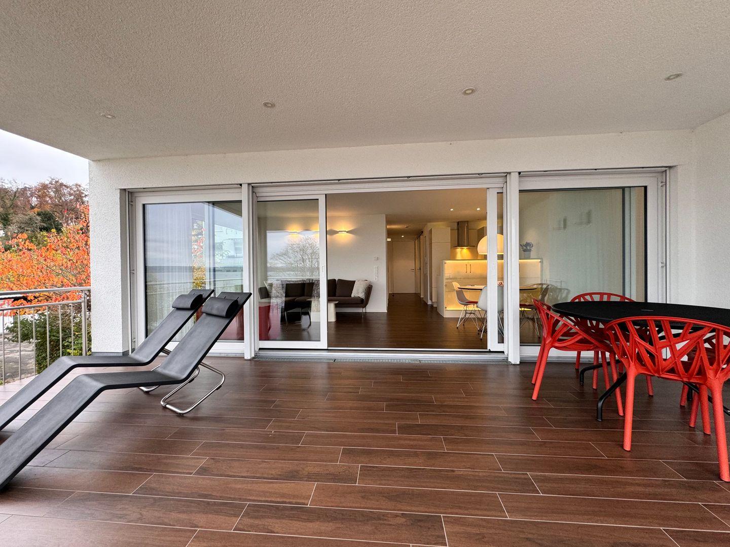 Das Stella Regia Apartment 3 in Meersburg bietet auf 65 m² Platz für bis zu 4 Personen und überzeugt mit zwei Schlafzimmern, moderner Ausstattung, offen gestalteter Küche, Fußbodenheizung, WLAN sowie einem überdachten, geschlossenen Balkon (25 m²) mit außergewöhnlich gutem Seeblick. Ein Privatparkplatz direkt am Haus sowie Aufzug und gemeinschaftlich nutzbare Waschmaschine und Trockner sorgen für Komfort.