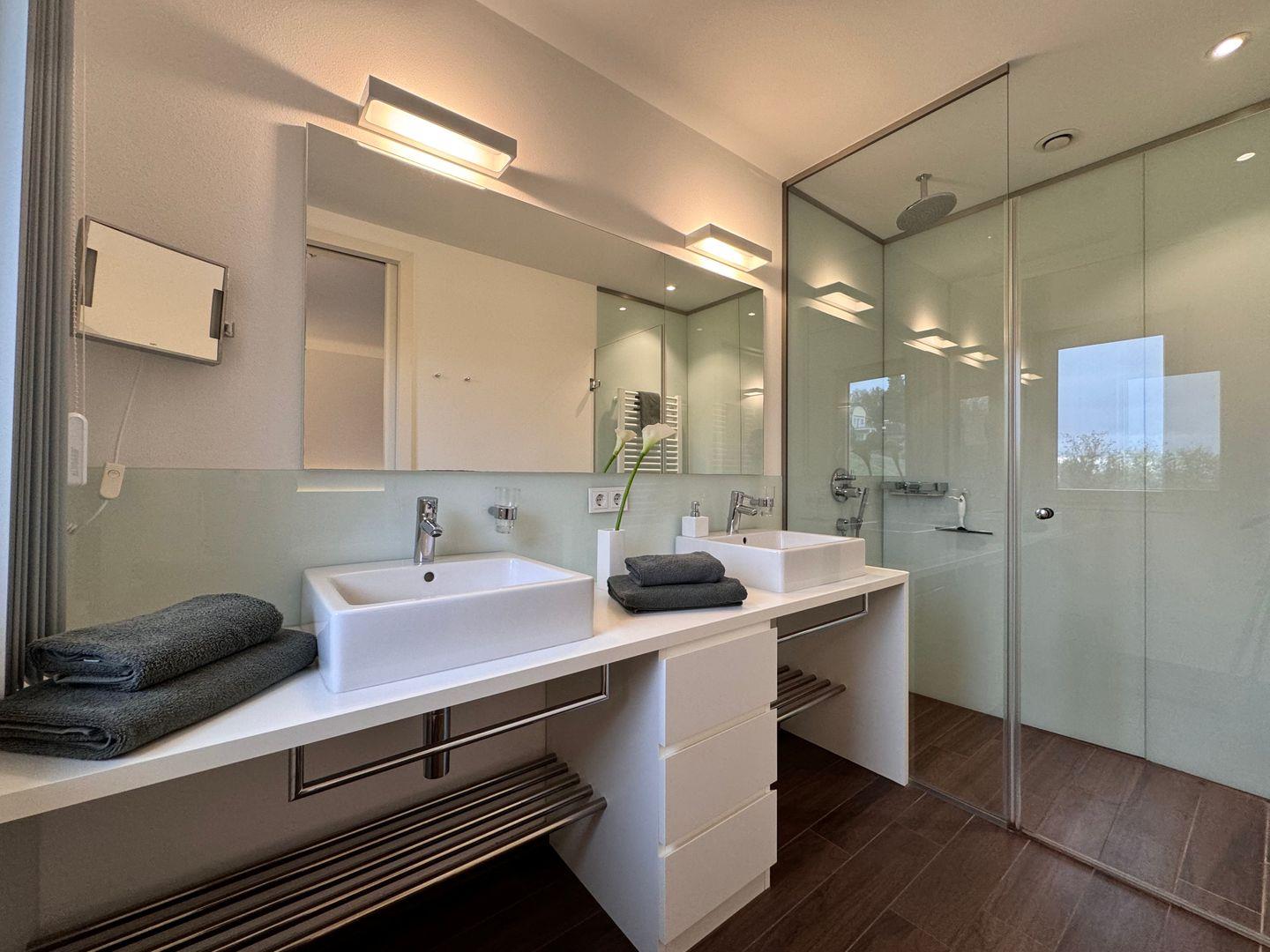 Für besonderen Komfort sorgen eine Fußbodenheizung sowie eine zuverlässige Zentralheizung in allen Räumen. Die durchdachte Raumaufteilung wird durch ein modernes Bad ergänzt, das mit einer bodengleichen Dusche, Waschbecken, Spiegel, Kosmetikspiegel, Haartrockner und WC ein angenehmes Ambiente bietet. Zusätzlich gibt es ein Gäste-WC. Auch eine gemeinschaftlich nutzbare Waschmaschine und ein Trockner sowie ein Wäscheständer stehen Ihnen zur Verfügung.