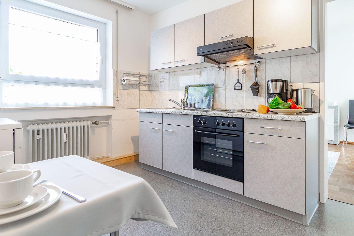 Egal, ob Sie zu zweit Wert auf viel Platz legen oder Ihre 6-köpfige Familie ausreichend Raum für jeden wünscht, in der Ferienwohnung Silvanerlaube A finden Sie ihr Urlaubsdomizil für entspannte Tage. Die Küche und das Esszimmer bieten genug Platz, um auch gerne Zuhause zu kochen. Vielleicht einen Bodensee-Fisch vom Markt? Auf dem großen Eckbalkon können Sie dem Lauf der Sonne vom Morgen bis zum Nachmittag folgen. Die Wohnung ist hochwertig, teilweise mit wertvollen Antik-Möbeln und Parkettboden ausgestattet. Ein Schlafzimmer ist mit einem Doppelbett ausgestattet, im zweiten Schlafzimmer befindet sich ein kleines Doppelbett (1,40 x 2,20 m) und im drittel Schlafzimmer stehen 2 Einzelbetten.