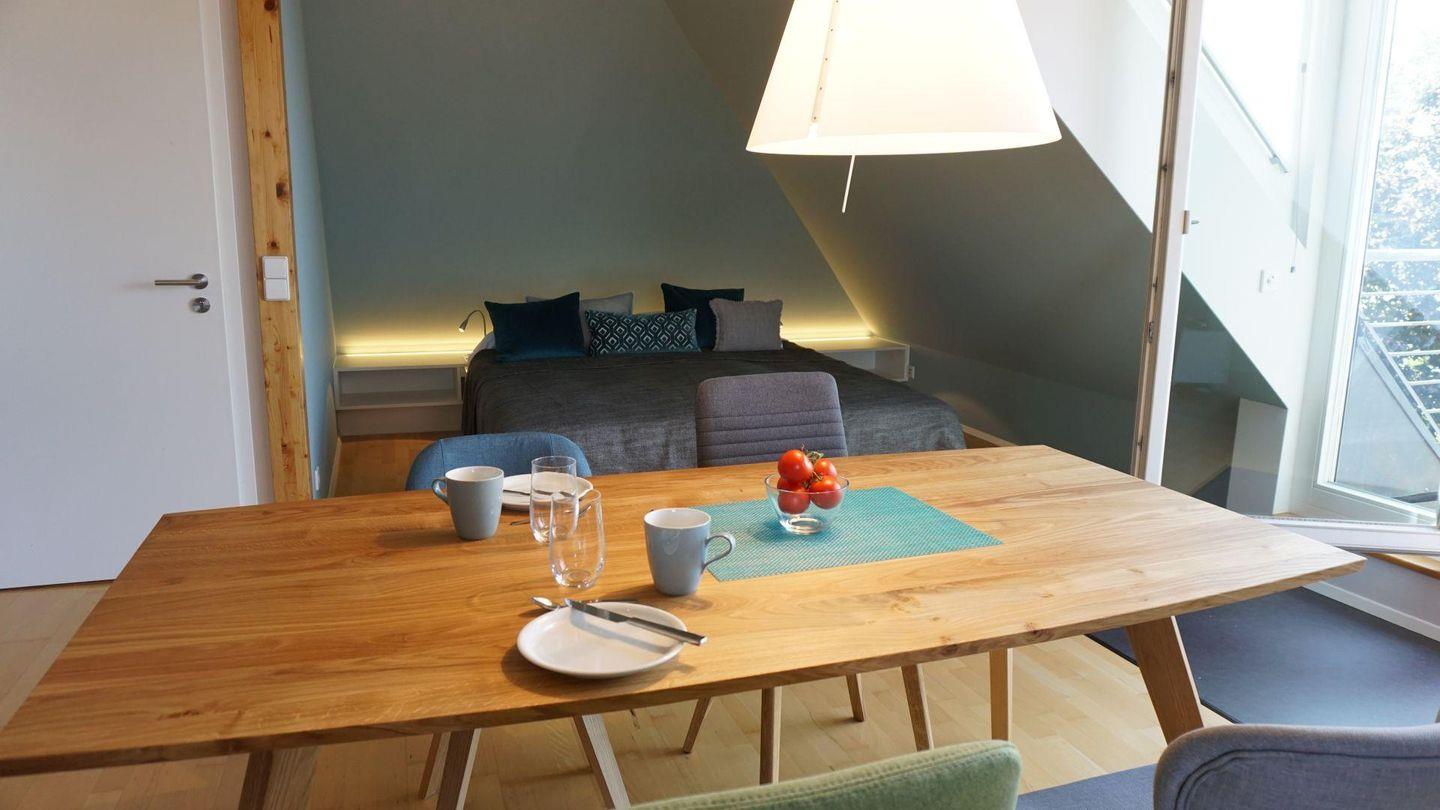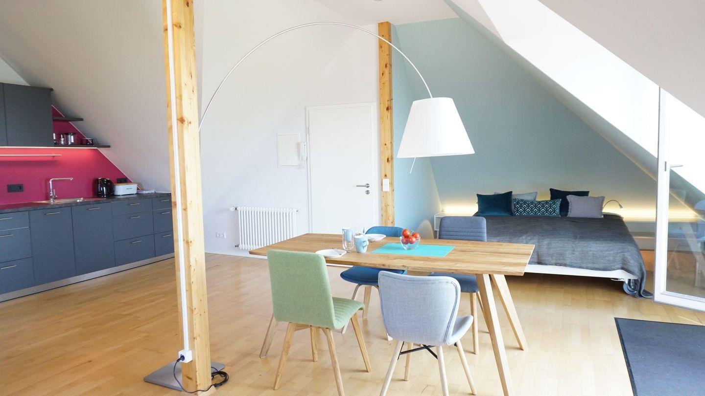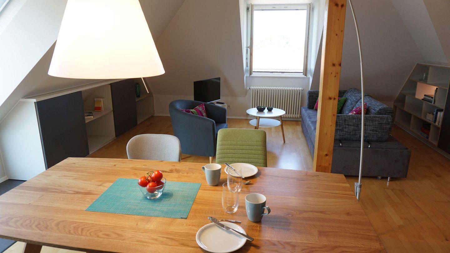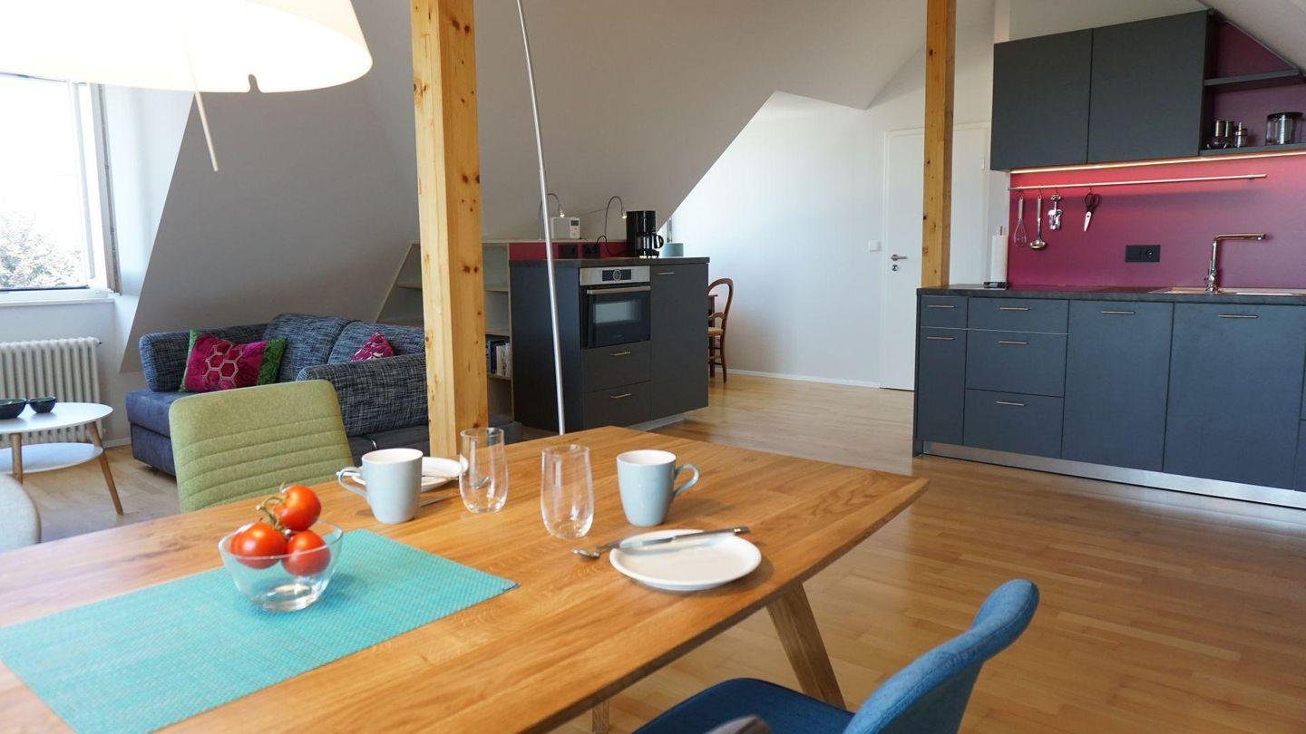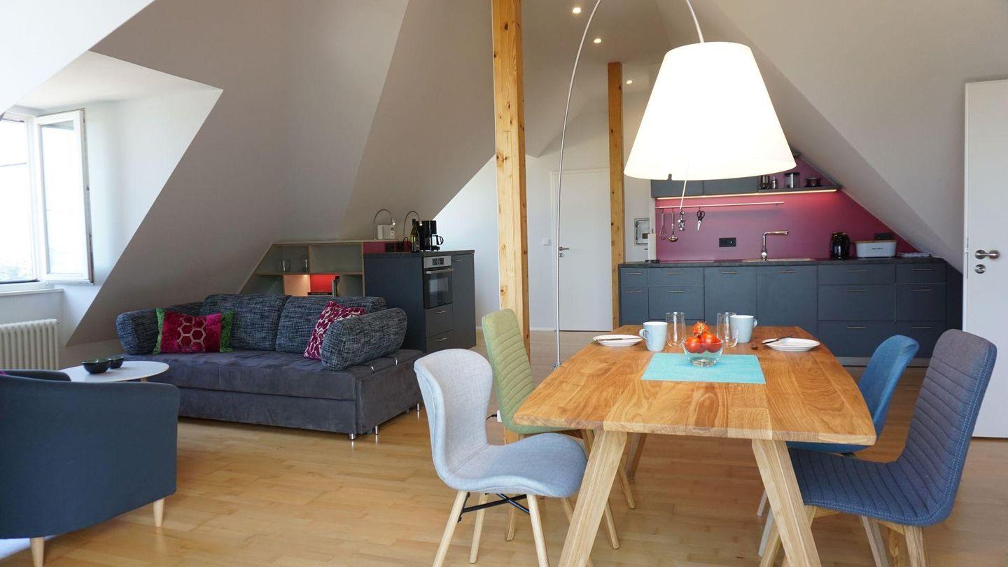 Ihr zauberhaftes Urlaubsdomizil liegt in der dritten Etage unter dem Dach in einem stilvollen Haus ganz in der Nähe zur Altstadt und zu den Einkaufsmöglichkeiten. Vom Südbalkon haben Sie einen fantastischen Blick über den See und die Alpen. Von hier können Sie die Fähre nach Konstanz und die Schiffe zur Insel Mainau beobachten. Das Apartment ist ganz neu mit geschmackvollen Möbeln und Textilien eingerichtet. Sie erwartet ein modernes Bad mit Dusche und WC. Parkplatz am Haus und Garage für Fahrräder.
