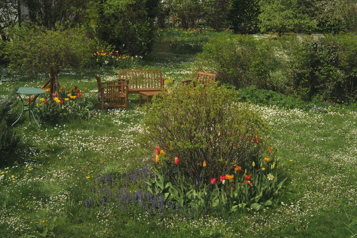 Zur Ferienwohnung gehört ein großzügiges Grundstück mit liebevoll angelegtem Gästegarten, der den Gästen zur Mitnutzung zur Verfügung steht. Mehrere Sitzmöglichkeiten, viel Grün und eine ruhige Umgebung machen den Garten zu einem besonderen Rückzugsort.