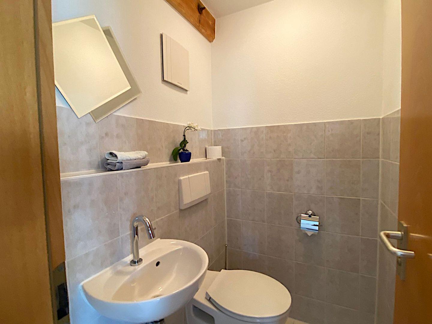 Die voll ausgestattete Einbauküche mit angrenzendem Essbereich eignet sich ideal für die Selbstversorgung im Urlaub. Der Wohnbereich bietet direkten Zugang zum Balkon, der mit Blick ins Grüne und Richtung Bodensee zu entspannten Stunden im Freien einlädt. Ein modernes Badezimmer sowie ein separates Gäste-WC erhöhen den Wohnkomfort zusätzlich.