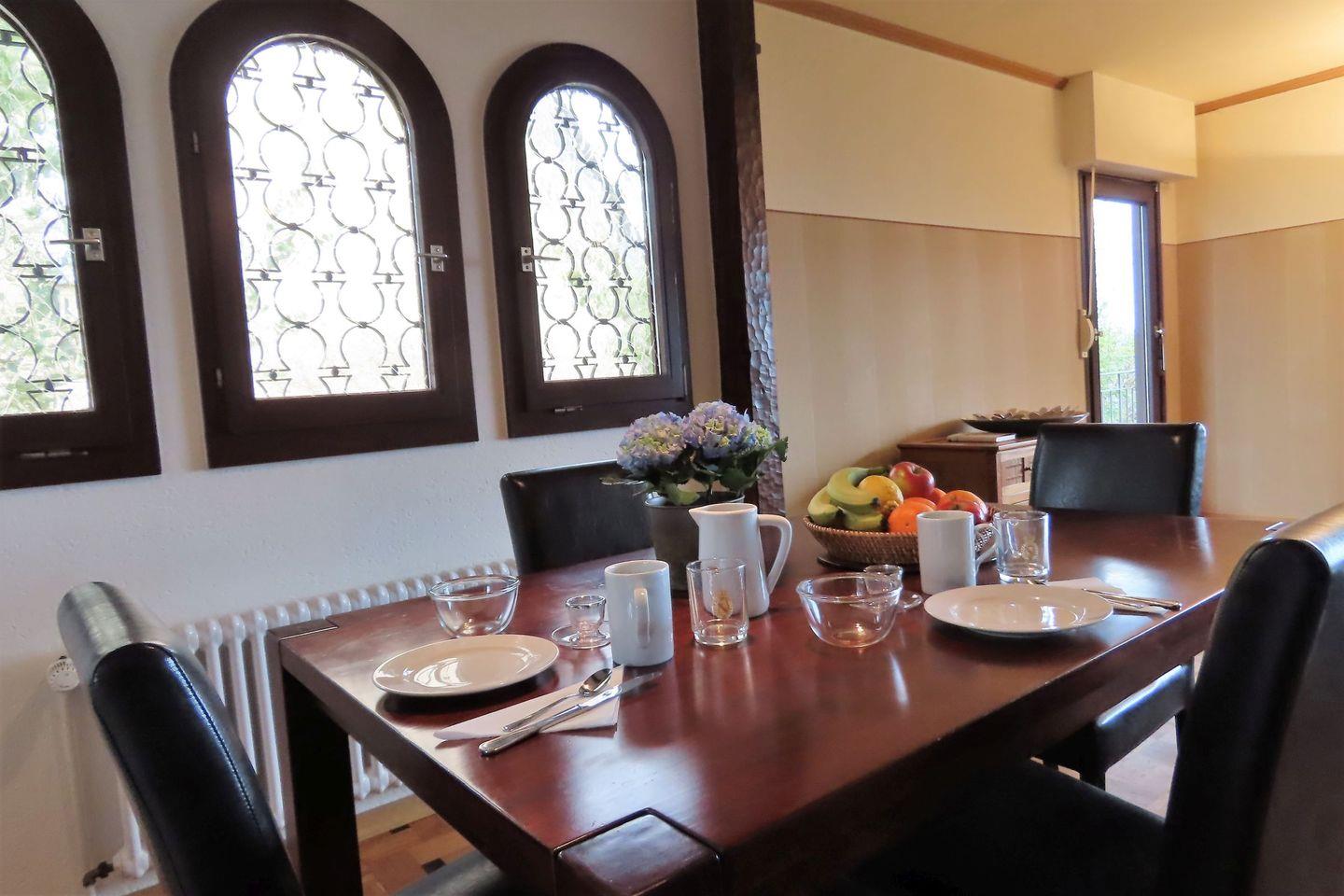 Unmittelbar in der Nähe befindet sich die historische Meersburger Oberstadt mit ihren Sehenswürdigkeiten, besonderen kleinen Geschäften, Restaurants und Weinstuben. Auch zum Bäcker und zum Supermarkt ist es nicht weit. Die Haltestelle des Gästebusses, der zum See und Hafen fährt, ist 5 Gehminuten entfernt. Der Droste-Hülshoff-Weg mündet in einen Wanderweg oberhalb der Reben und durch den Wald Richtung Unteruhldingen. Ihre Fahrräder und Ihr PKW parken sicher auf dem Grundstück.