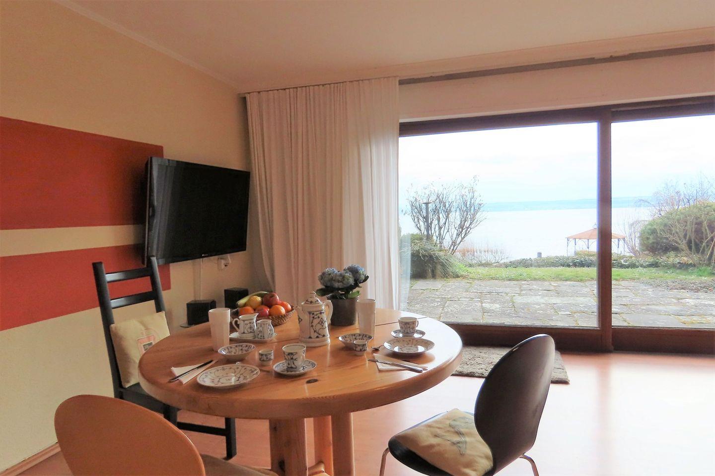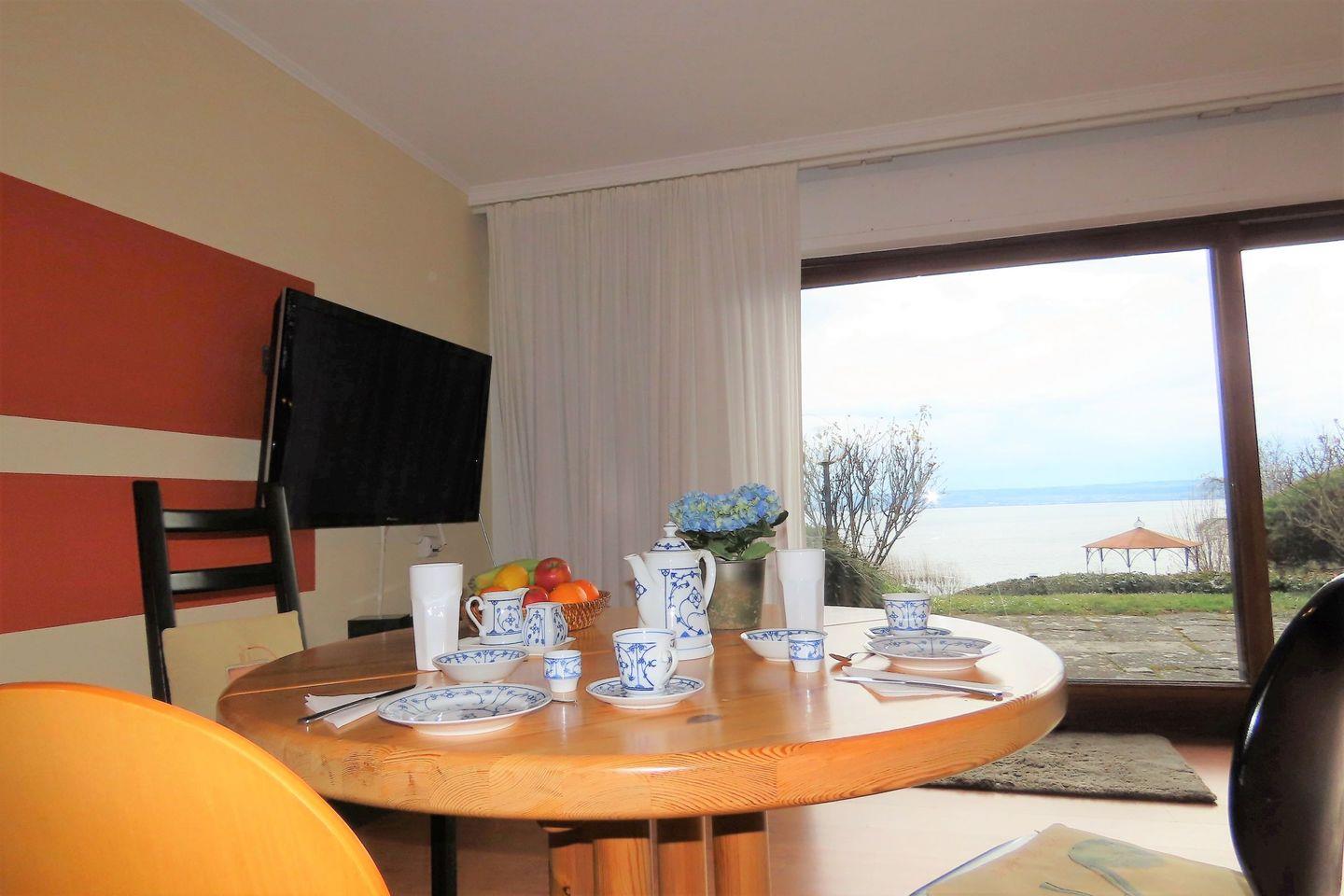 Willkommen in der stilvollen komfortablen Wohnung in bester Wohnlage, mit 3 Gehminuten zur romantischen Meersburger Altstadt. Mit Liebe zum Detail eingerichtet, lässt die Ausstattung keine Wünsche offen. Von der großzügigen Terrasse haben Sie einen einmaligen Ausblick über den großen Garten hin zum See und der Alpenkette. Der große Wohn-Essbereich ist mit einem Panoramafenster versehen.