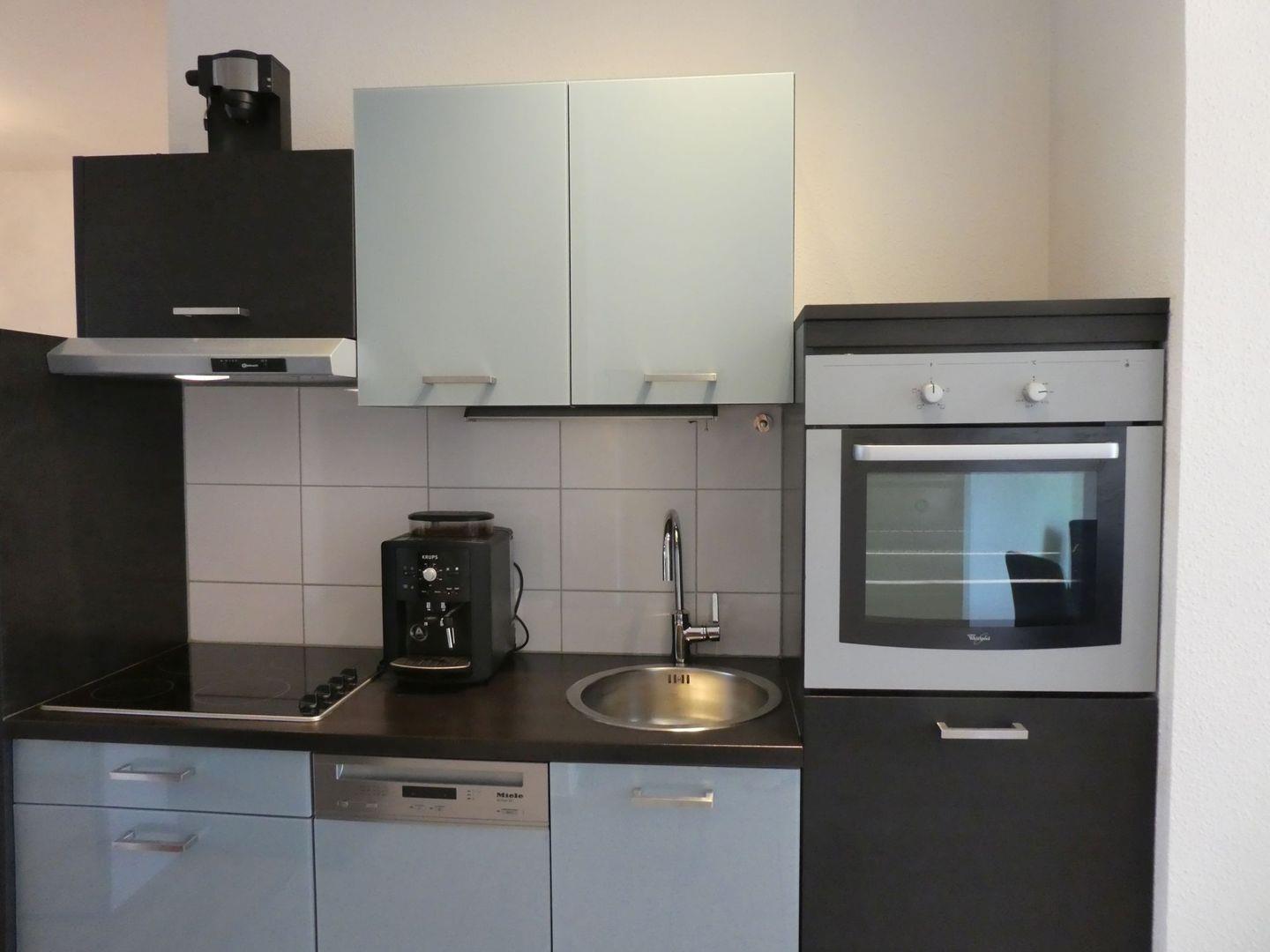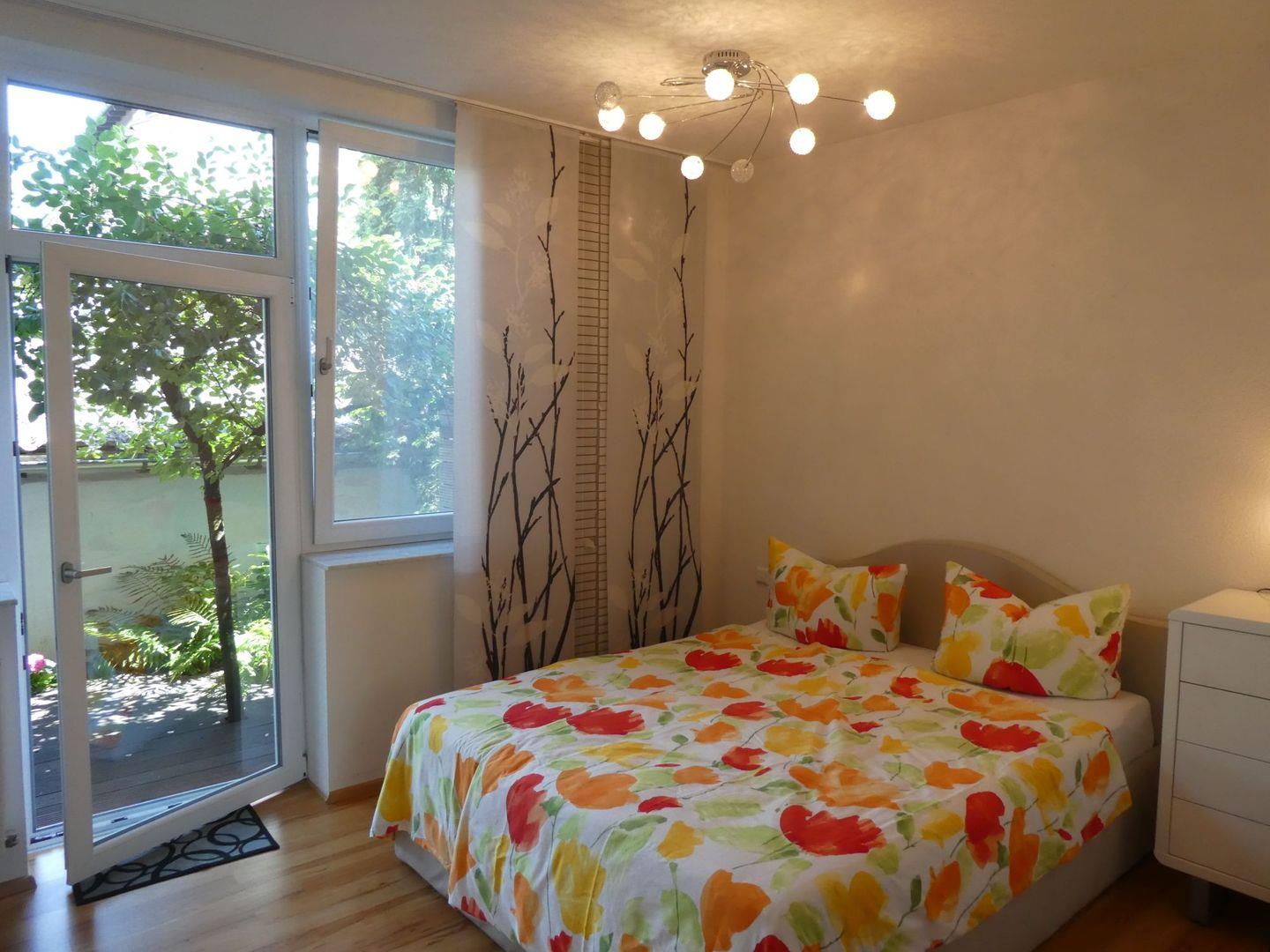 Sie kommen über 3 Stufen durch Ihre separate Eingangstür bequem in die Wohnung und finden neben einem gemütlichen Wohnbereich, eine top ausgestattete Küche mit Spülmaschine, Backofen, Kaffeemaschine und Kühlschrank mit kleiner Gefriermöglichkeit. Designerstühle bieten besonderen Sitzkomfort am Tisch und Ihr modernes Bad mit Dusche, WC und Marmorboden sowie einem komfortablen Waschtrockner. Im Schlafbereich finden Ihre Sachen Platz in einem geräumigen Kleiderschrank.