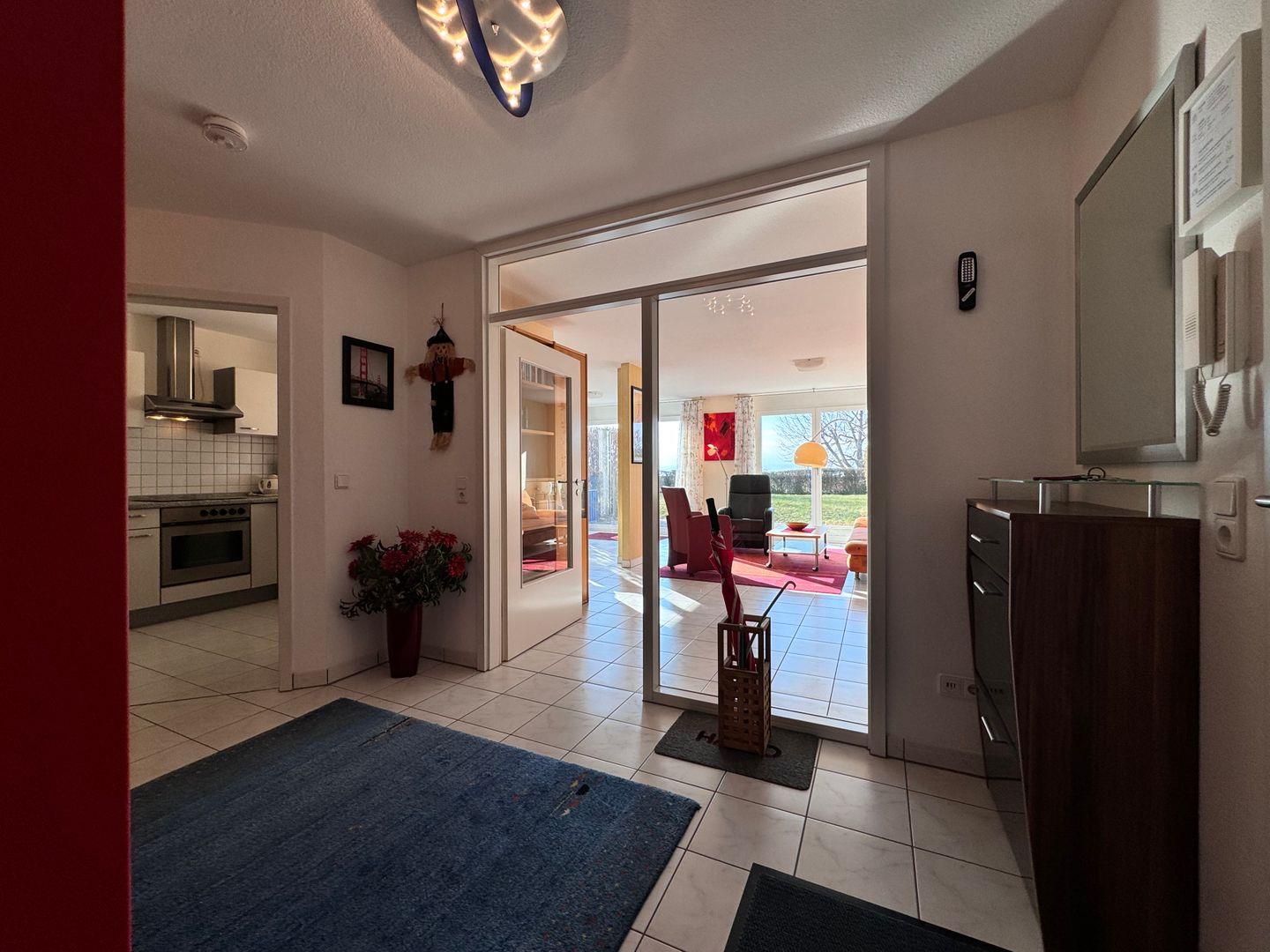 Die Ferienwohnung liegt in unmittelbarer Nähe zur beliebten Meersburg-Therme und ist damit der perfekte Ausgangspunkt für Wellnessliebhaber. Ein eigener Tiefgaragenstellplatz sorgt dafür, dass Ihr Fahrzeug sicher und bequem untergebracht ist.